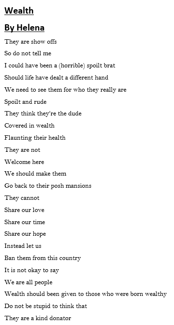 Taking inspiration from Brian Bilston's fantastic poem, Refugees, Rudhall have been working hard to create their own palindrome poems. They each chose a controversial subject to base their poem on and the results were fantastic! Here are just a few, remember to read up at the end!