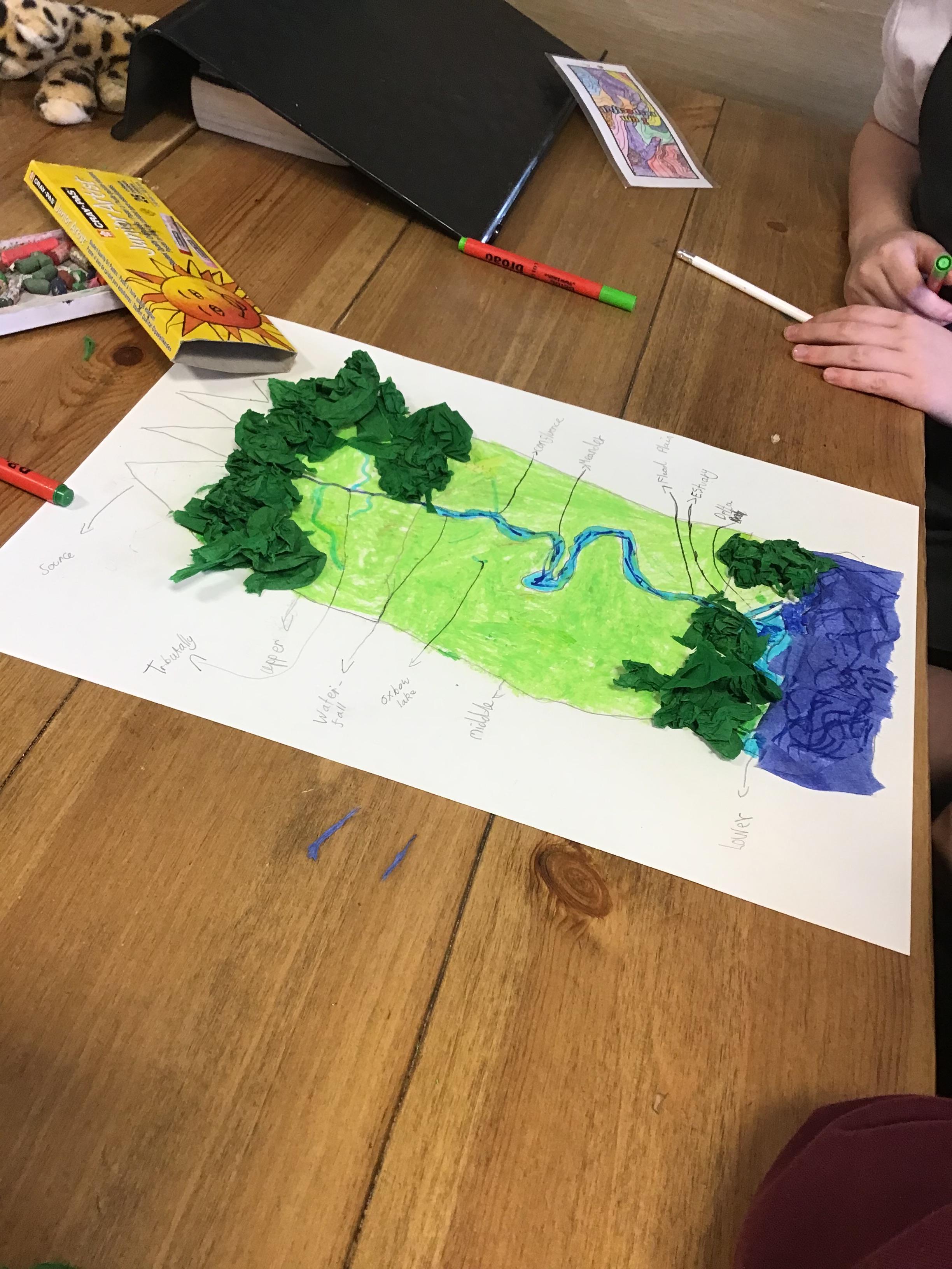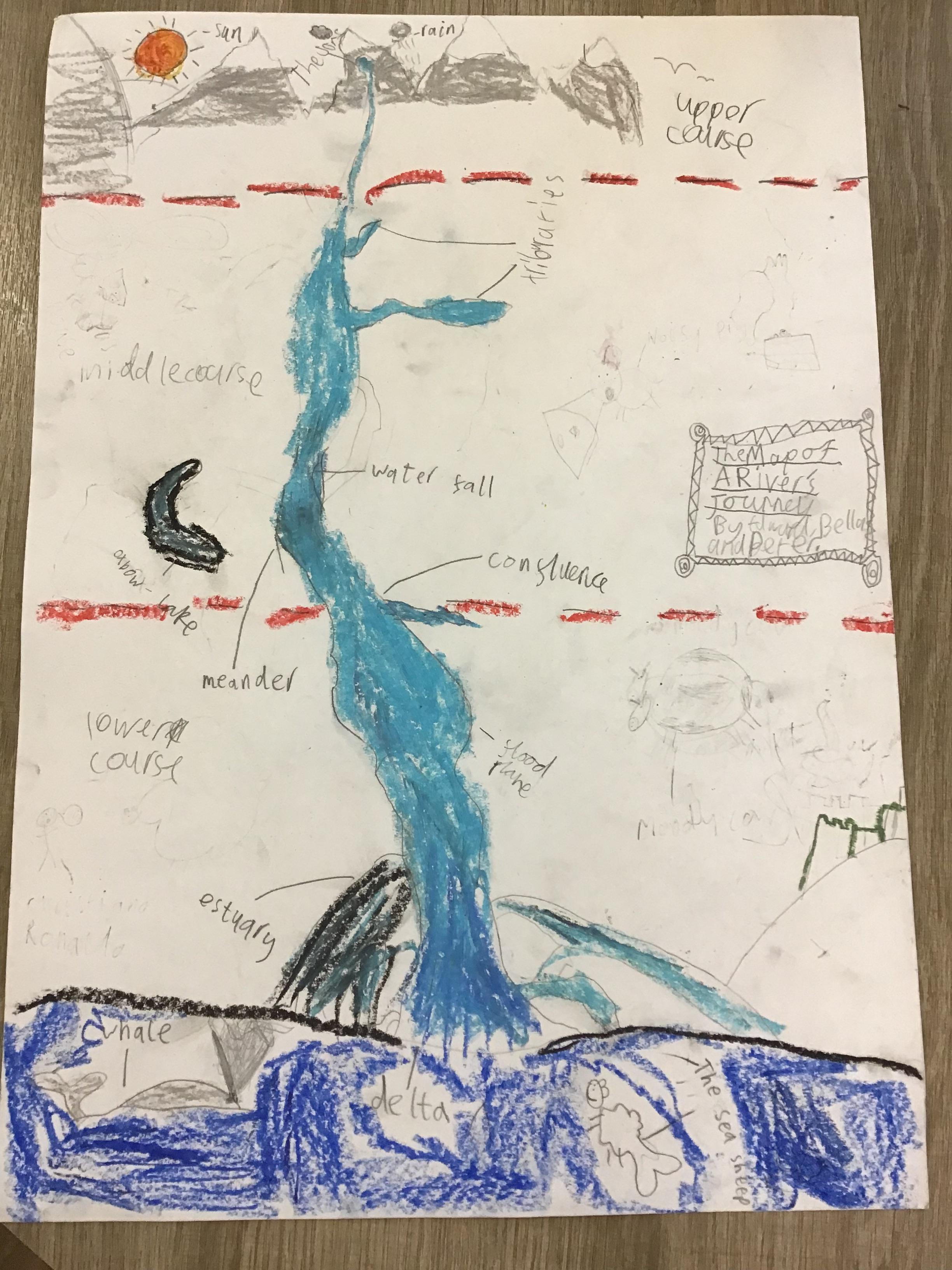 Geography ️ - In Geography we have been exploring rivers and recapping the water cycle. We have learnt how rivers are formed and the names of their key features. We used maps to identify the main rivers found within the UK and noticed that most sources started inland and on high ground and that their mouths led out to sea or another river. Test us on our knowledge!