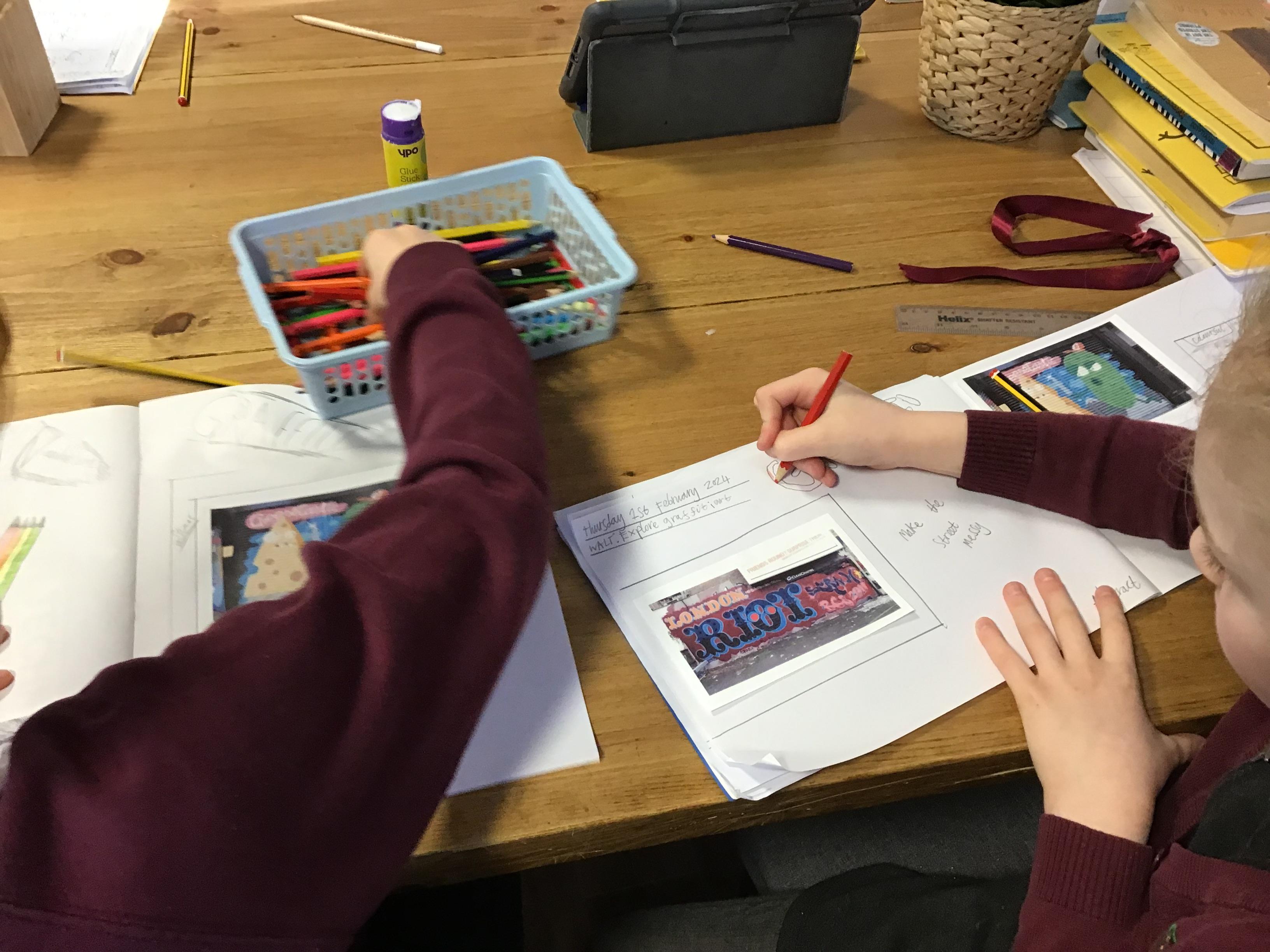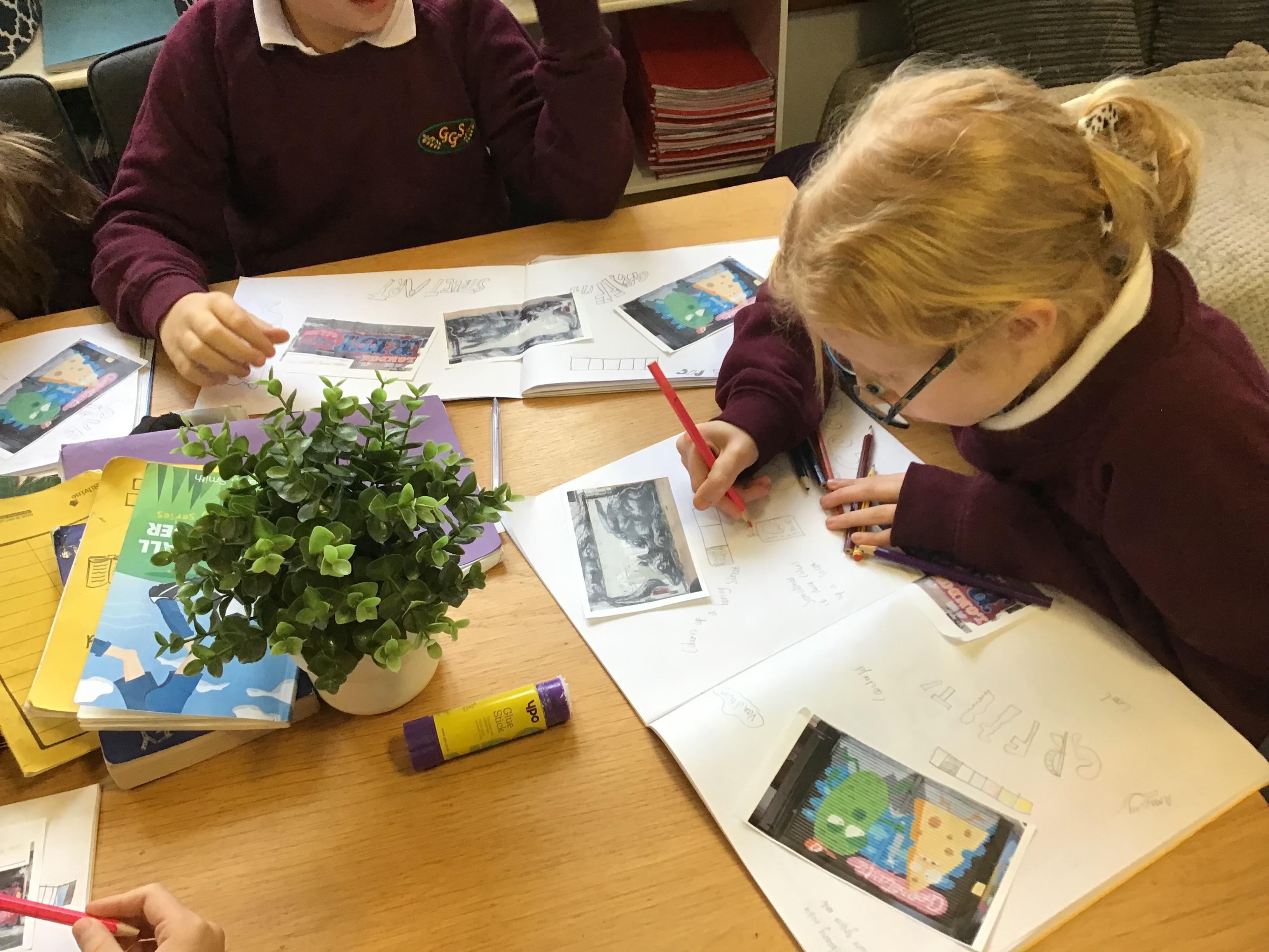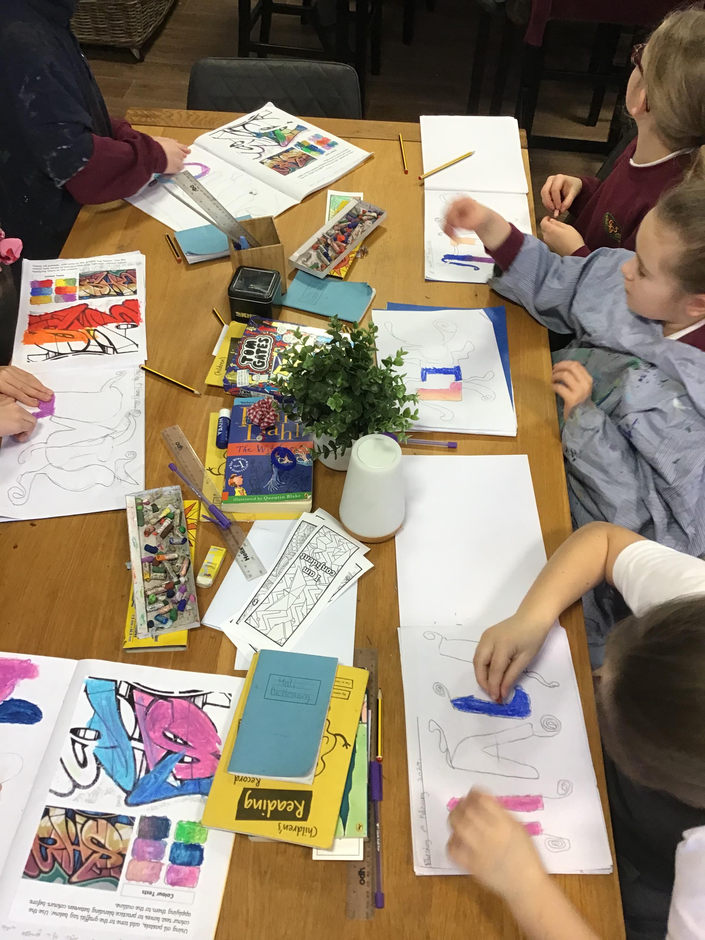 Art - Our Art unit during our Crime and Punishment topic has been exploring Graffiti Art and Street Art. We have looked closely at the works of Banksy and Keith Haring, comparing their artwork and using their techniques in our own pieces.
