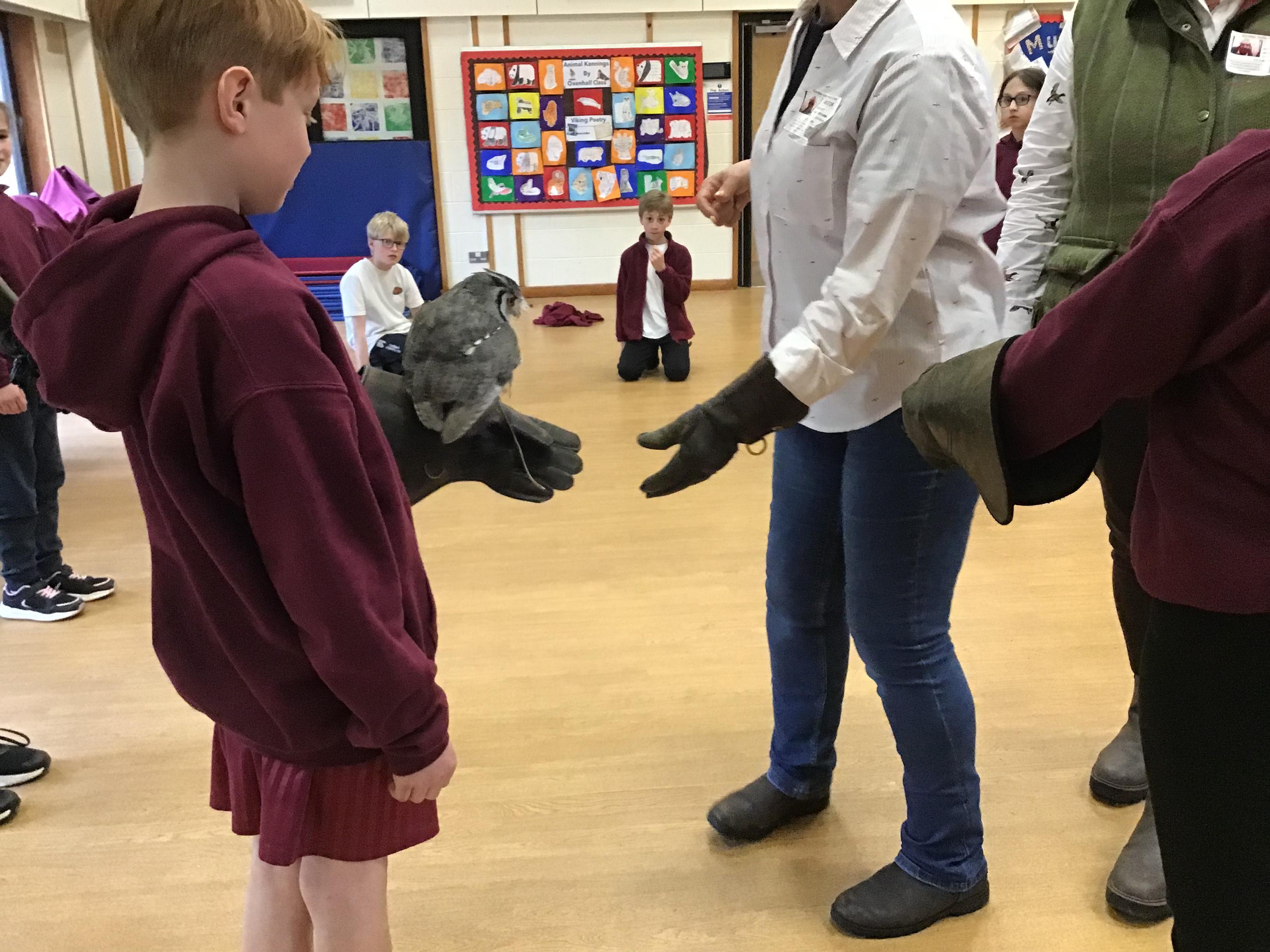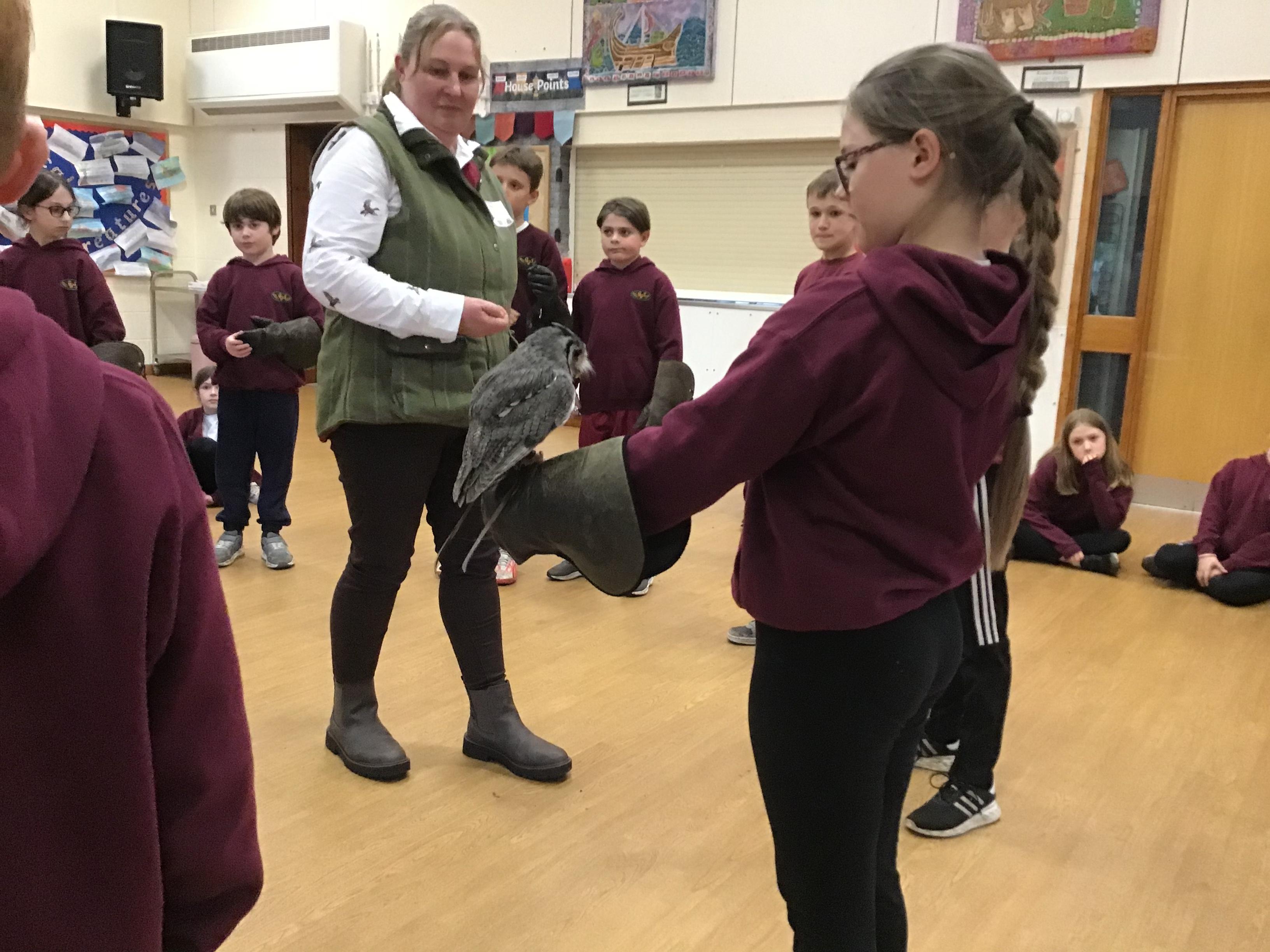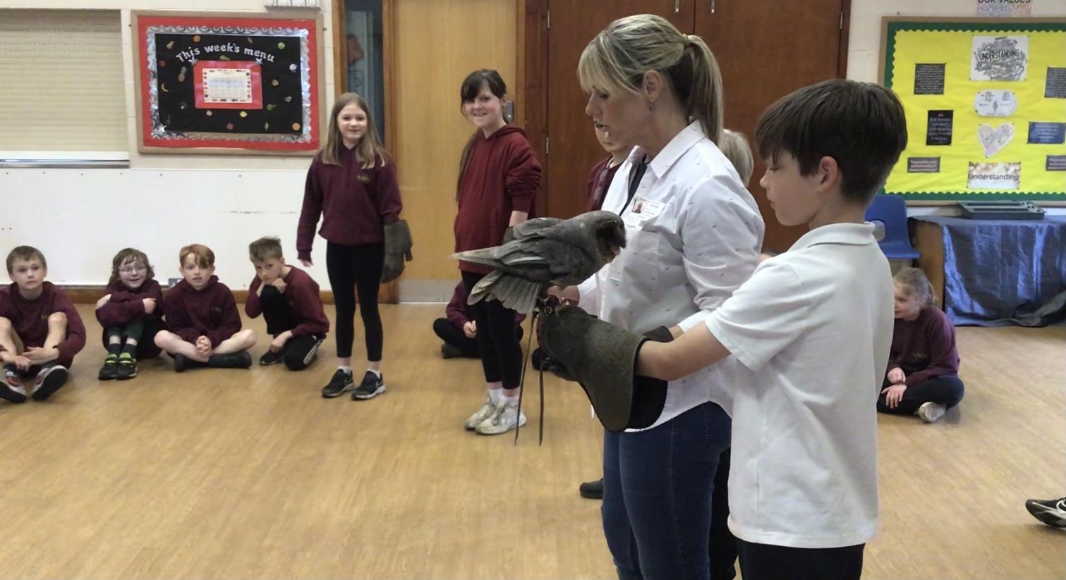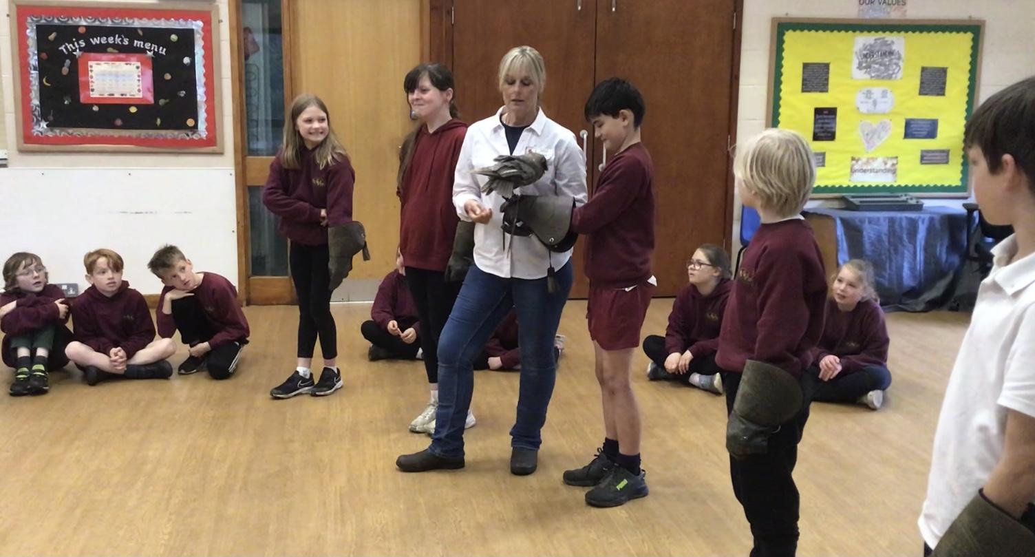 Walks with Hawks - Rudhall had the most fantastic afternoon thanks to the very generous Mr Davy who kindly organised for the whole of Gorsley Goffs to experience some fascinating birds of prey up close. The children were enthralled listening to the two experts talk about the birds, their natural habitats, diet and flying techniques.