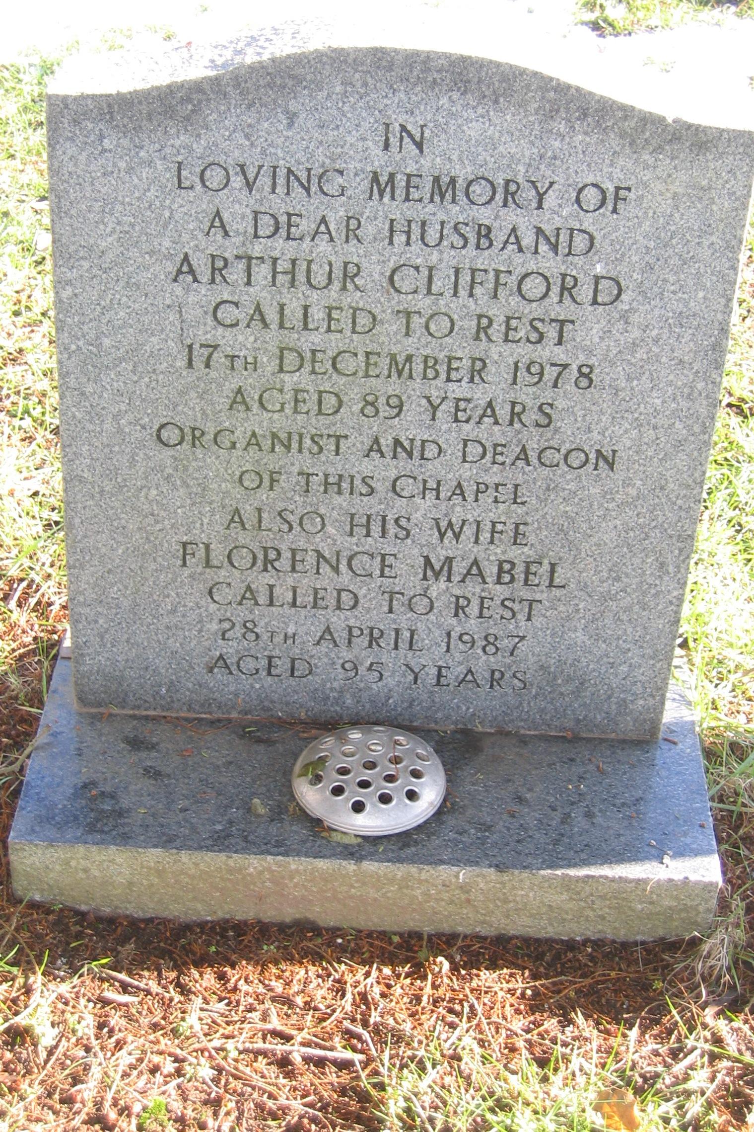 For fifty years Mr Clifford played the organ at the chapel (a harmonium), hardly ever being absent and he was a deacon of the chapel for many years. Mr and Mrs Clifford were very friendly and loved to spend time talking with adults and children. Mr Clifford had a great sense of humour. They adopted Mrs Clifford's niece, Ivy Clifford when she was about five as they had no children and Ivy was the ninth child in her family.
