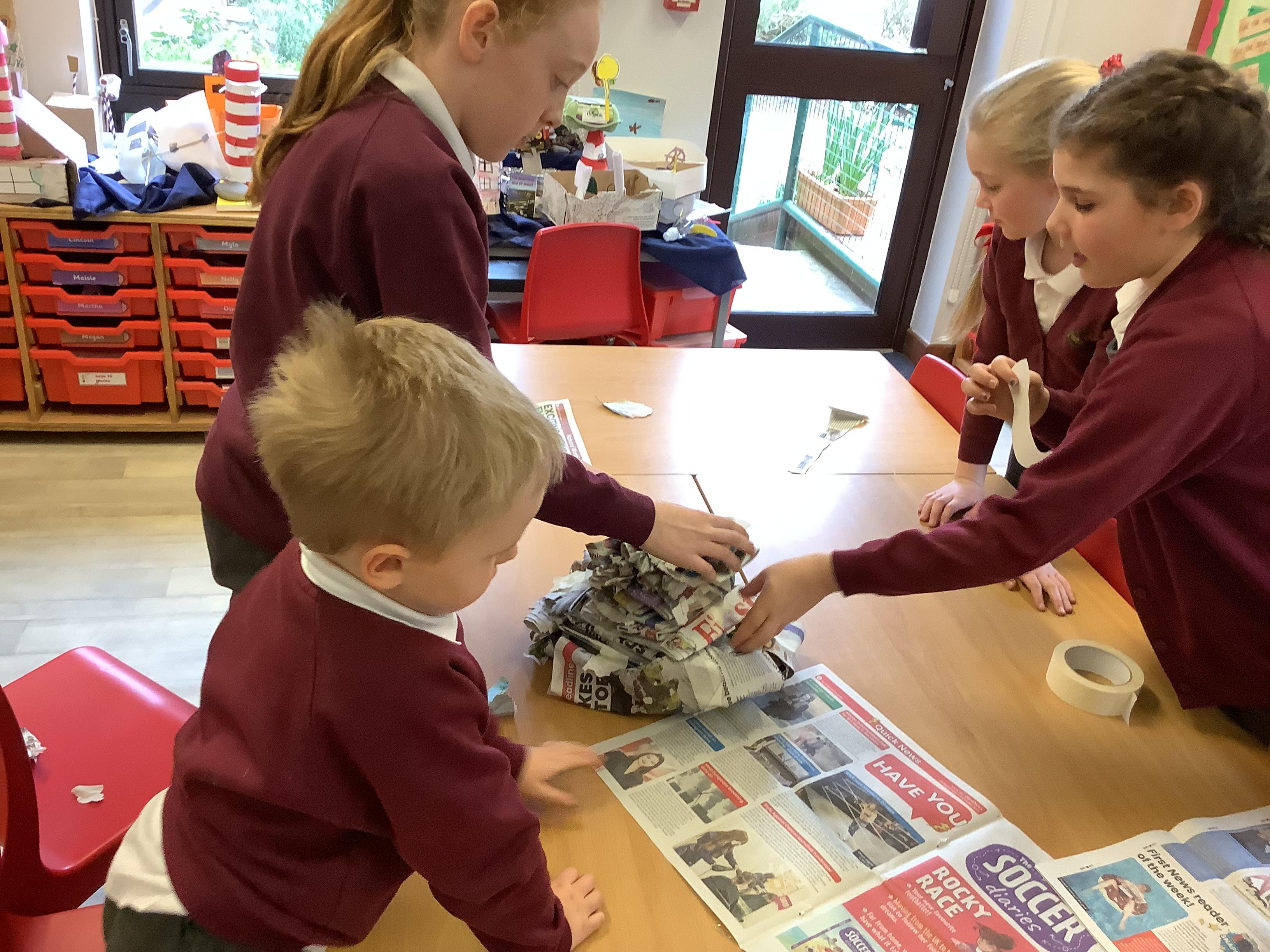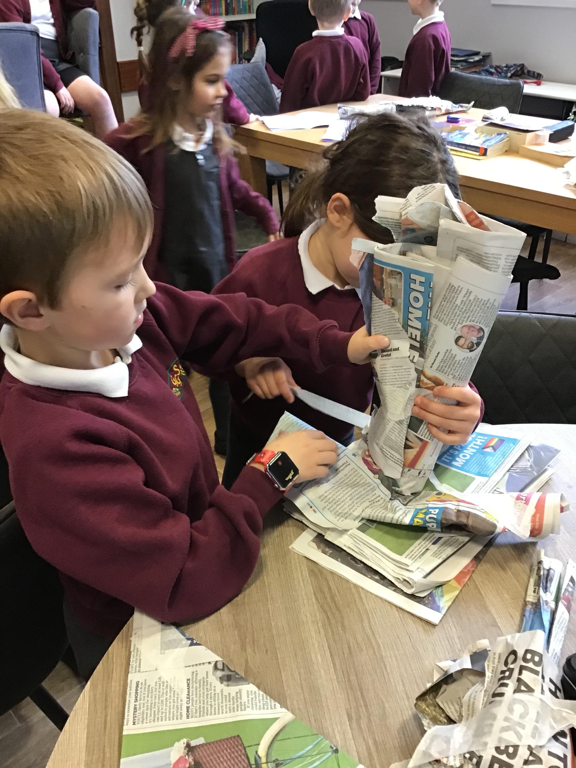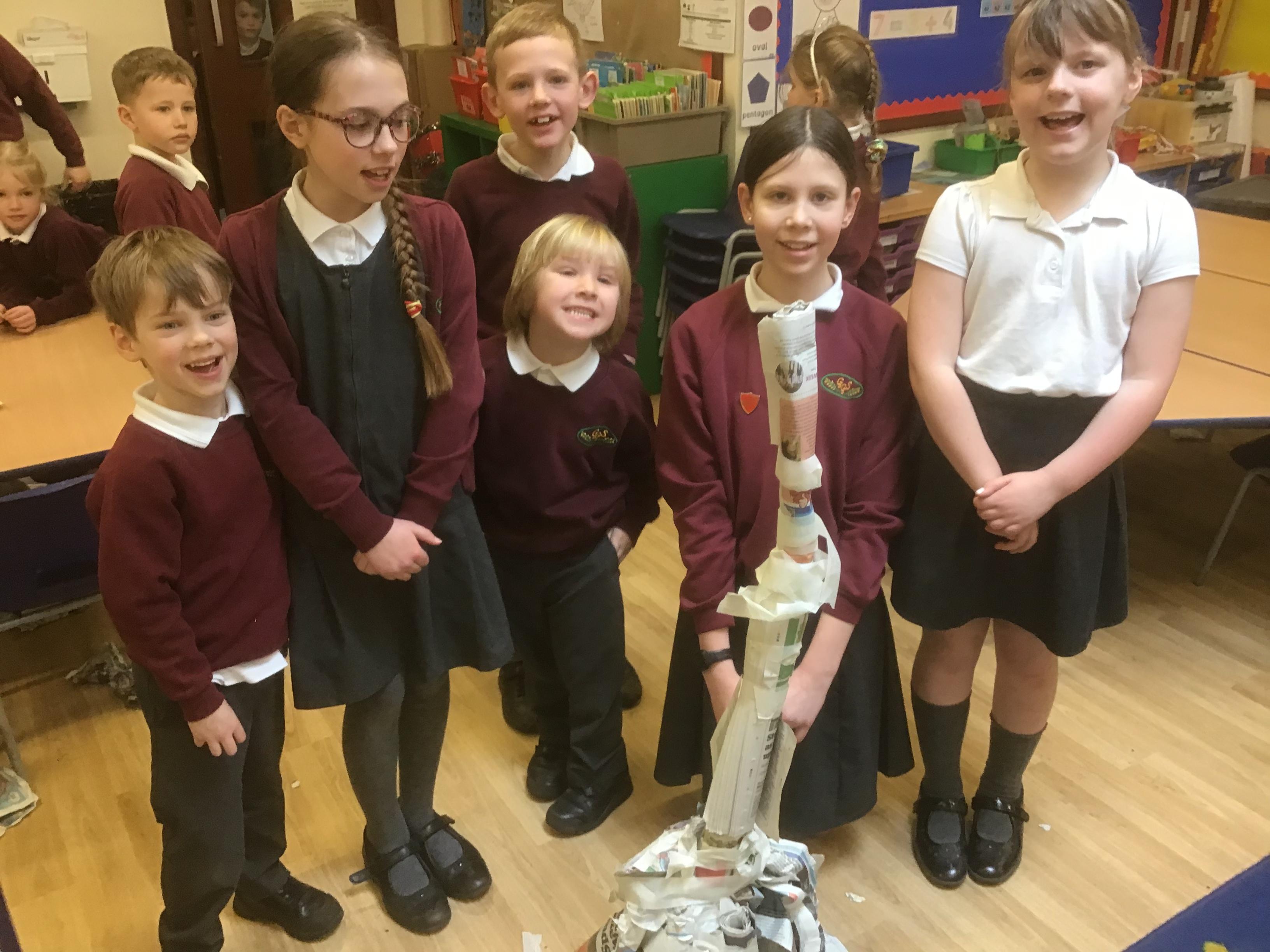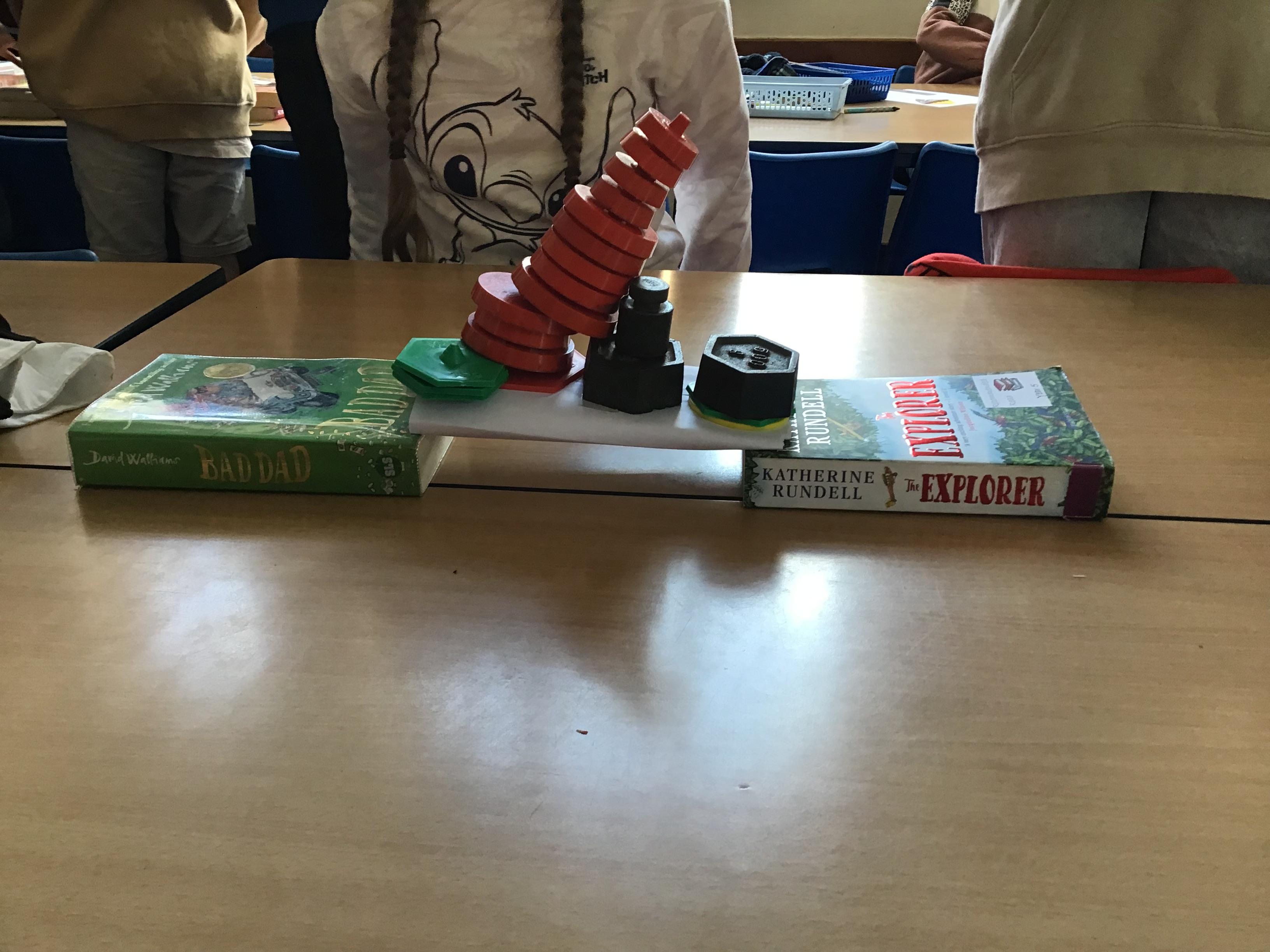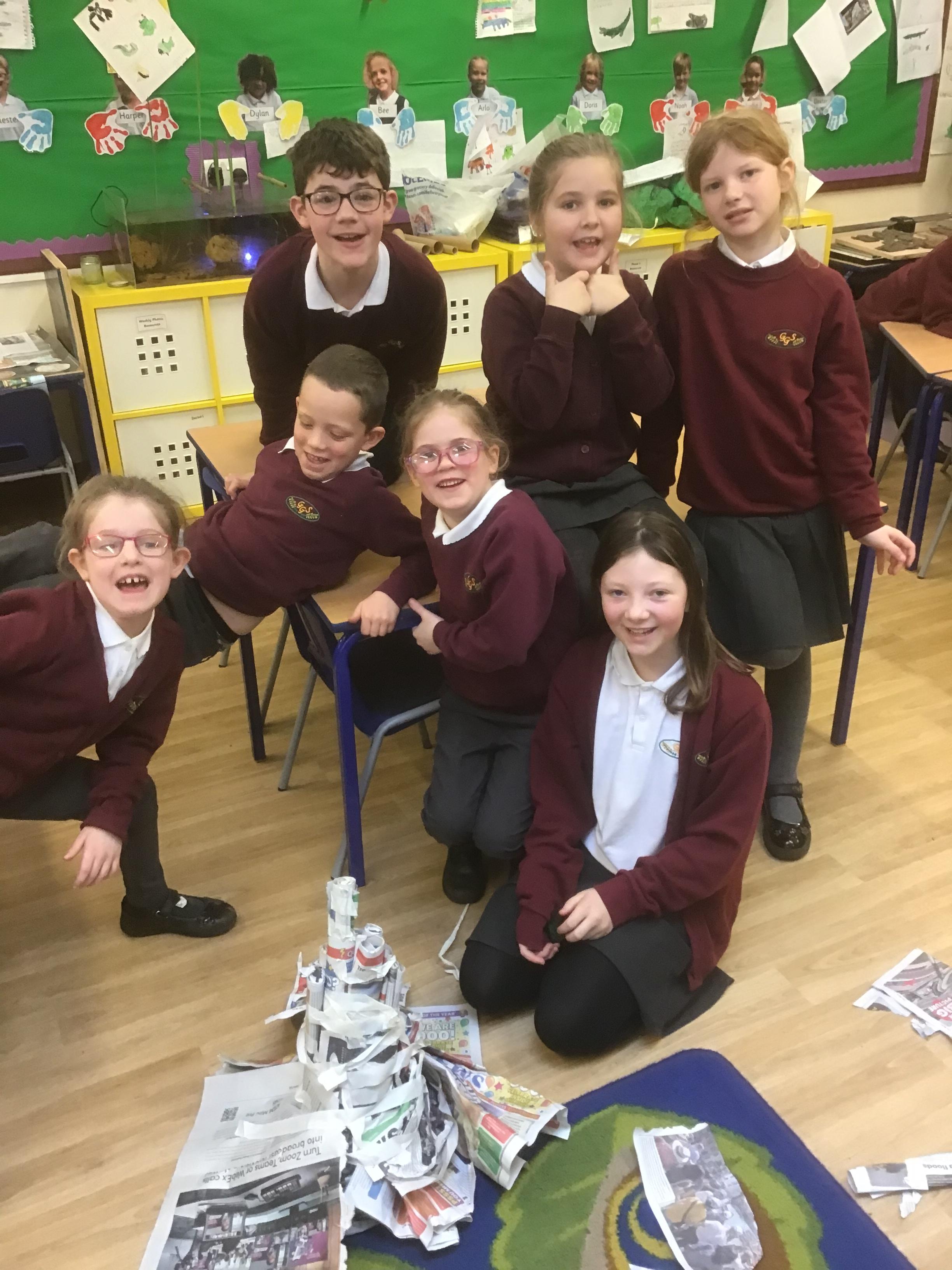 We built towers out of newspaper, as tall as possible, that could hold a 500g weight for 30 sec