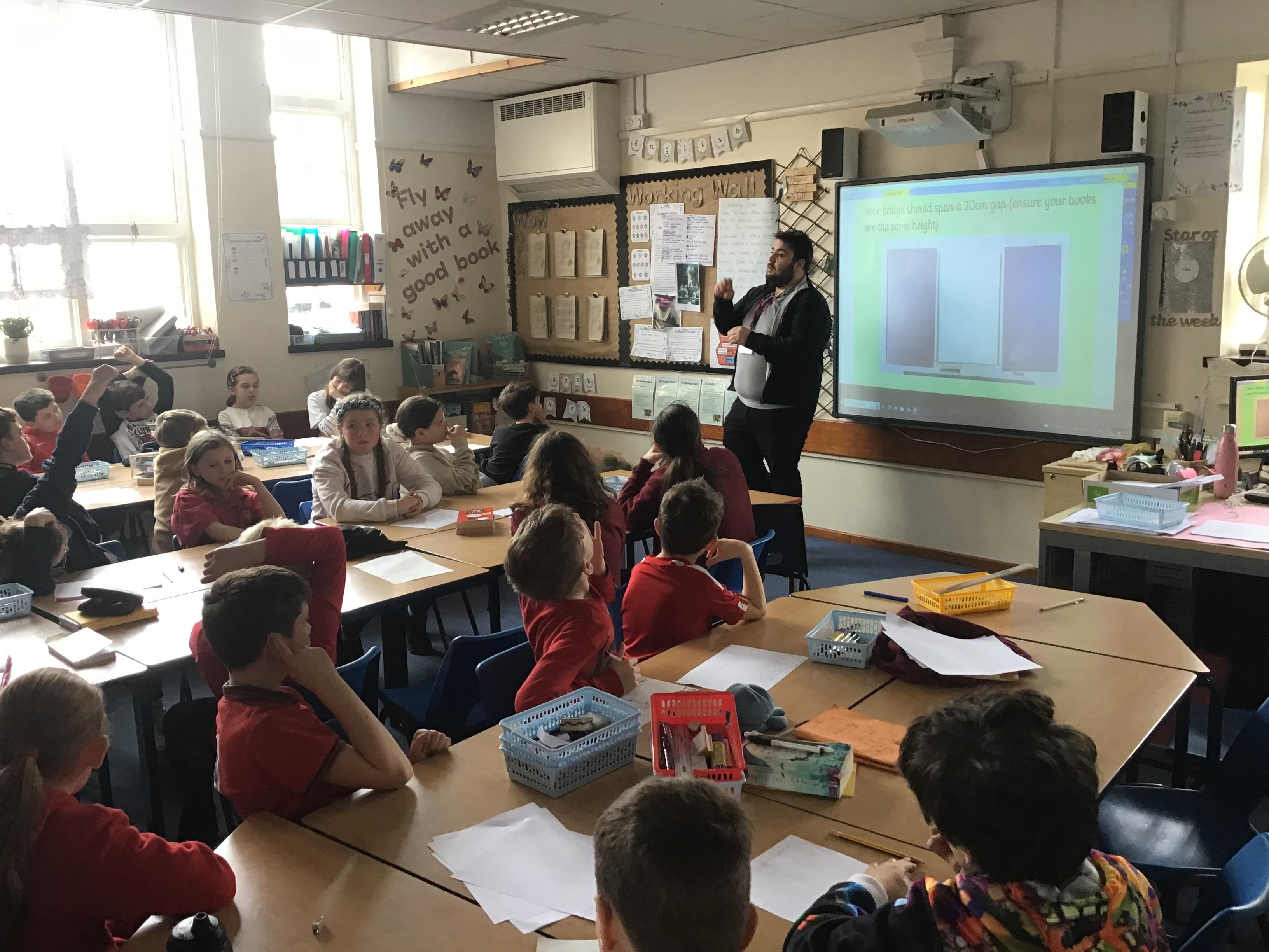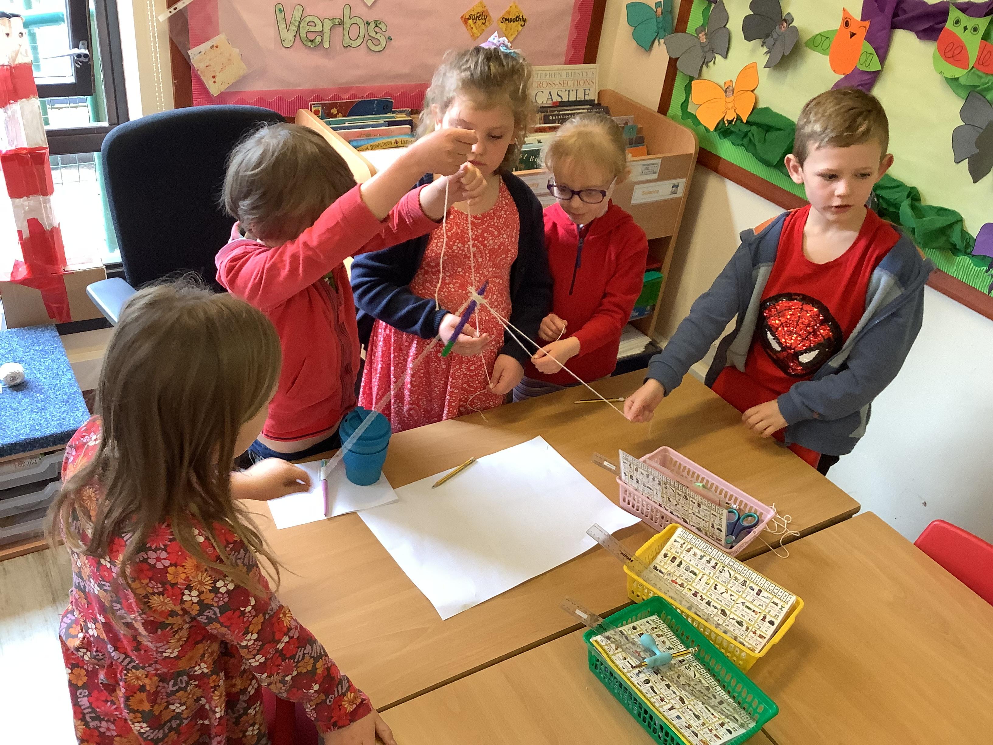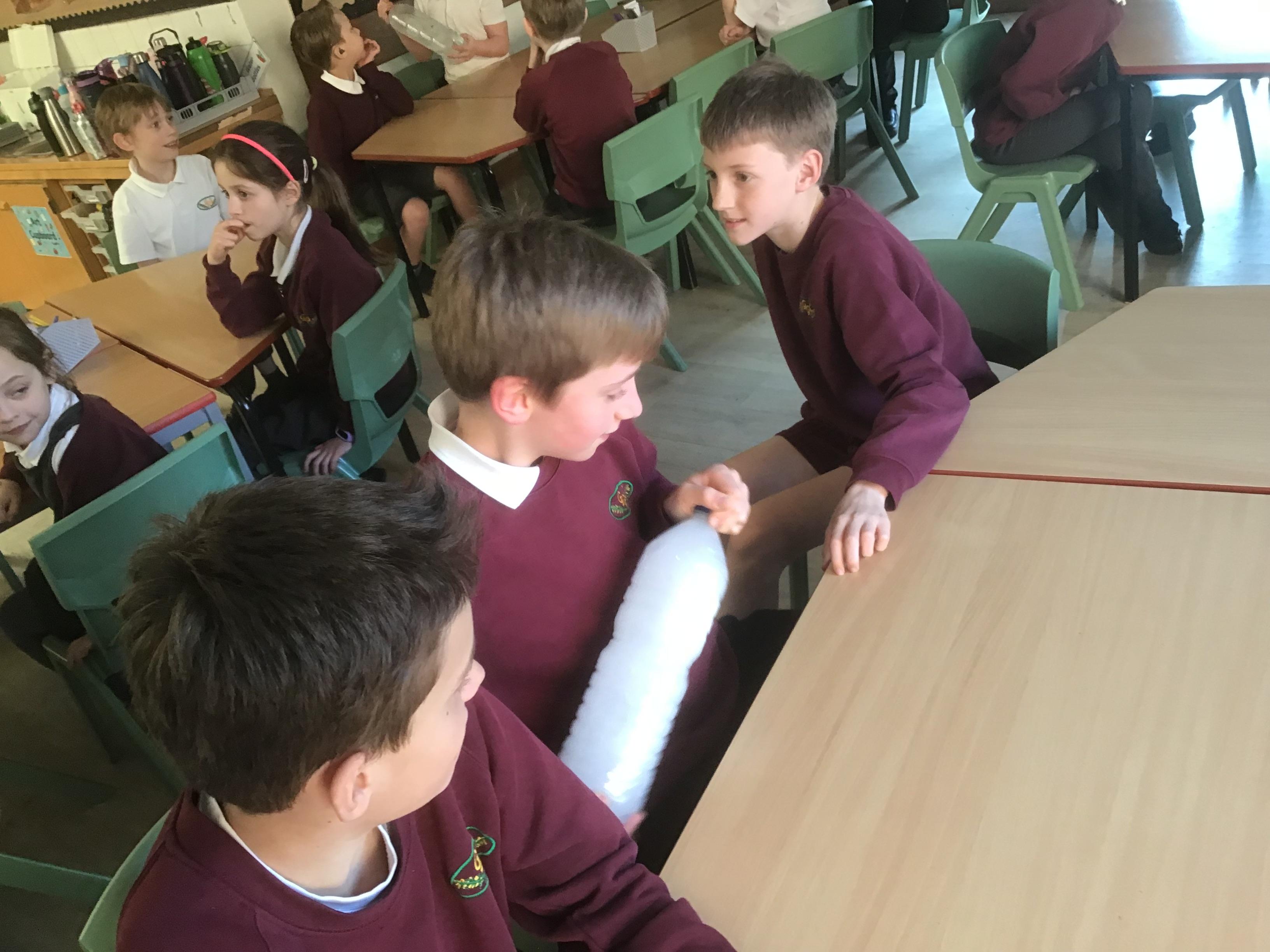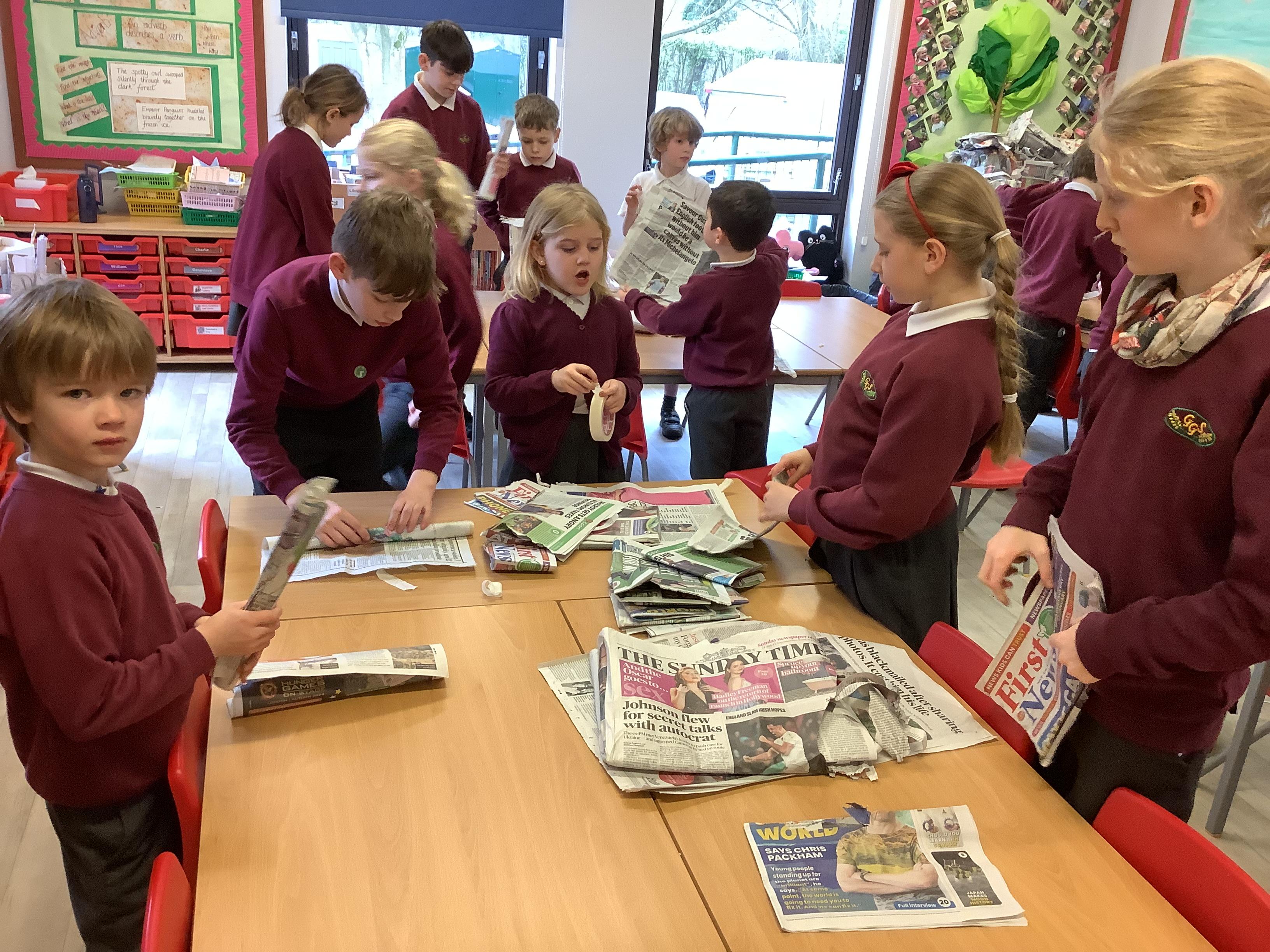 We built towers out of newspaper, as tall as possible, that could hold a 500g weight for 30 sec