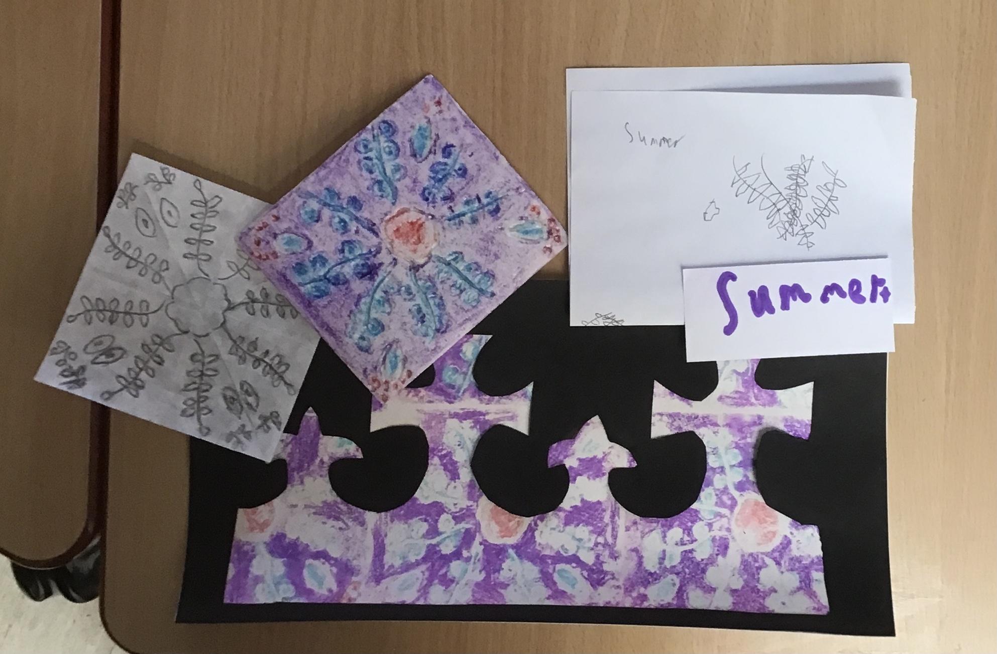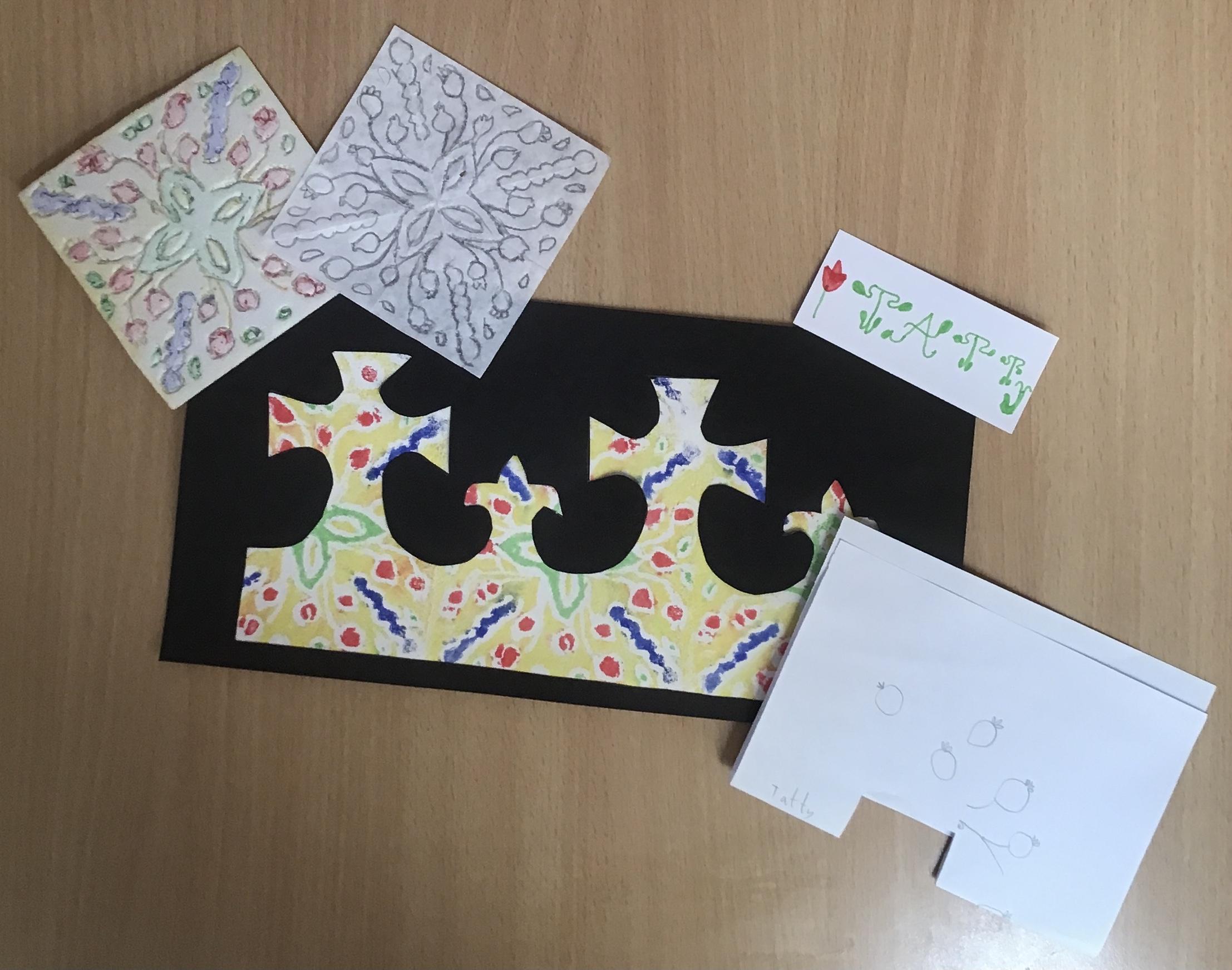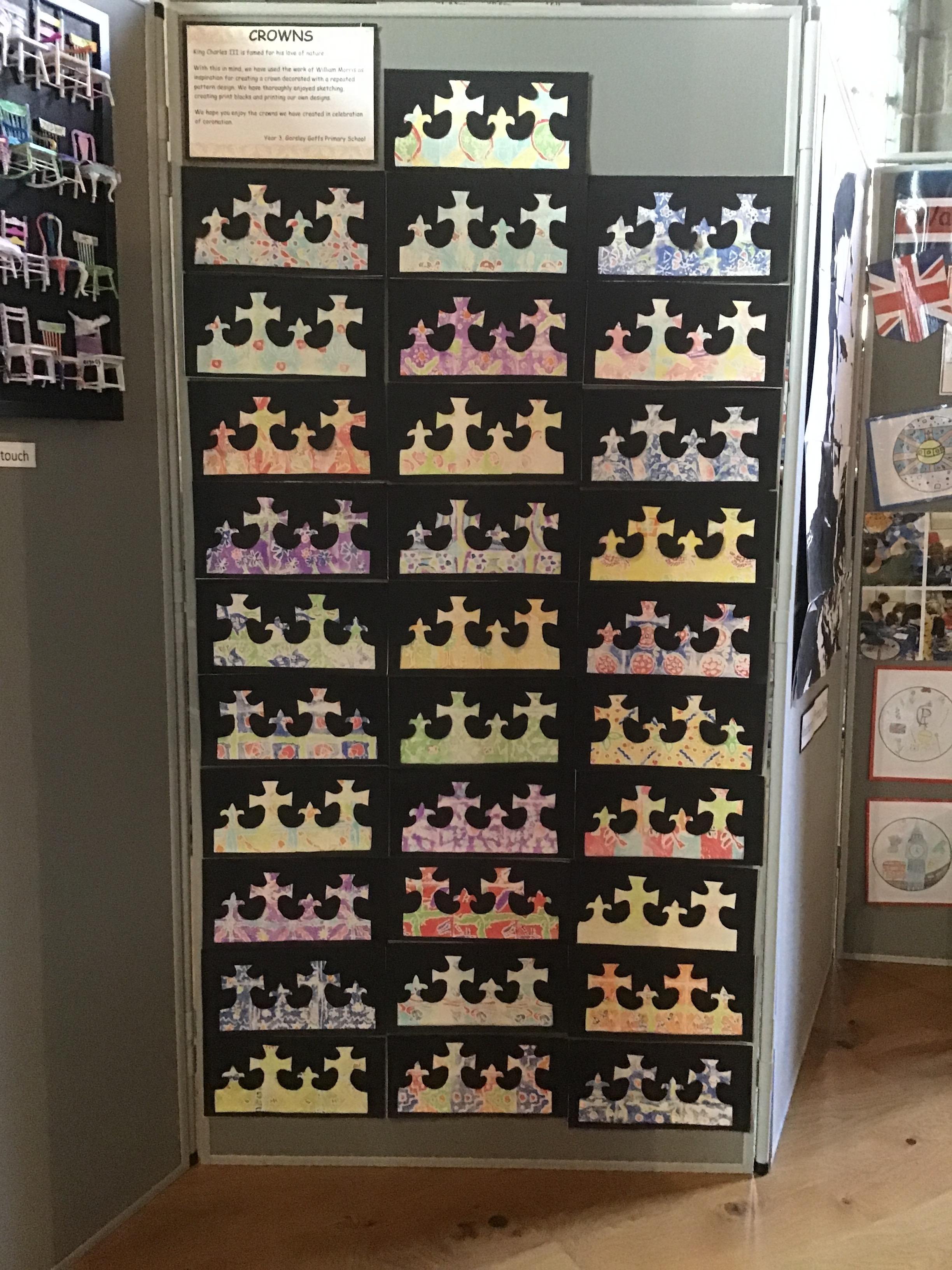 With this in mind, we have used the work of William Morris as inspiration for creating a crown decorated with a repeated pattern design. We have thoroughly enjoyed sketching, creating print blocks and printing our own designs.