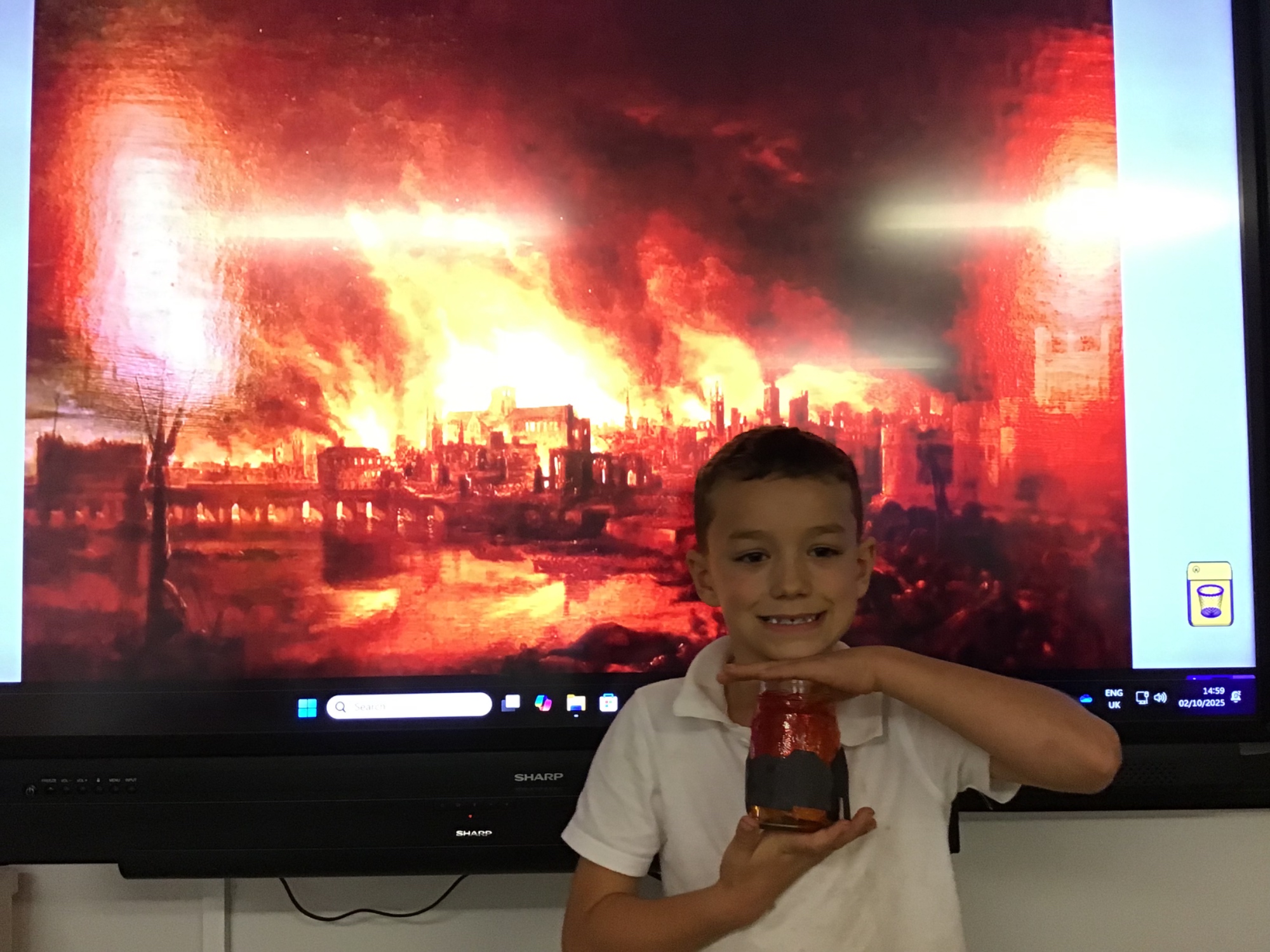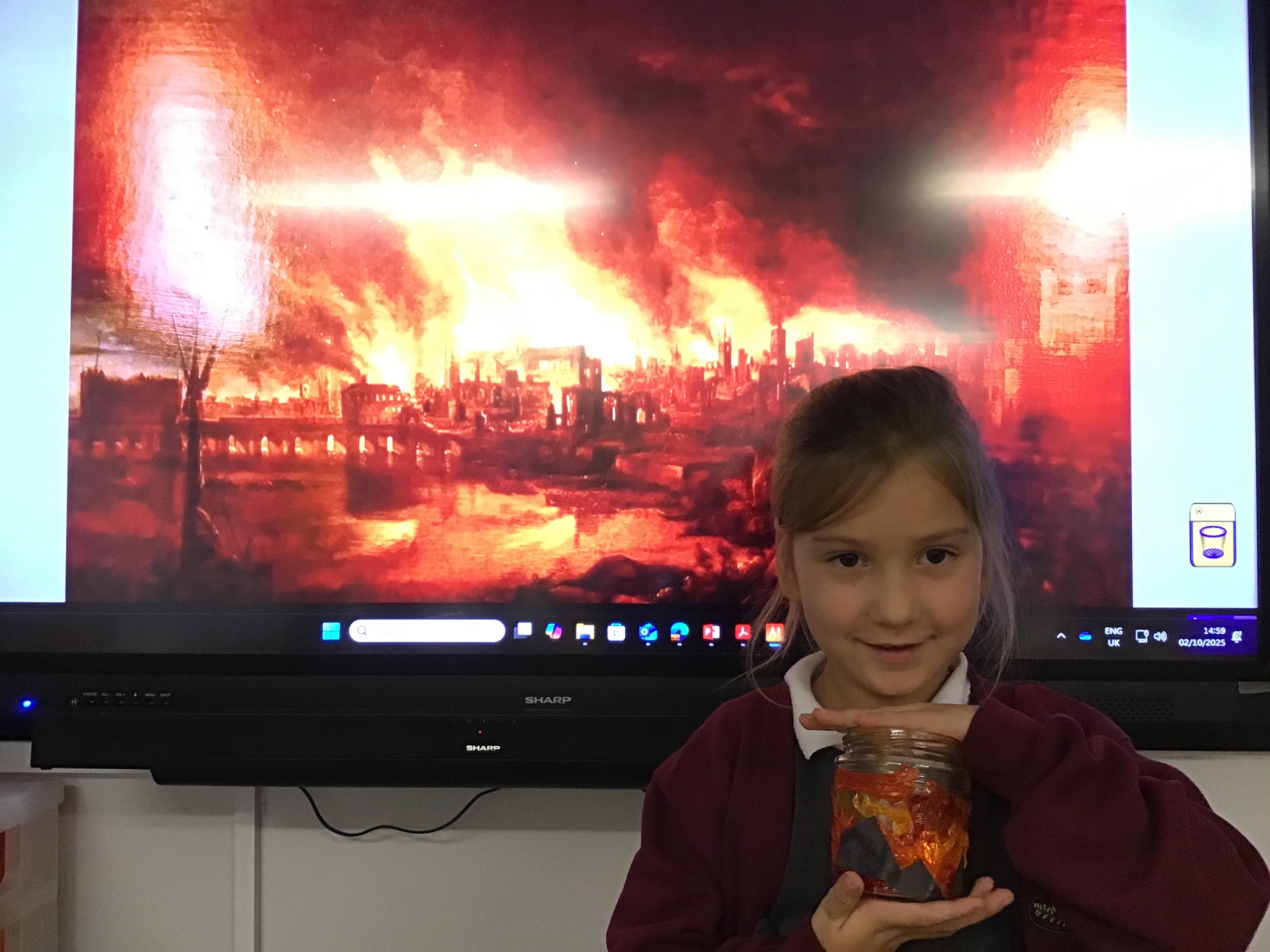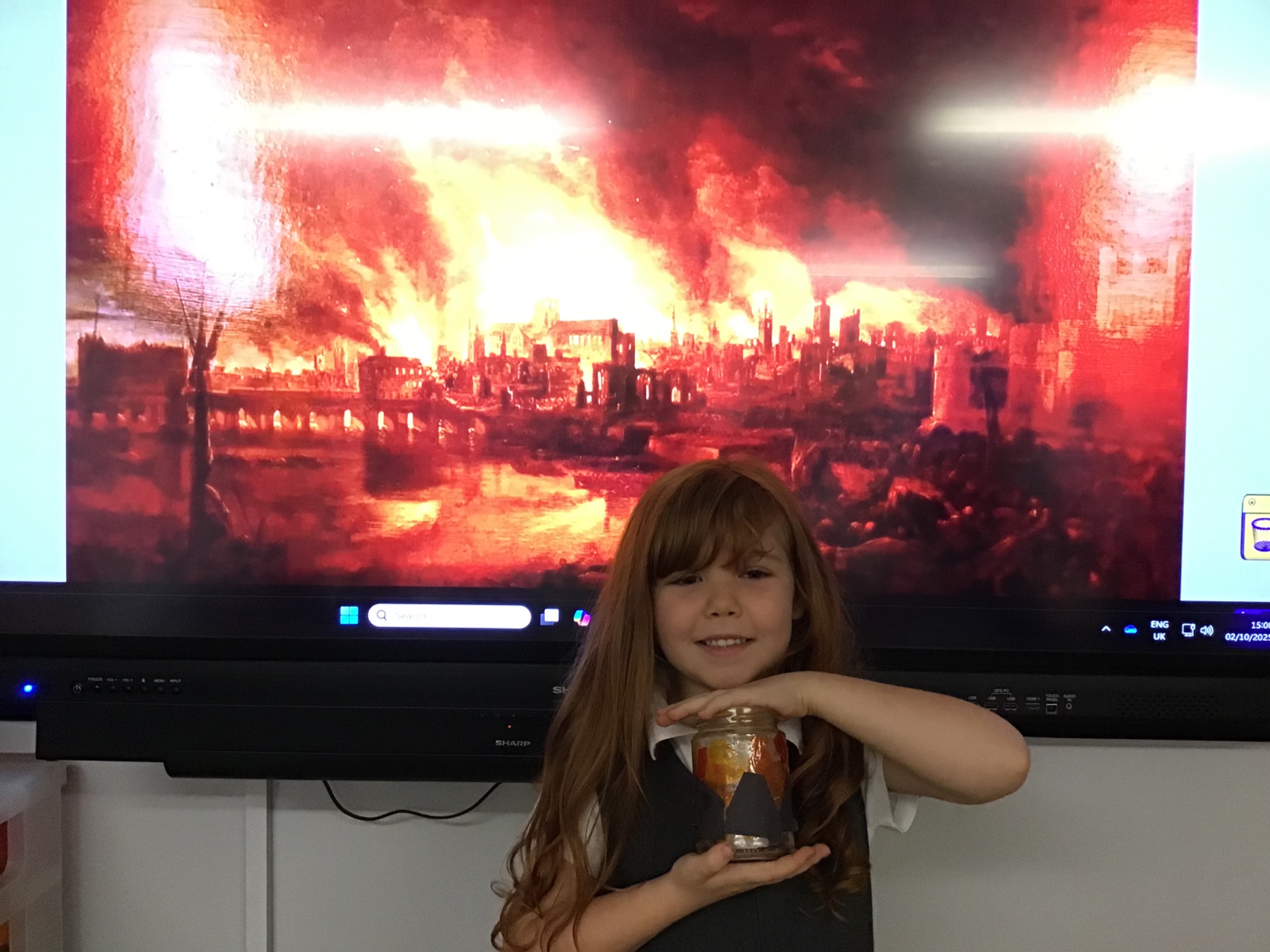 The children created the Great Fire of London in a jar.  They worked very carefully and remembered the different scientific properties of the materials they used.