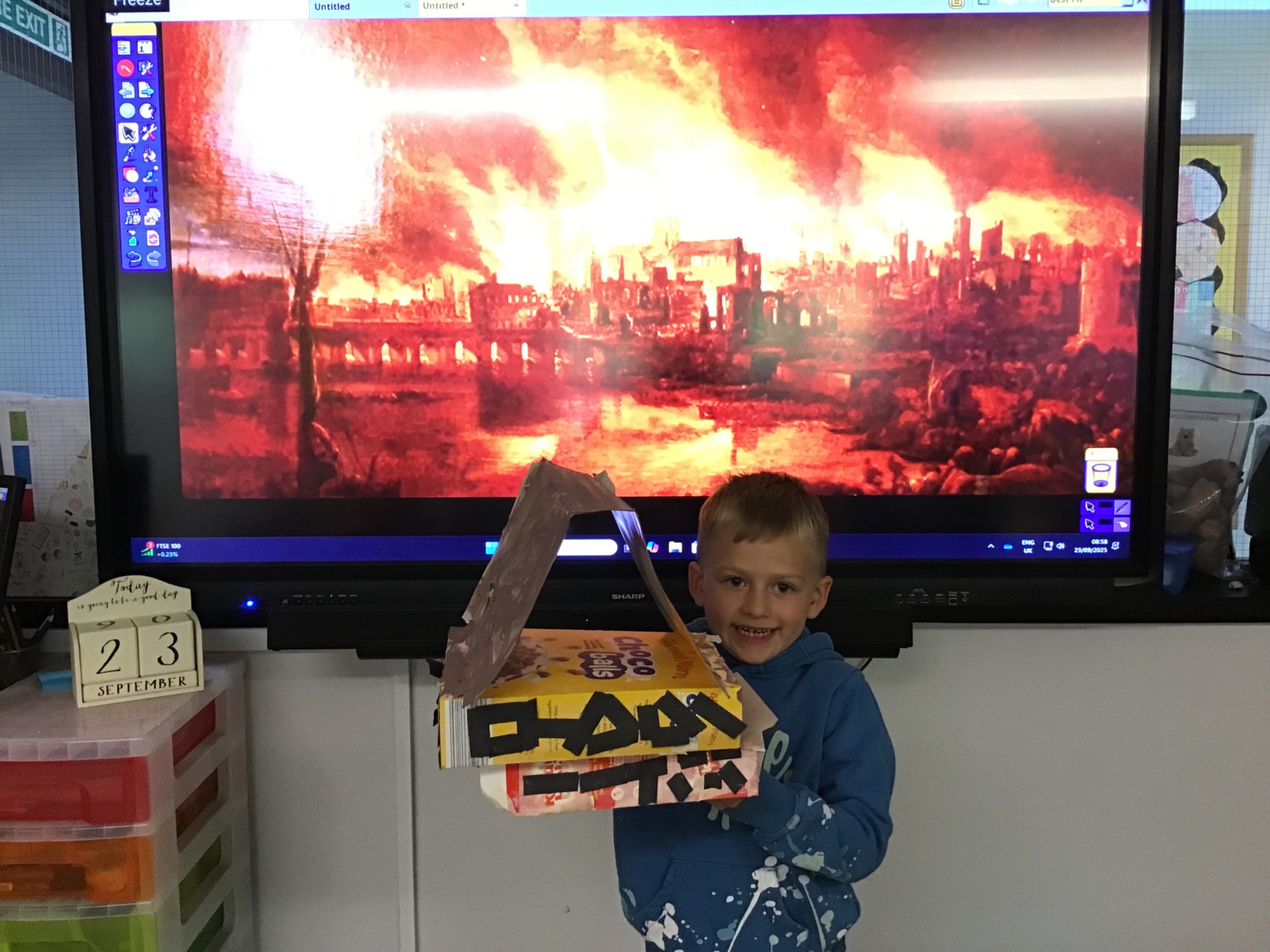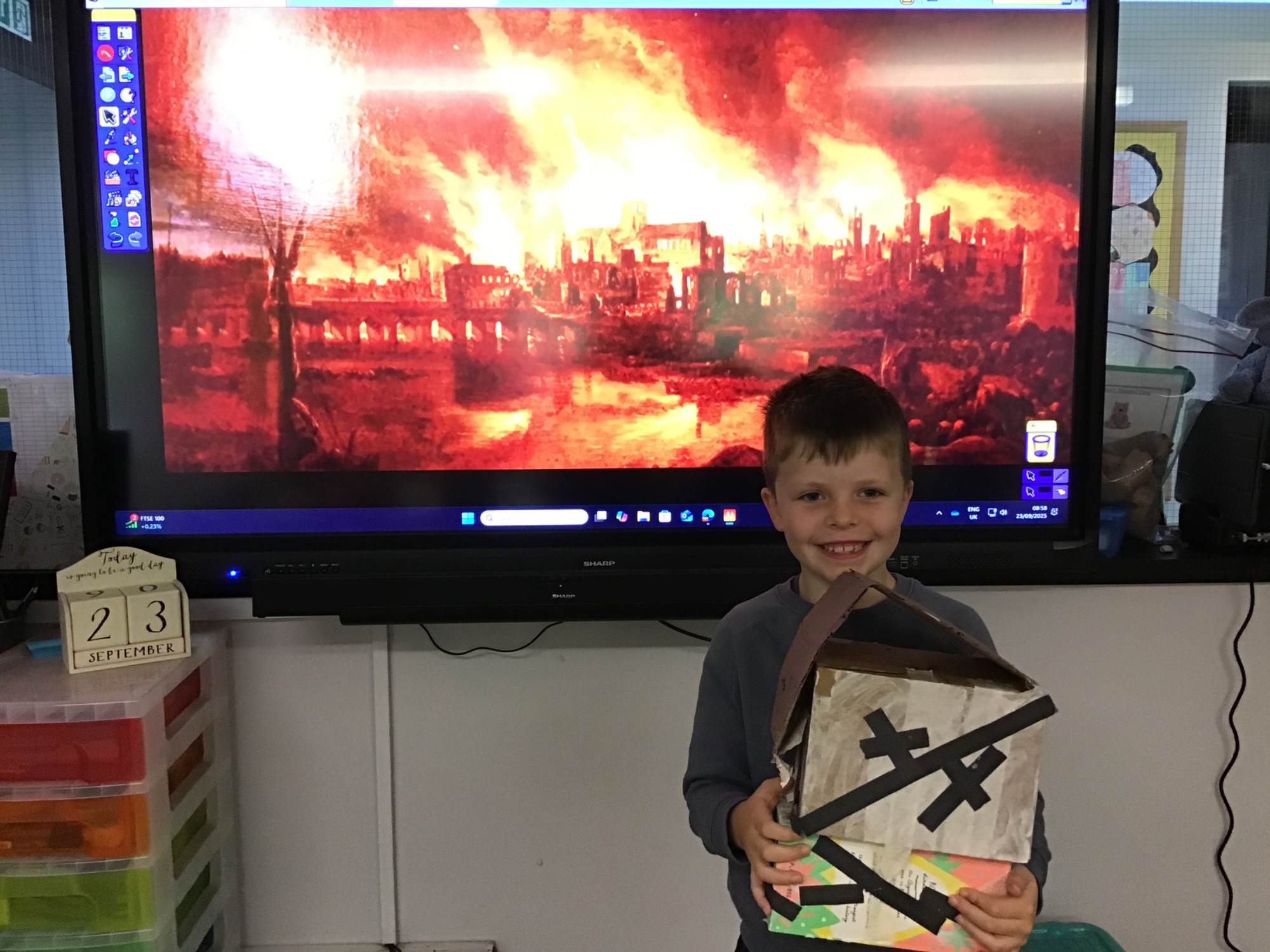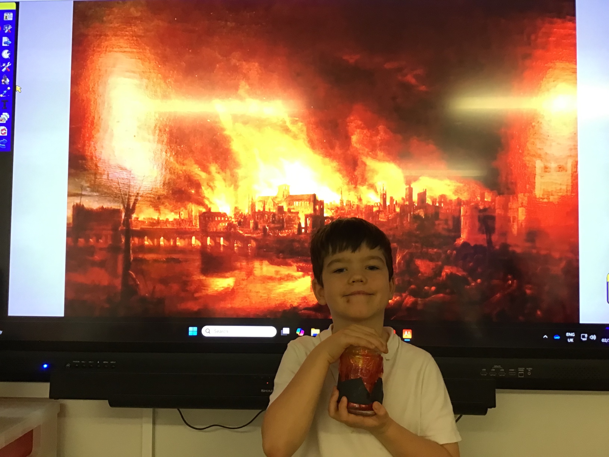 The children created the Great Fire of London in a jar.  They worked very carefully and remembered the different scientific properties of the materials they used.