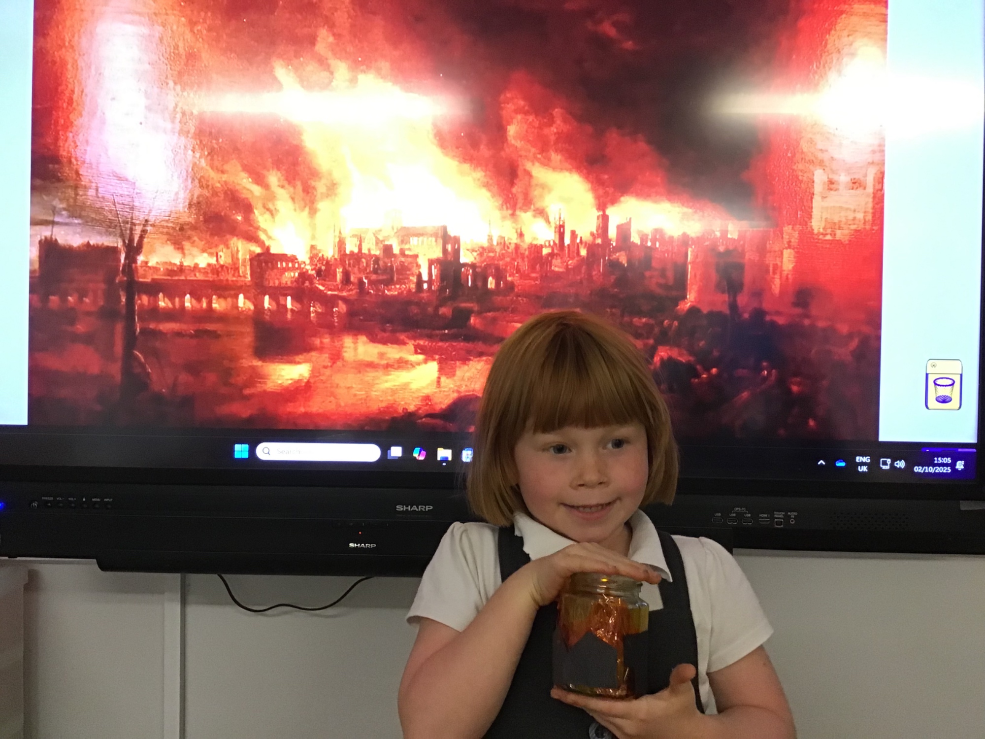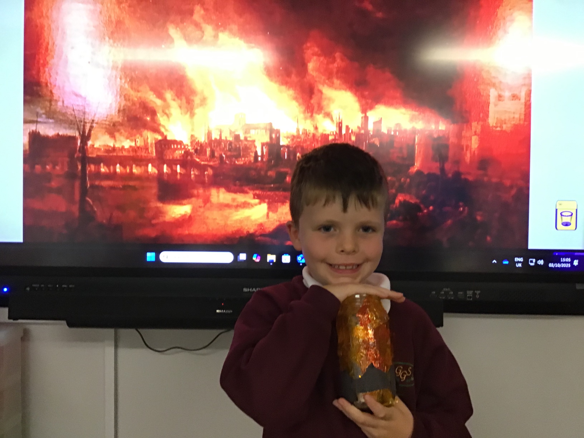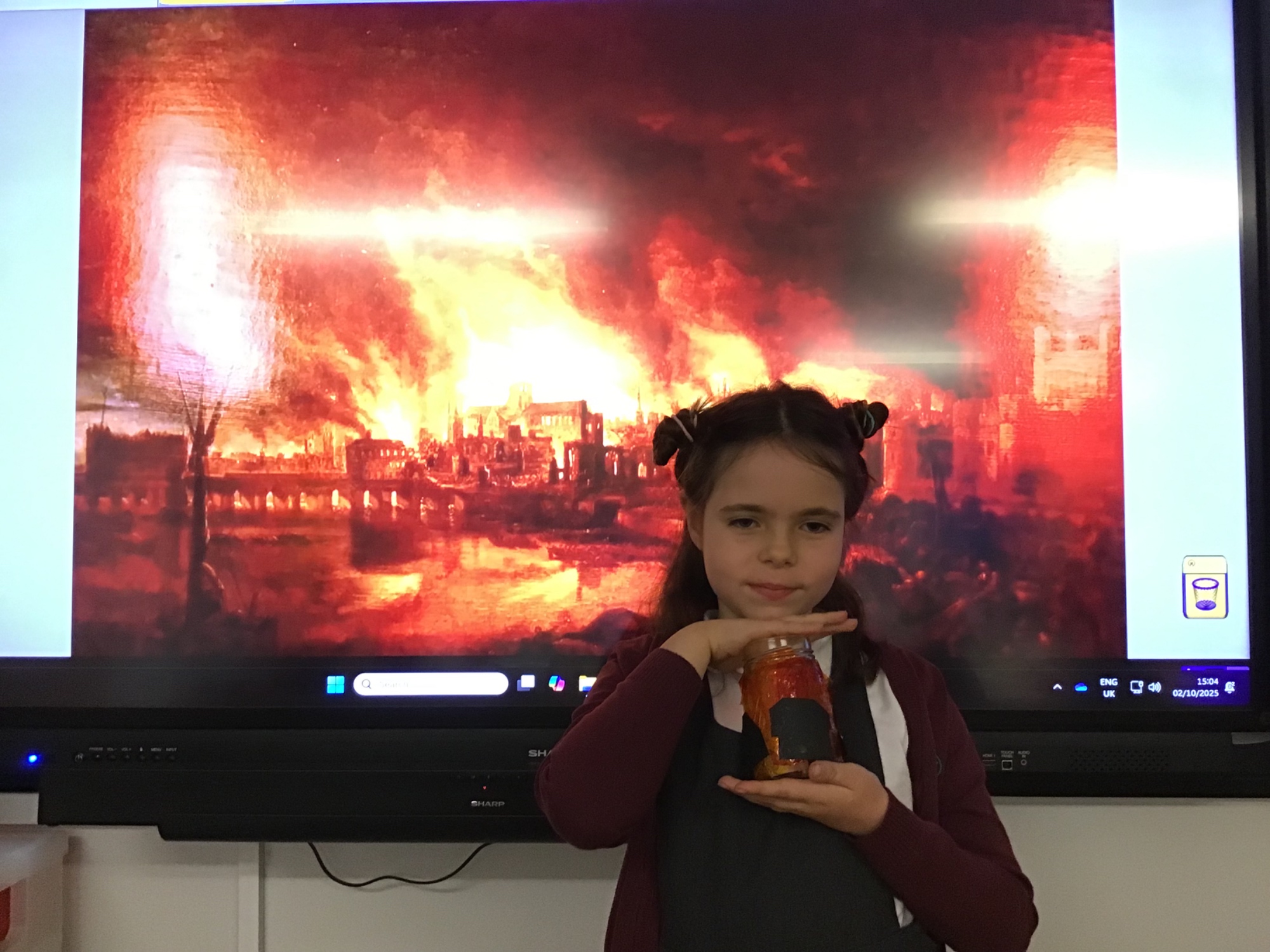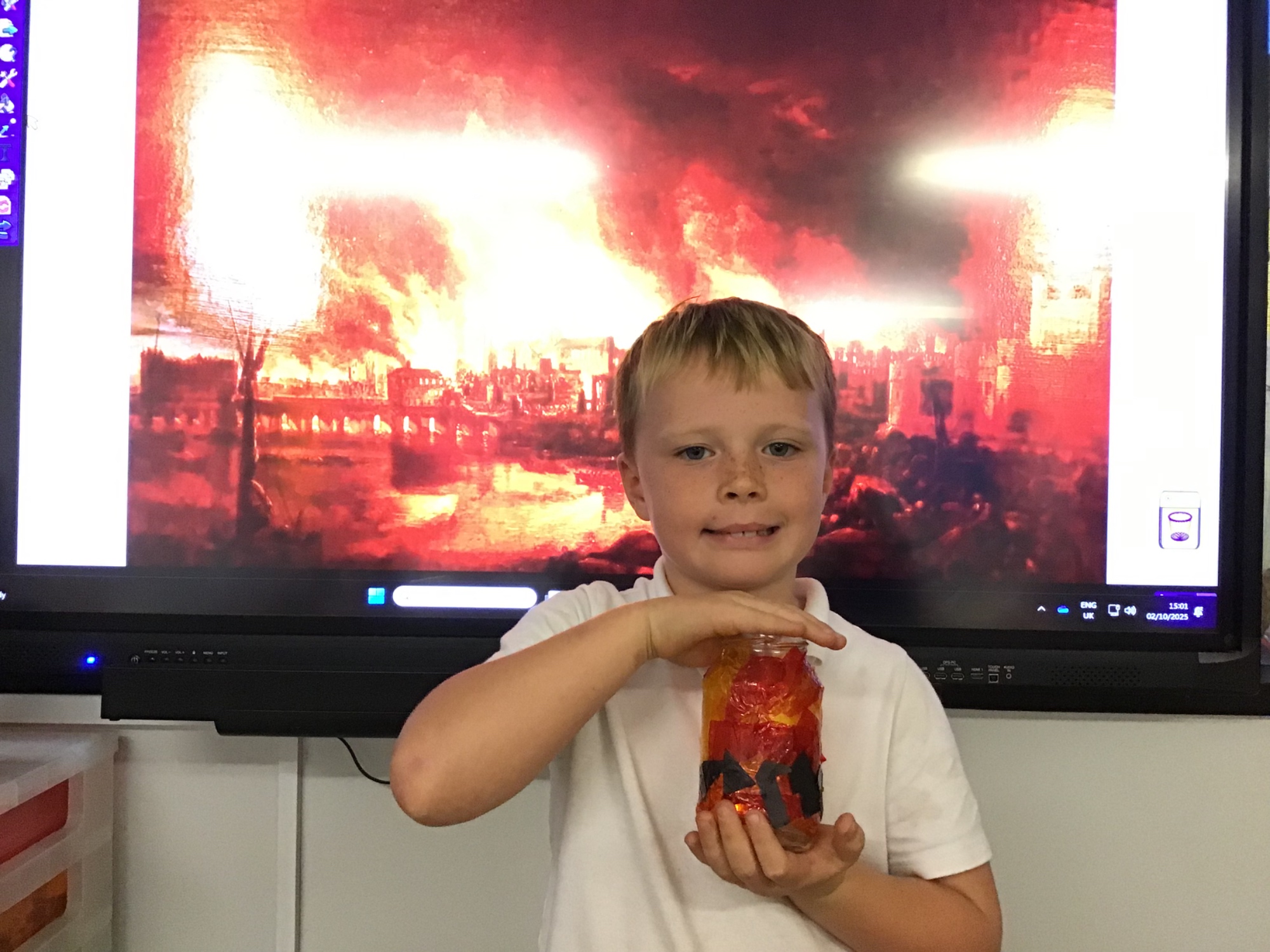 The children created the Great Fire of London in a jar.  They worked very carefully and remembered the different scientific properties of the materials they used.