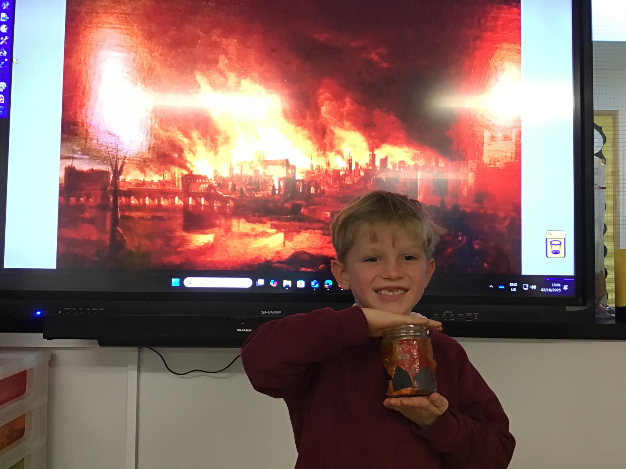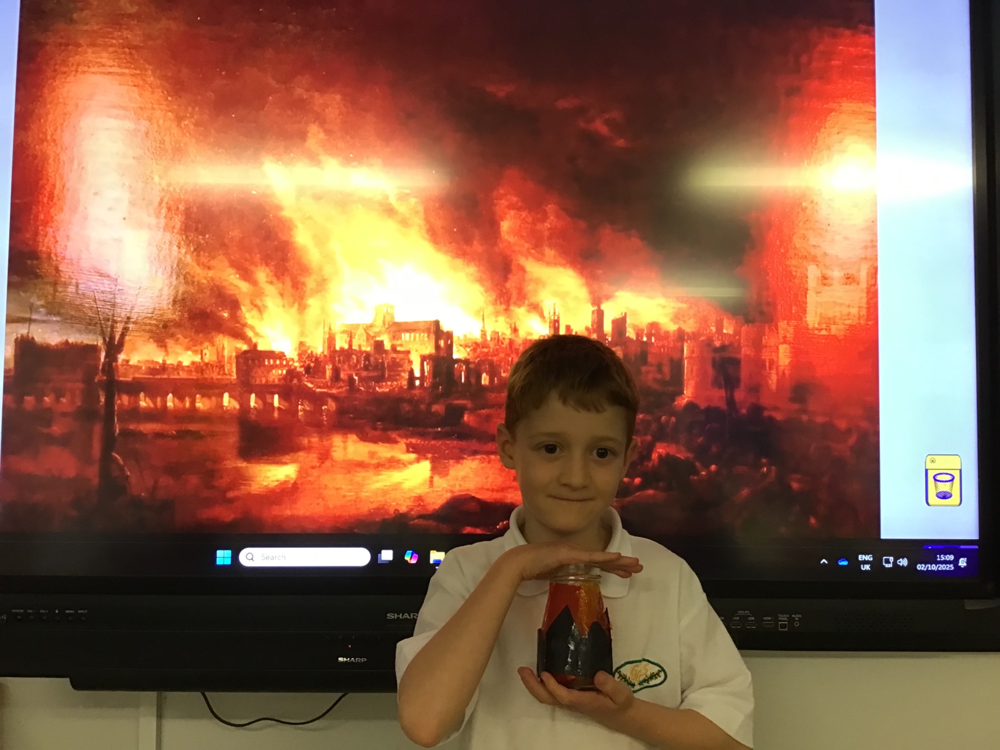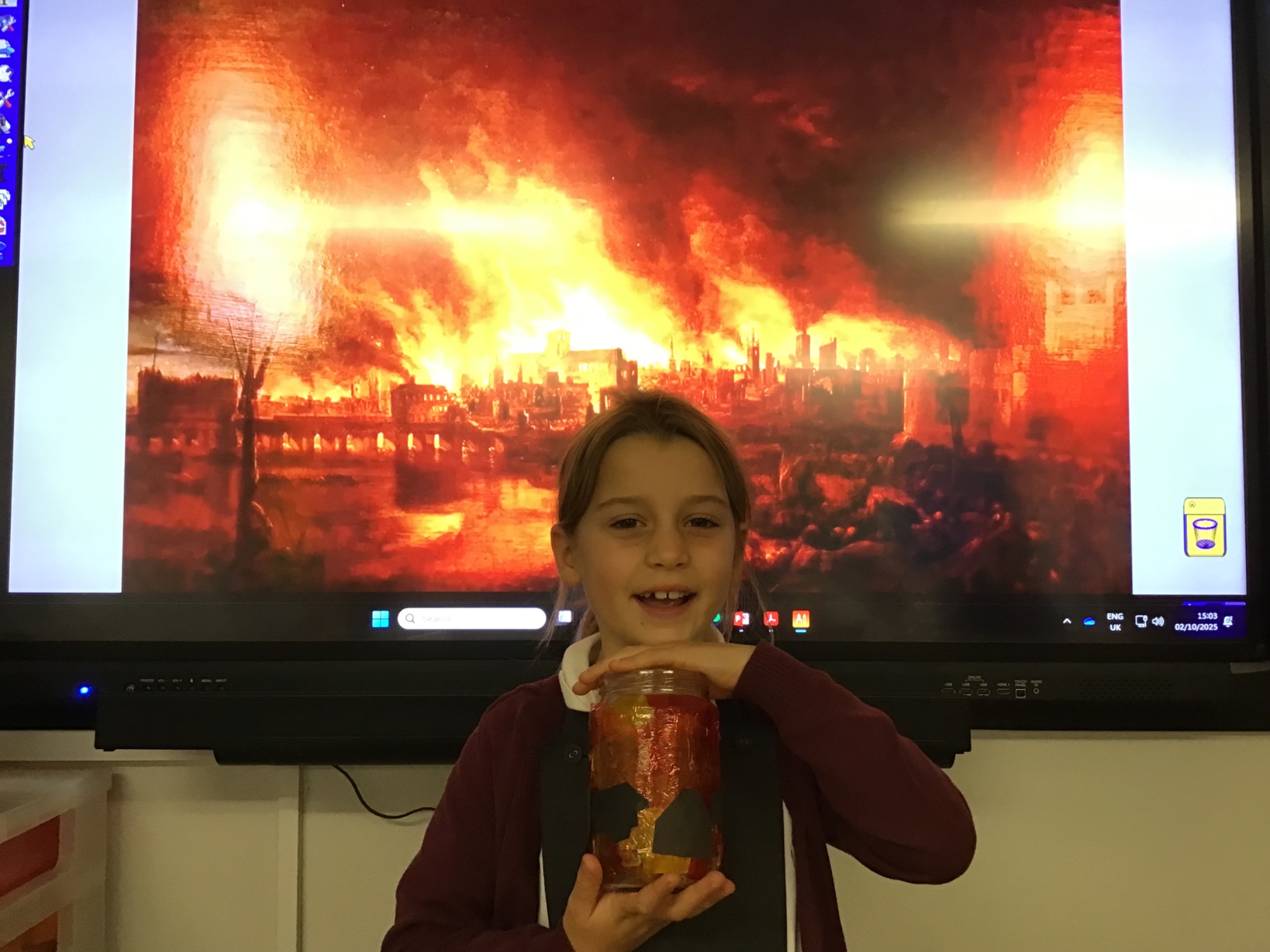 The children created the Great Fire of London in a jar.  They worked very carefully and remembered the different scientific properties of the materials they used.