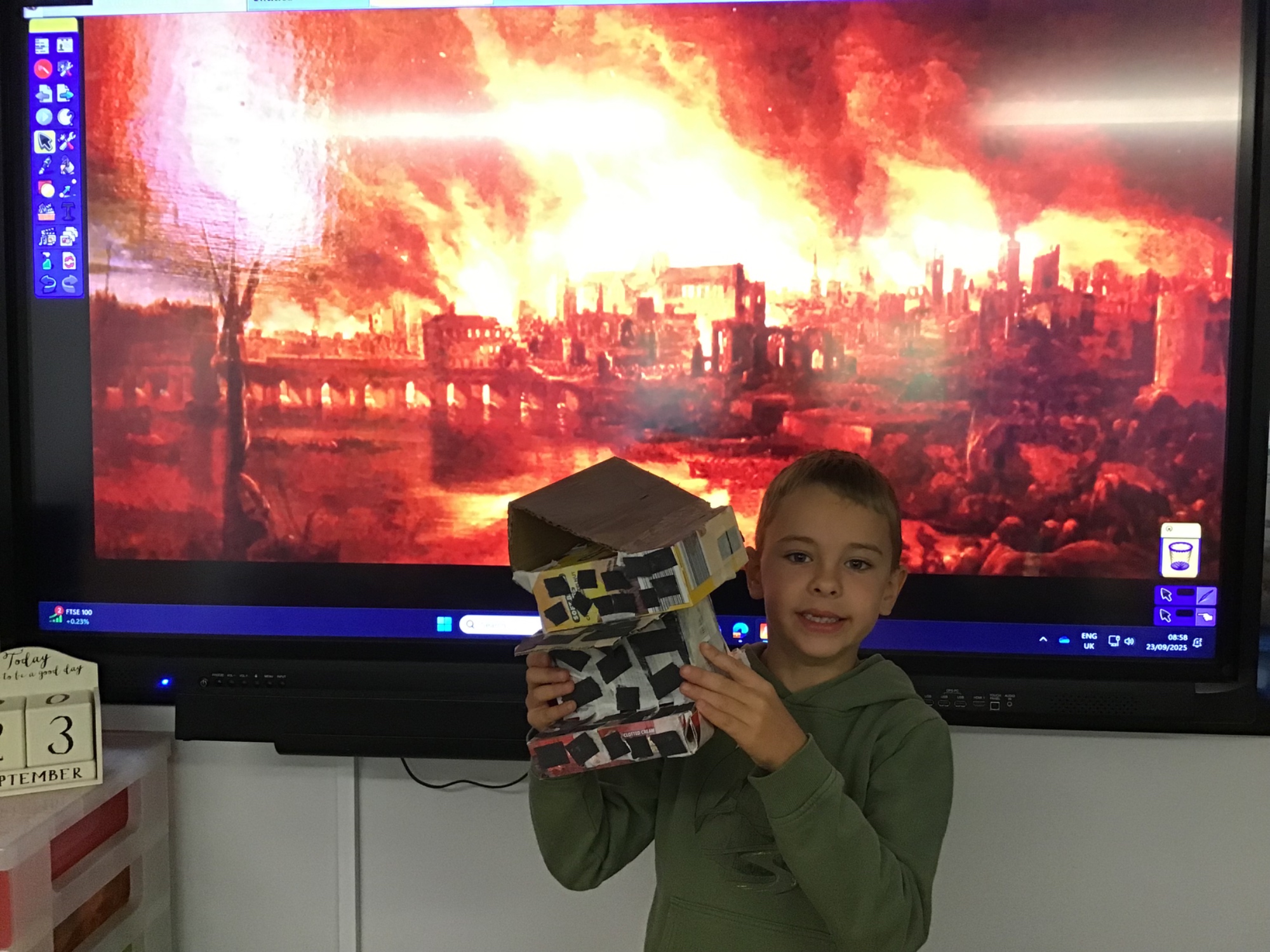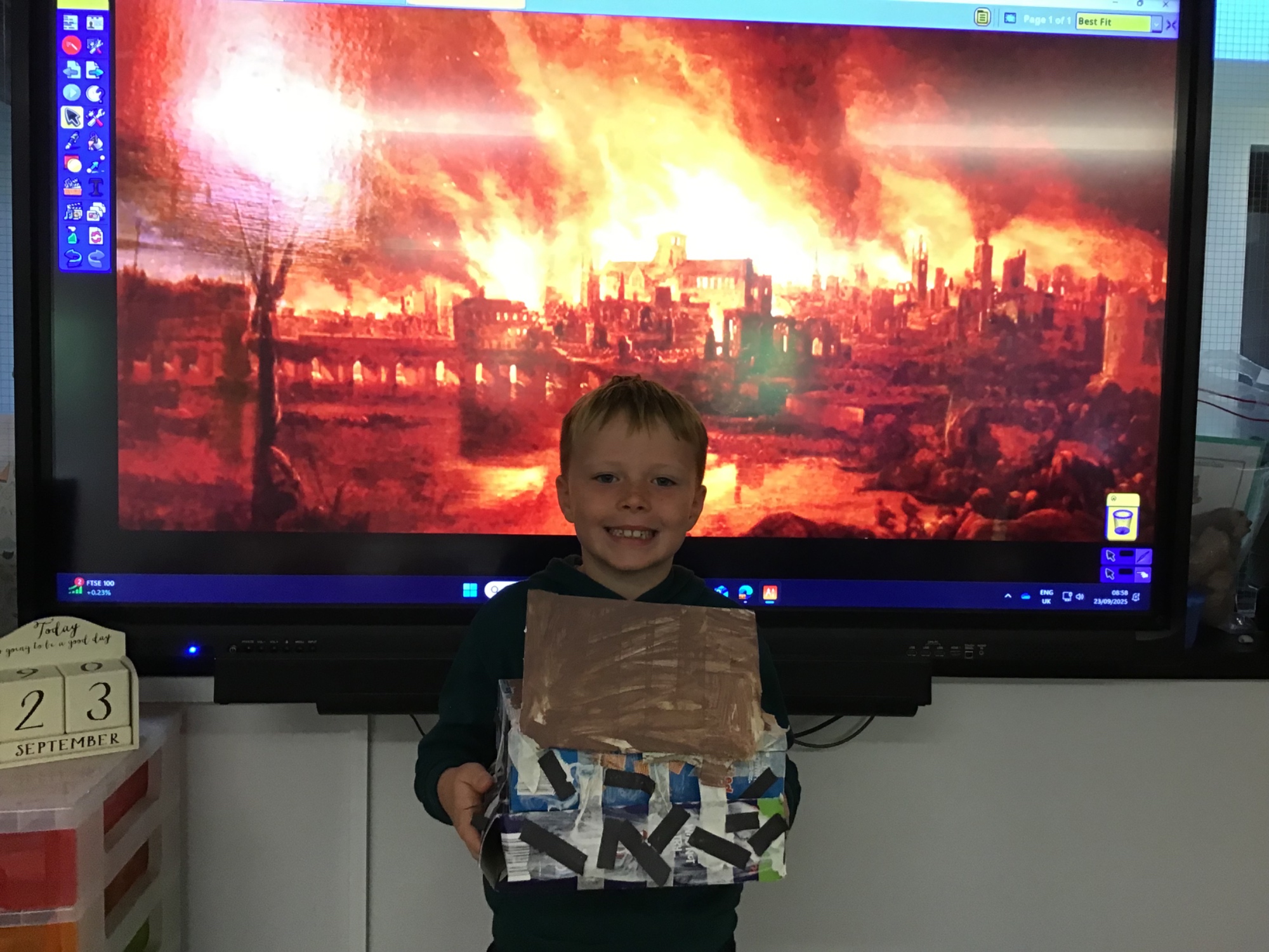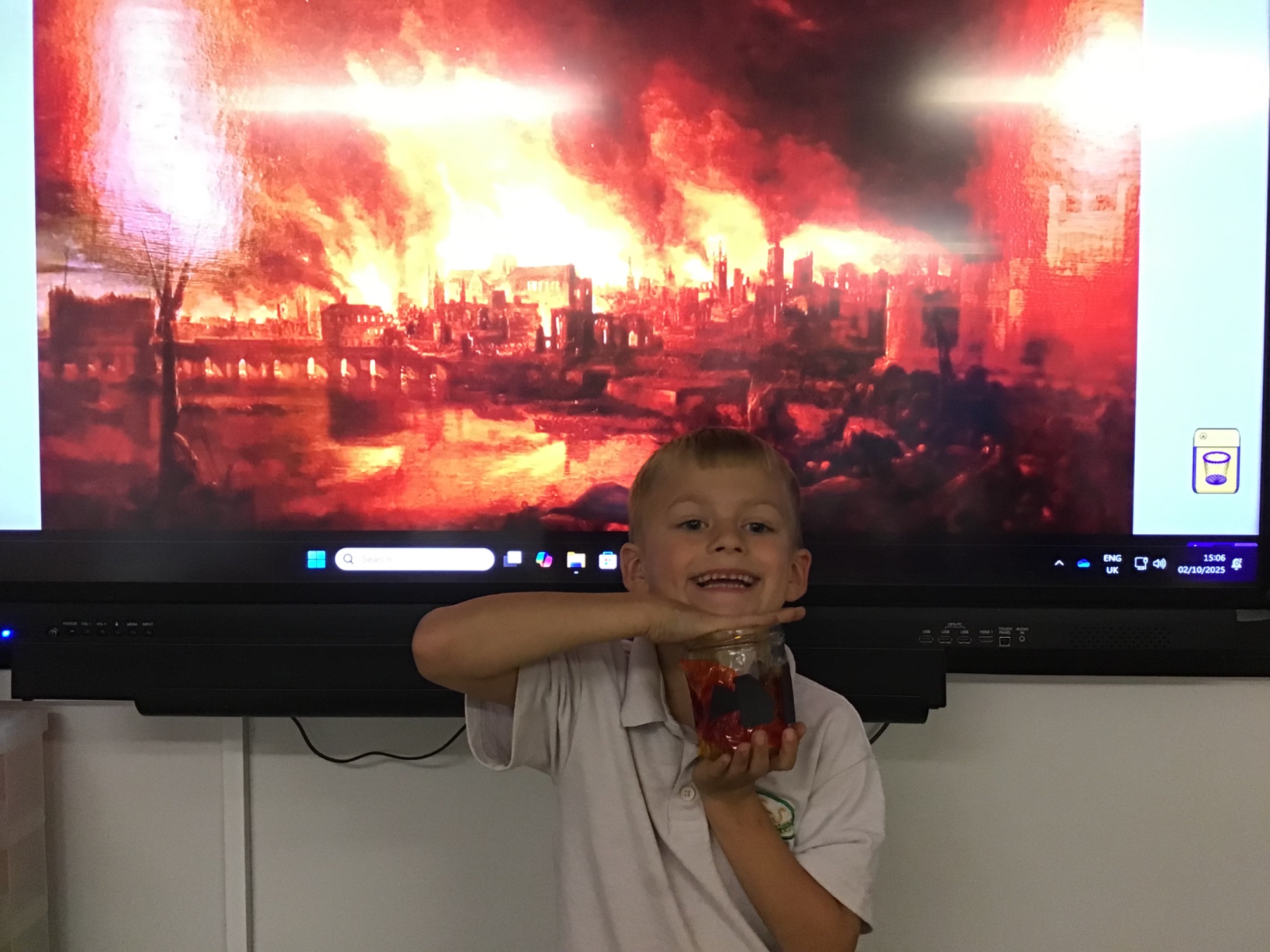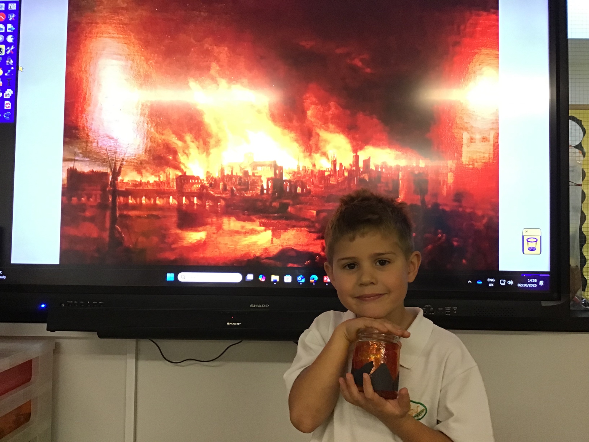 The children created the Great Fire of London in a jar.  They worked very carefully and remembered the different scientific properties of the materials they used.