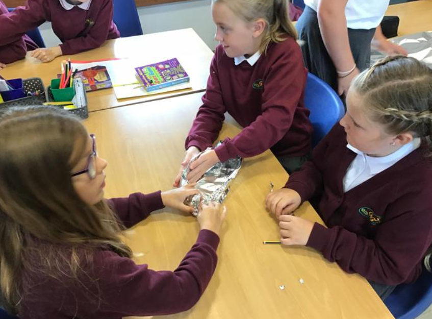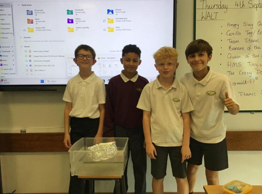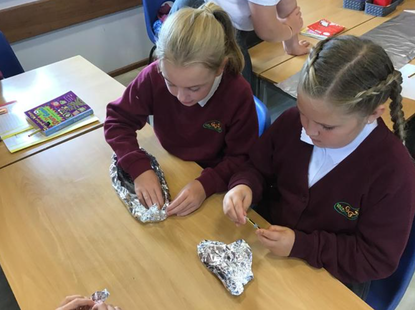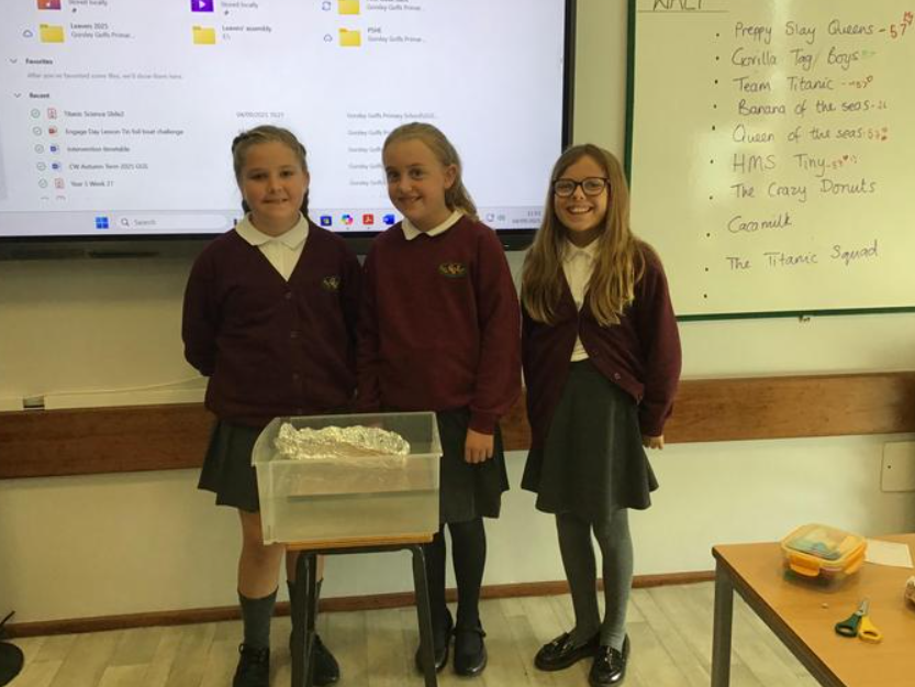 As part of our topic on the Titanic, we learnt about displacement and buoyancy. We used this knowledge to create a tin foil boat that could hold the most number of coins. We learnt that the wider and deeper the hull, the more water is displaced and the more coins our tin boat can hold. It was great fun.