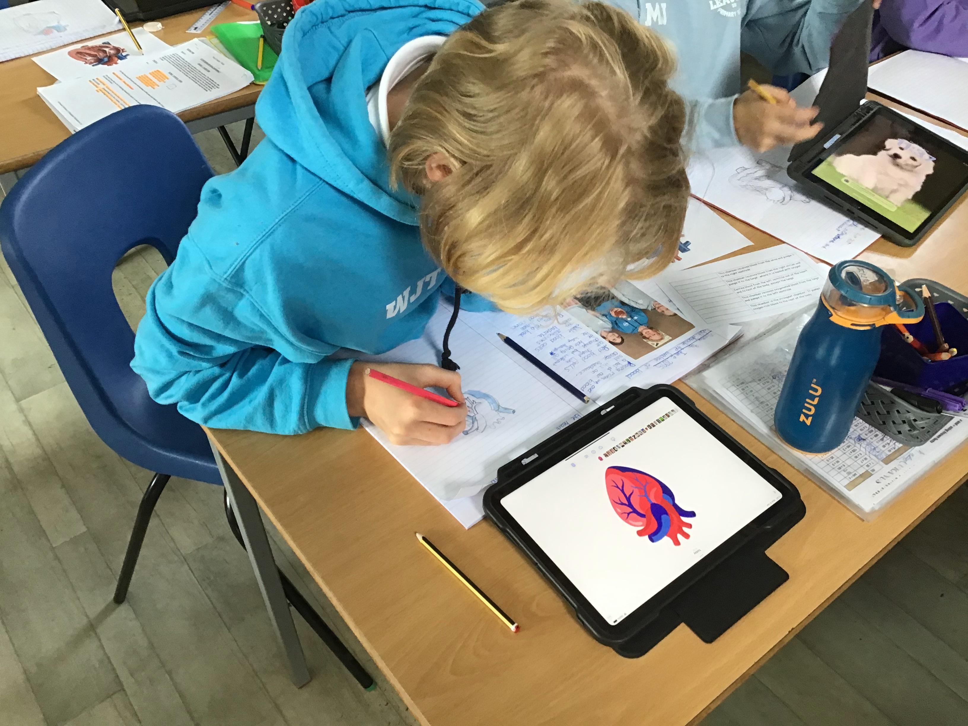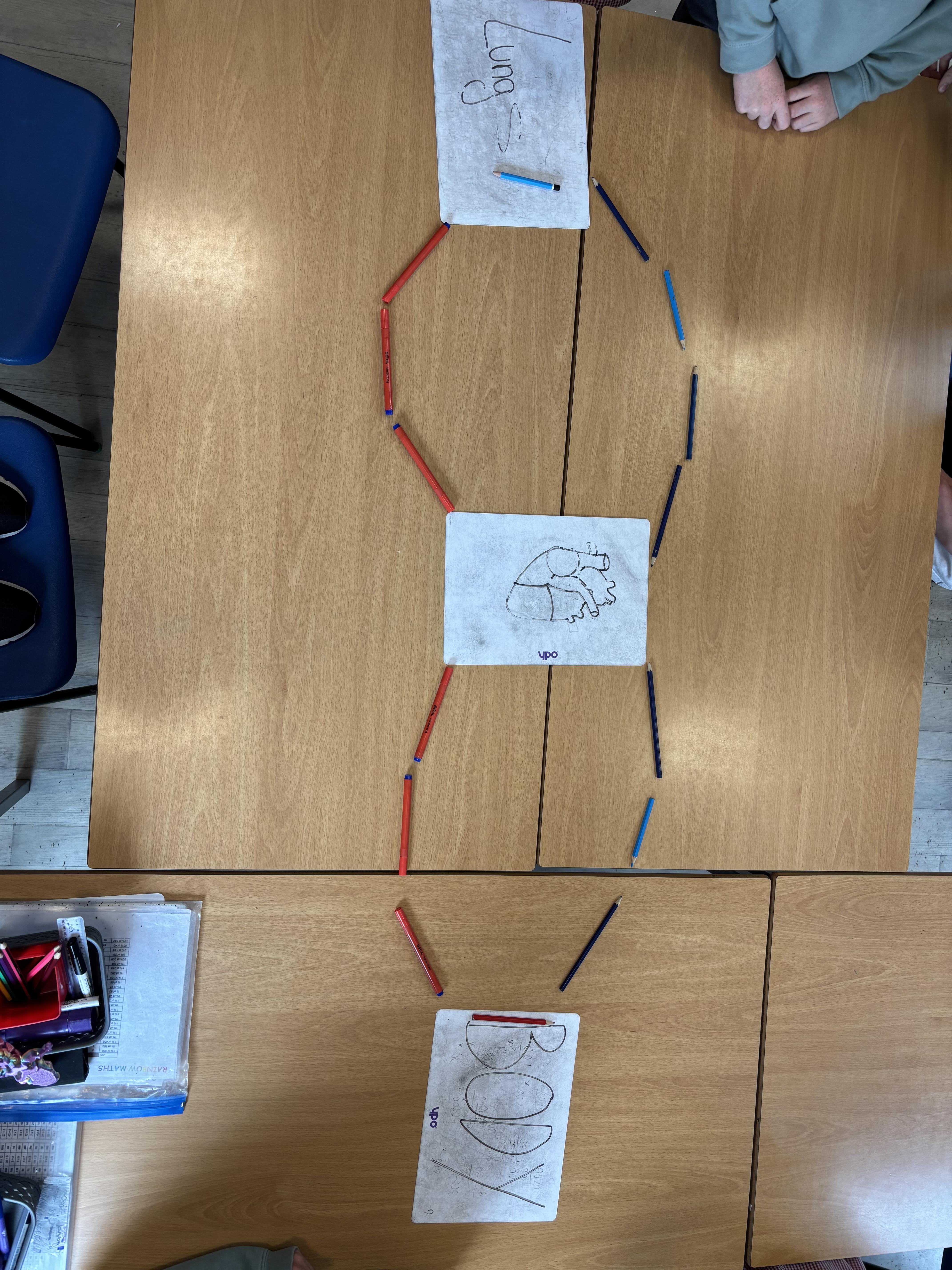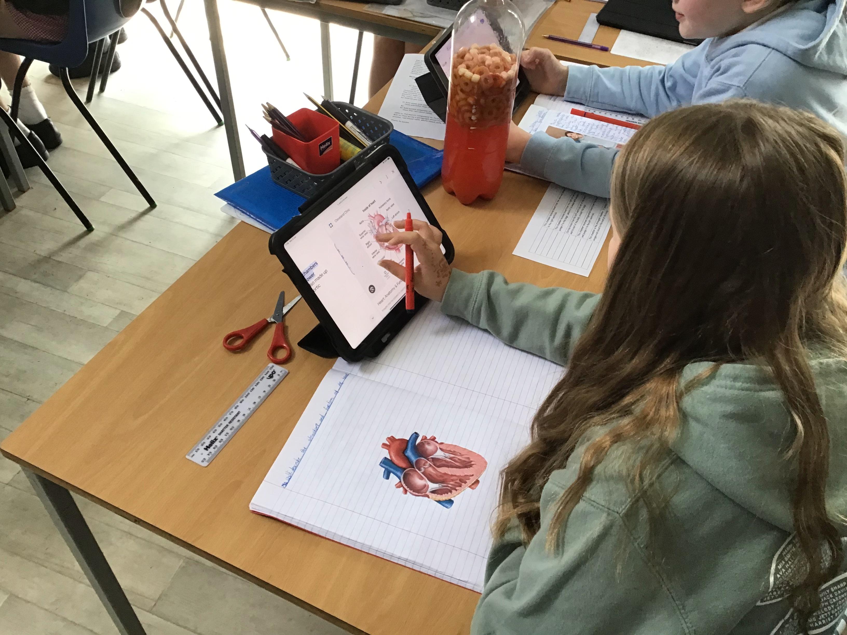 We worked together to look at the structure of the heart. We identified and labelled the four chambers of the heart and watched a video clip show how blood was pumped through the heart to the lungs then back into the heart to be pumped around the body. We understood that the heart and blood work together to create the circulatory system in our body, providing our organs and muscles with energy, water and oxygen to work.