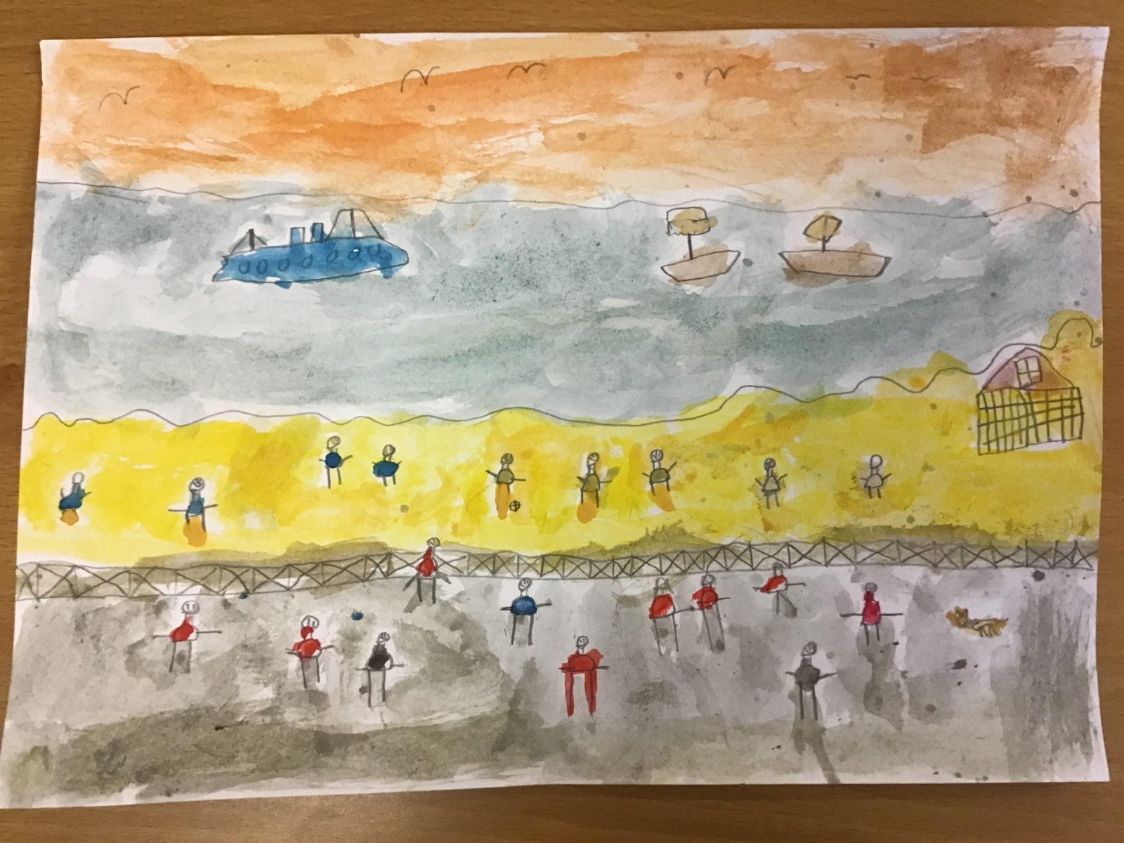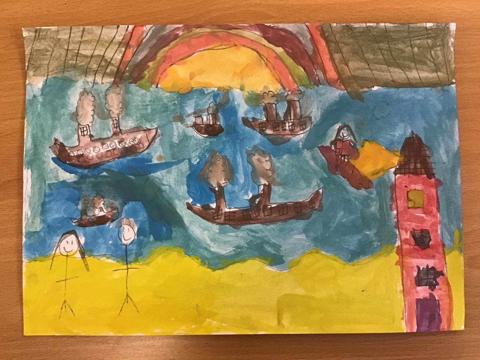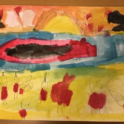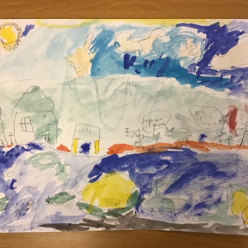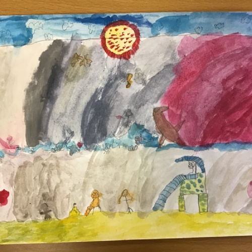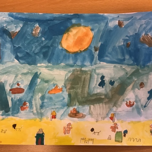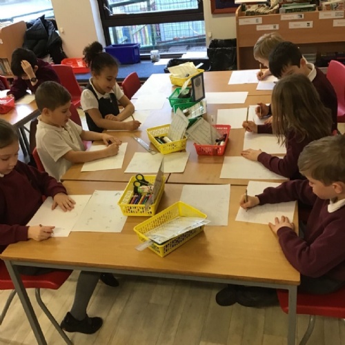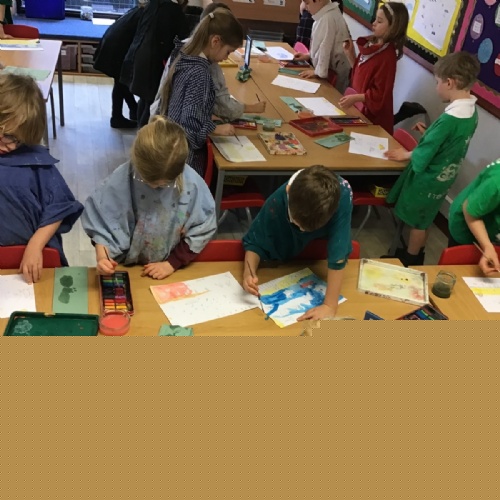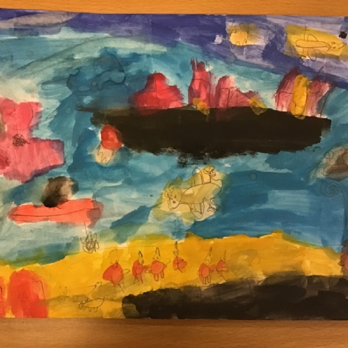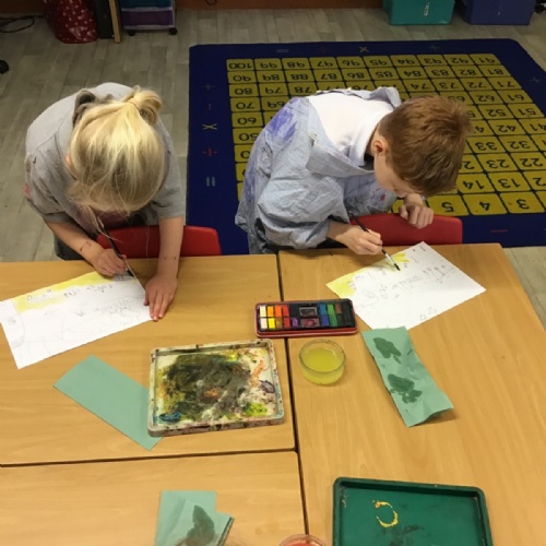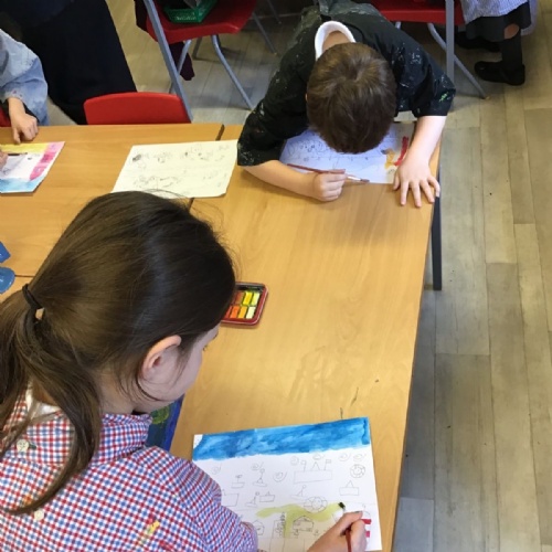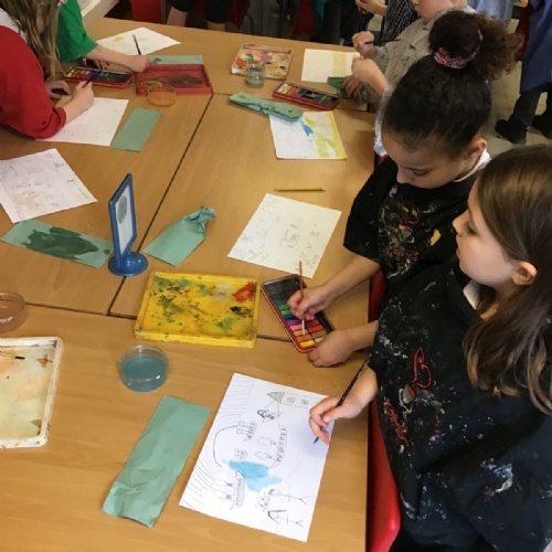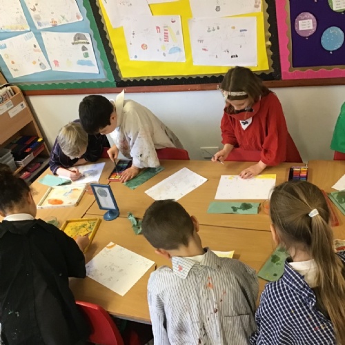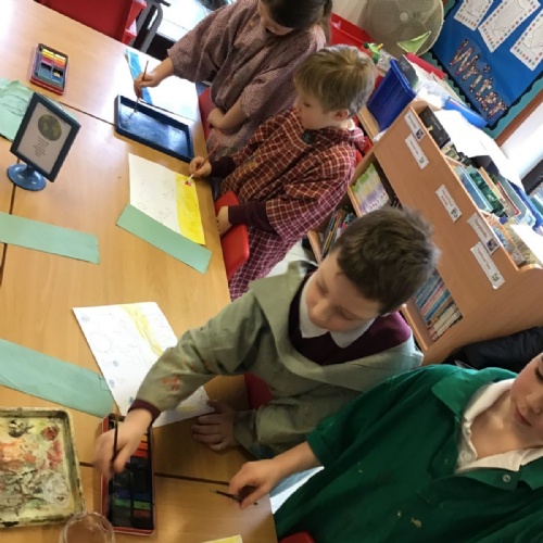 The children have been finding out about the artist, LS Lowry. They found out that he only used five colours in his paintings; red, blue, yellow, black and white.