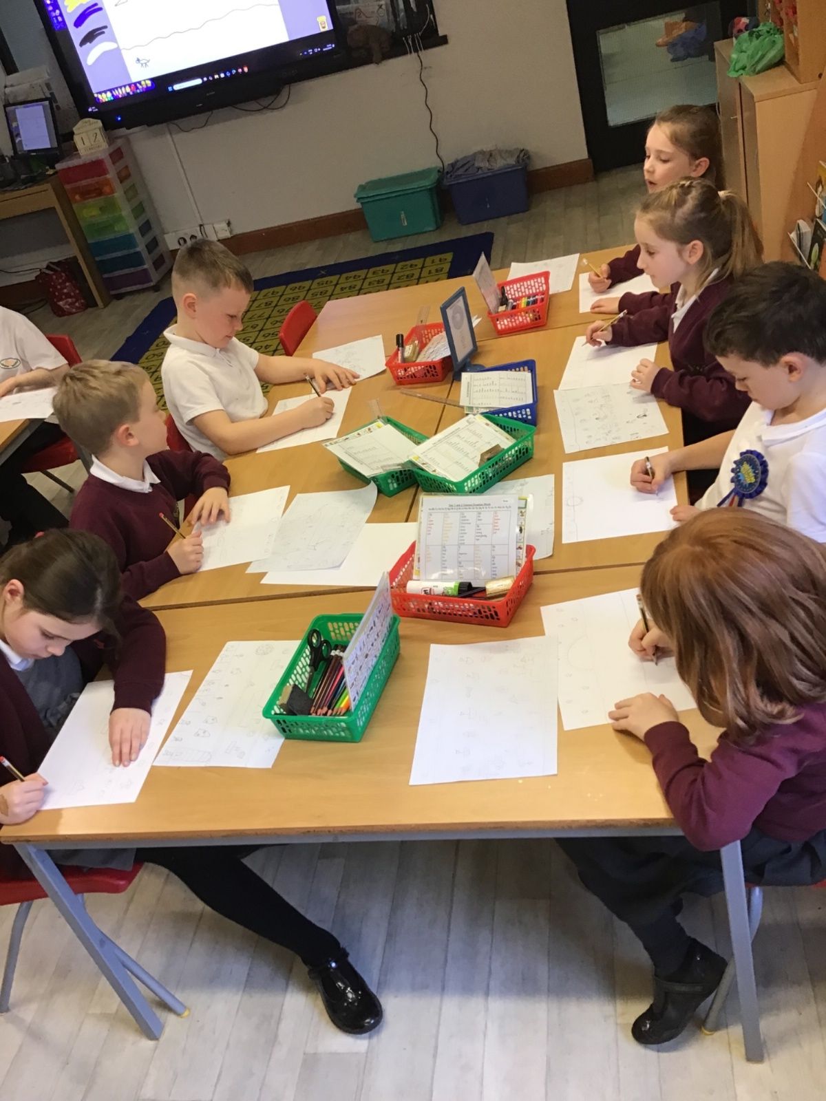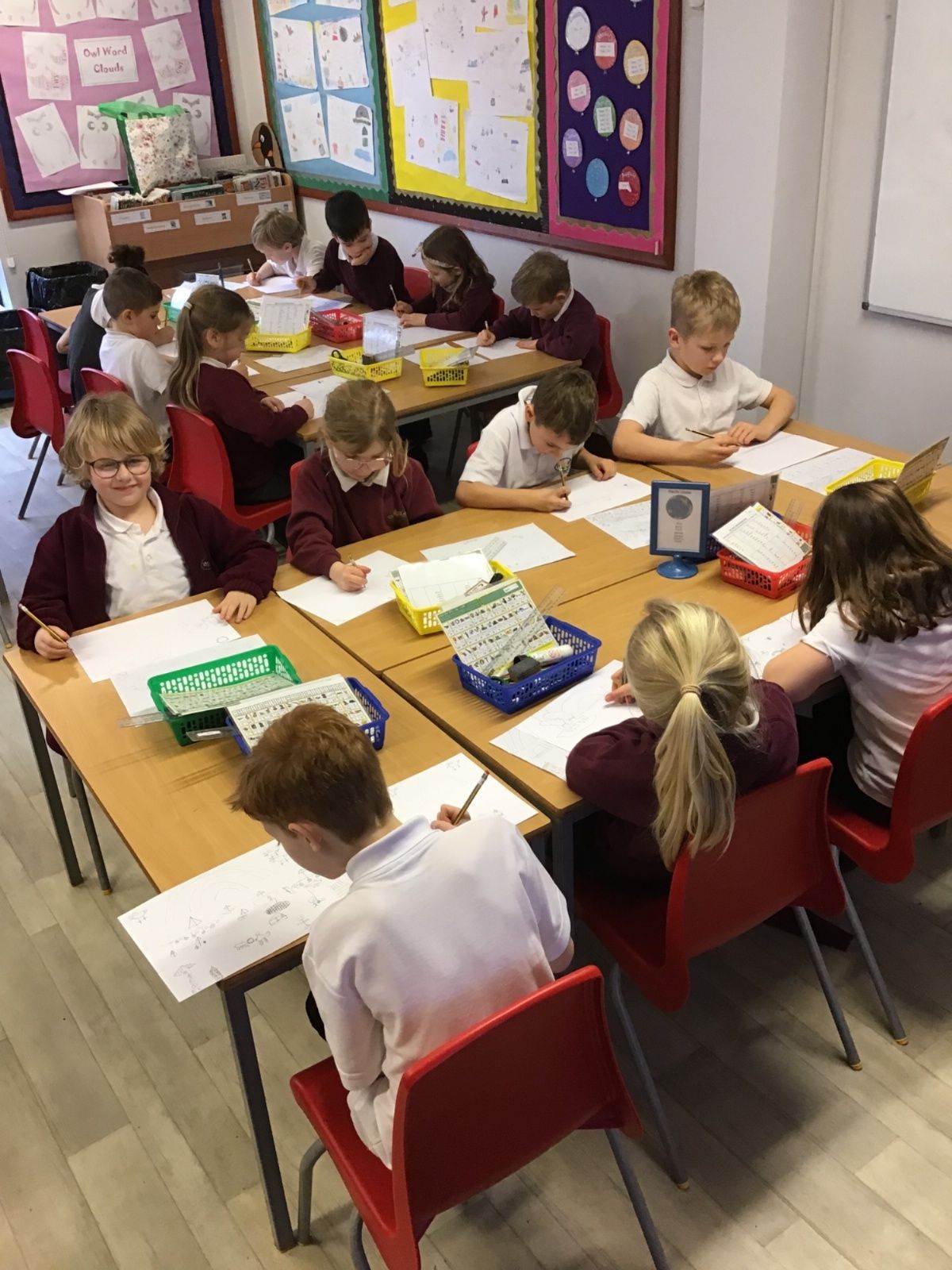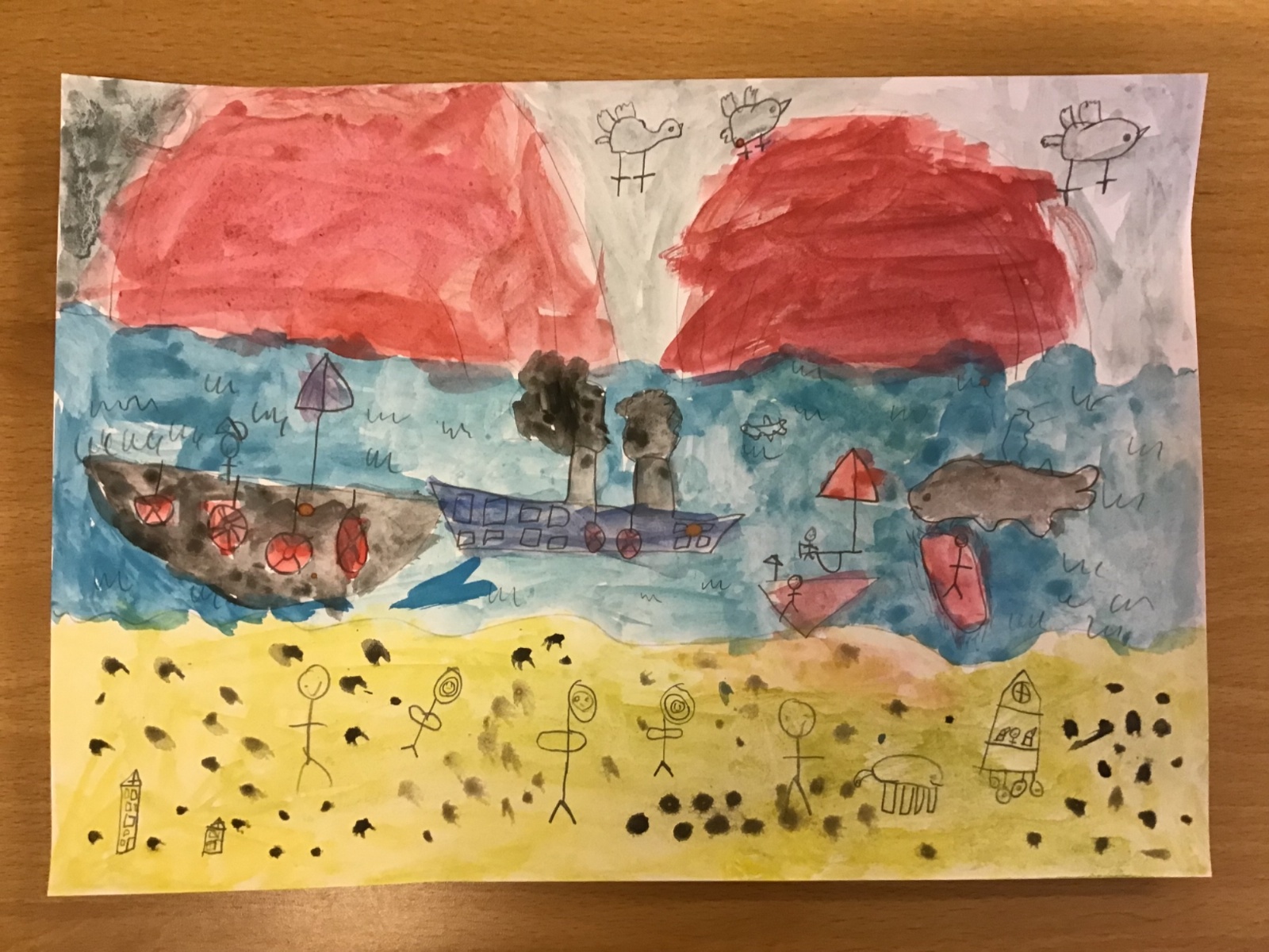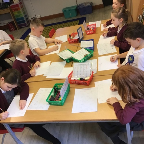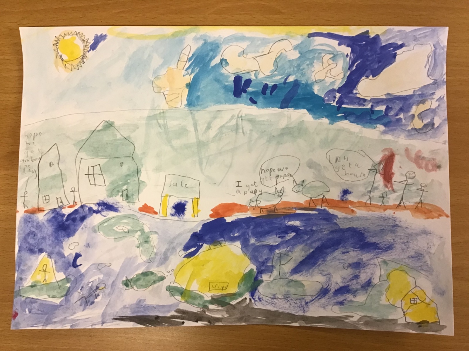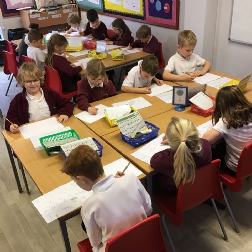 The children have been finding out about the artist, LS Lowry. They found out that he only used five colours in his paintings; red, blue, yellow, black and white.