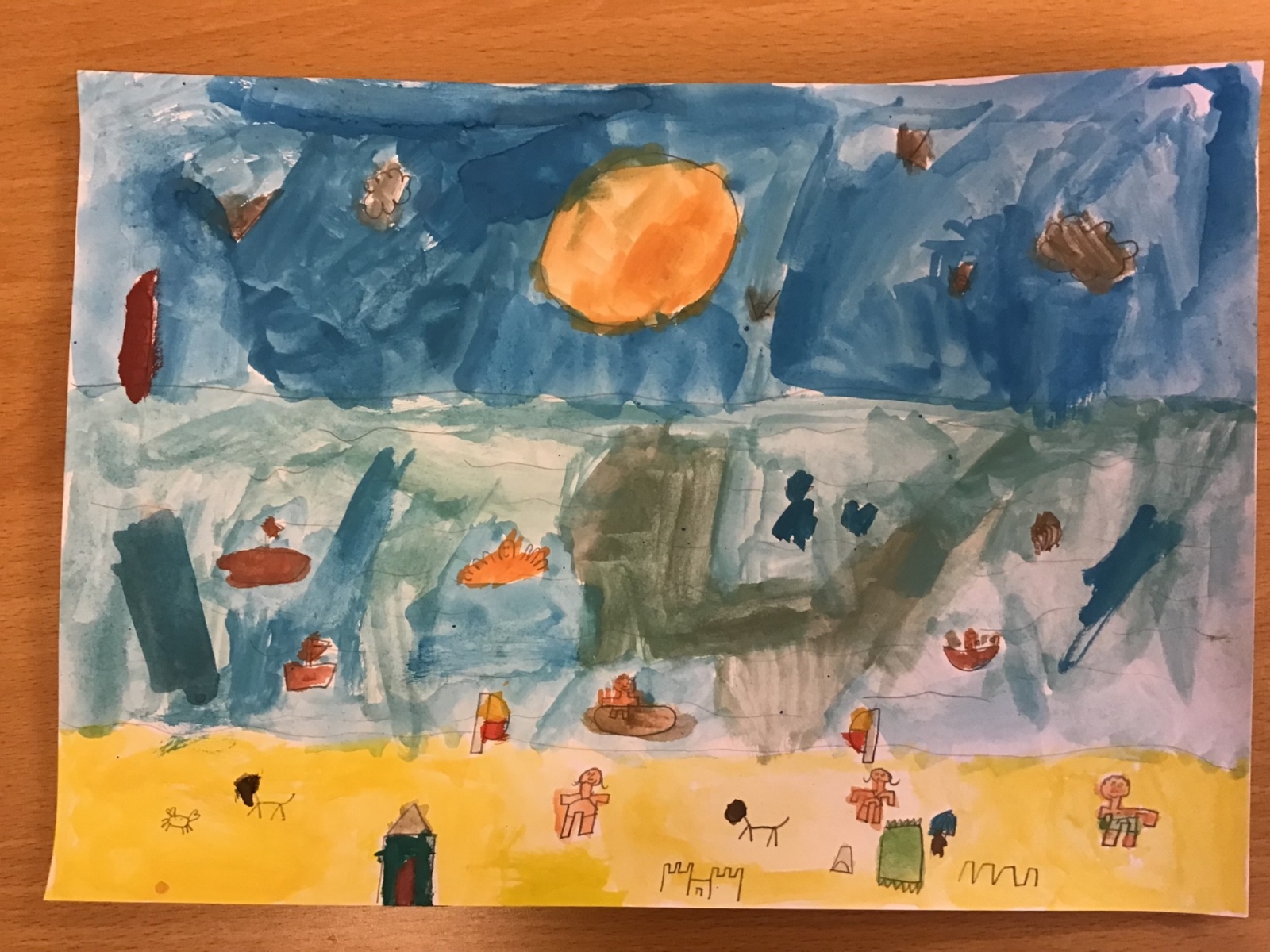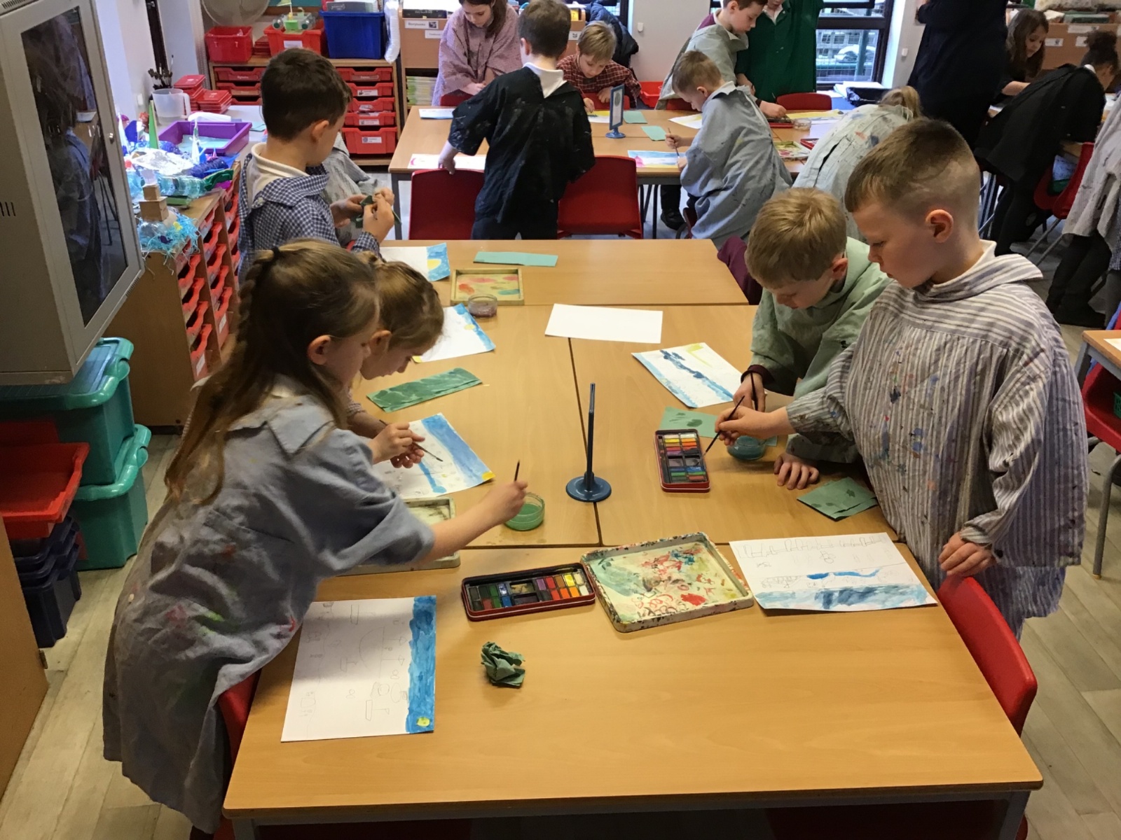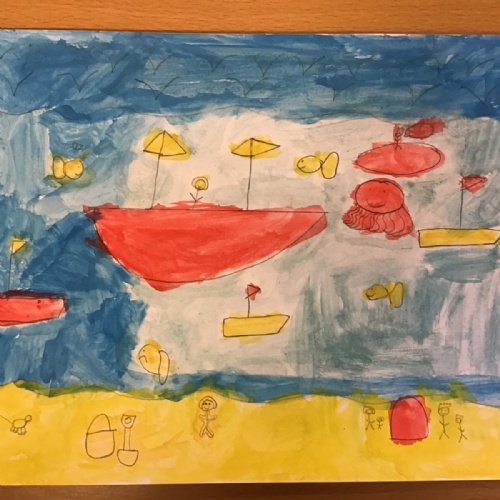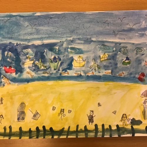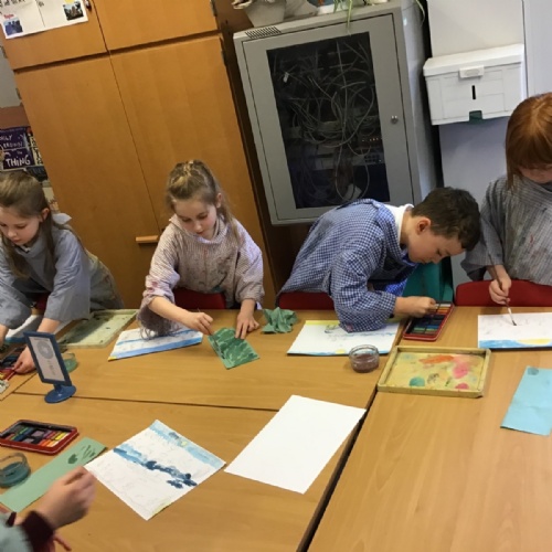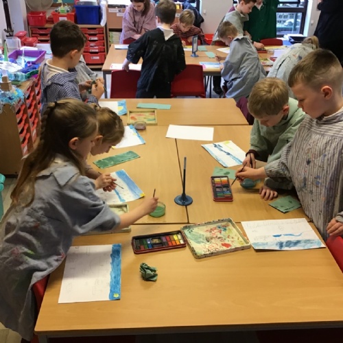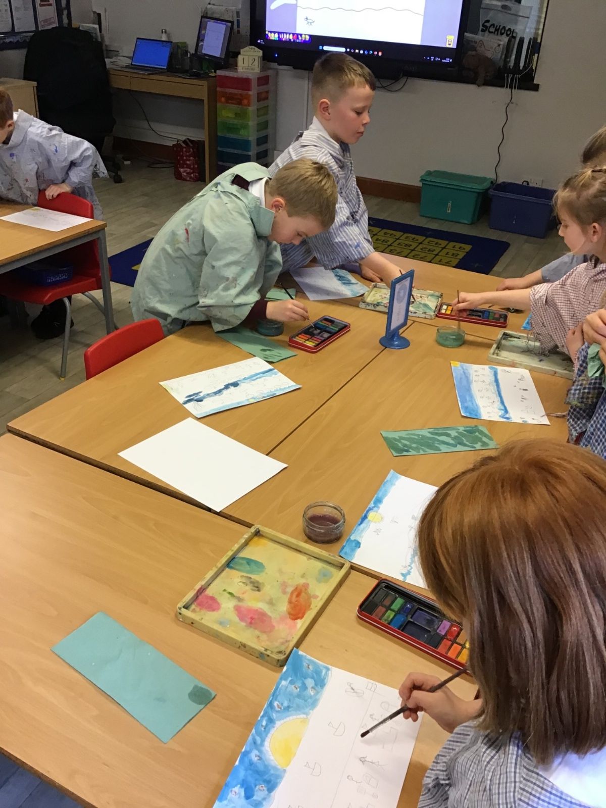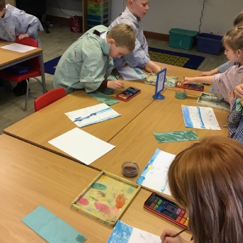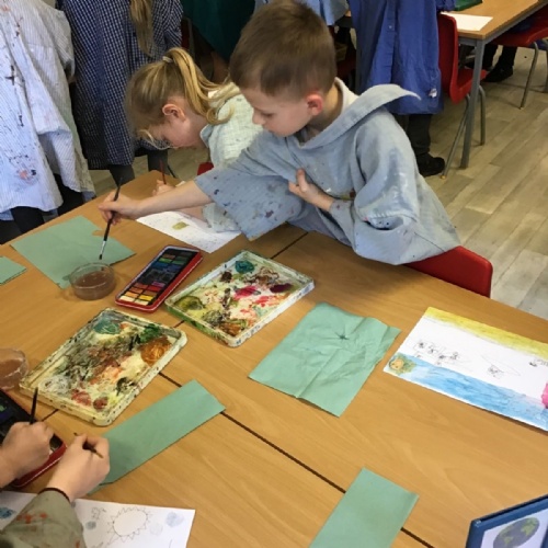 The children worked very hard and created their own beautiful seascapes.