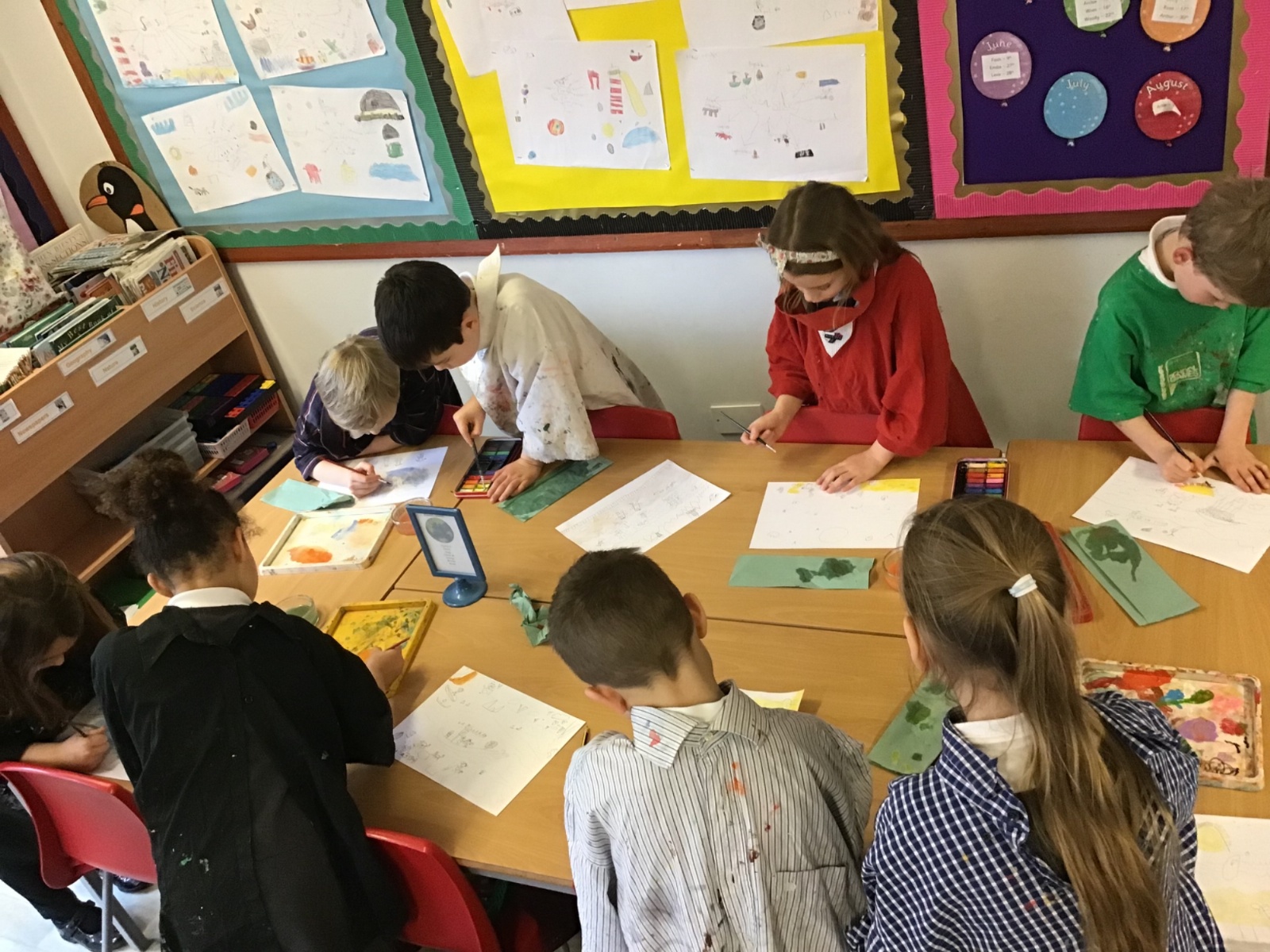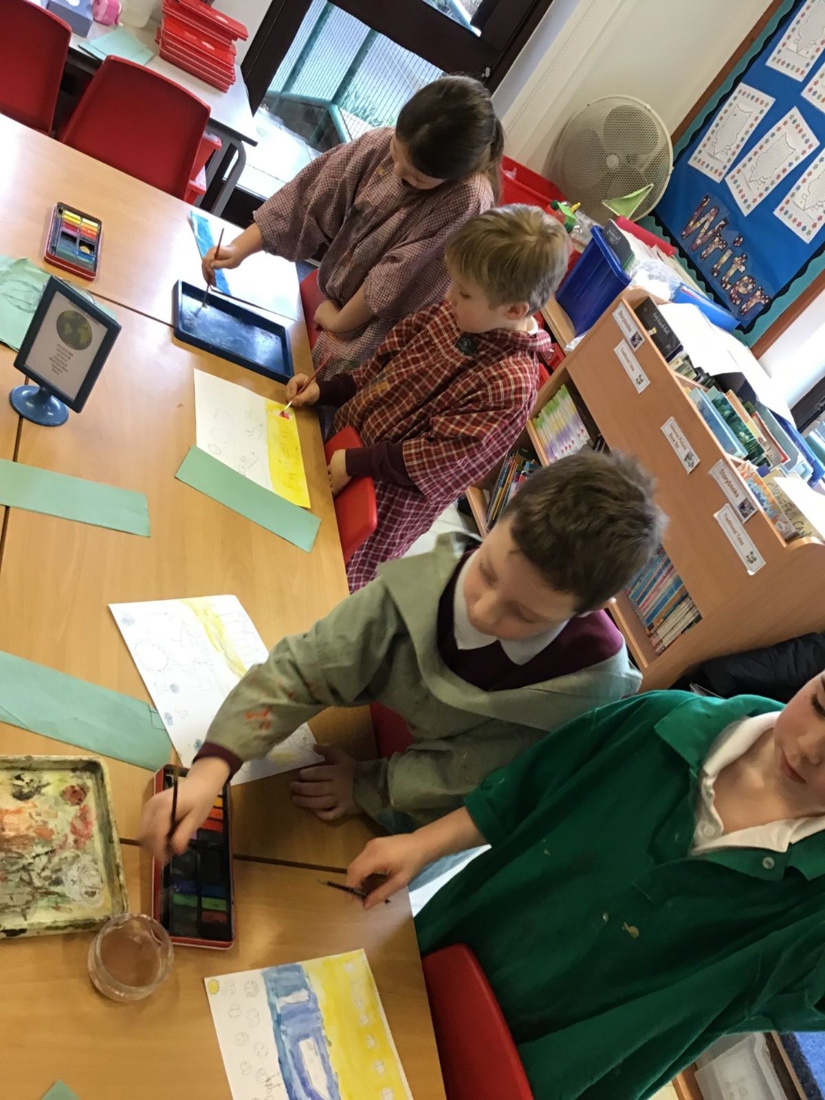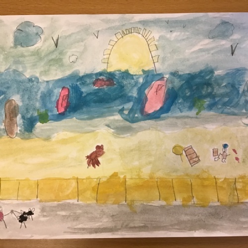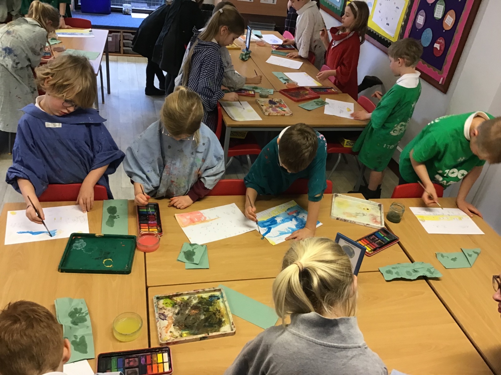 The children worked very hard and created their own beautiful seascapes.
