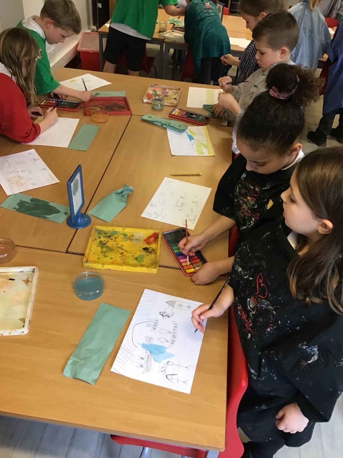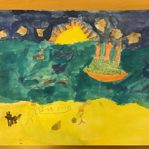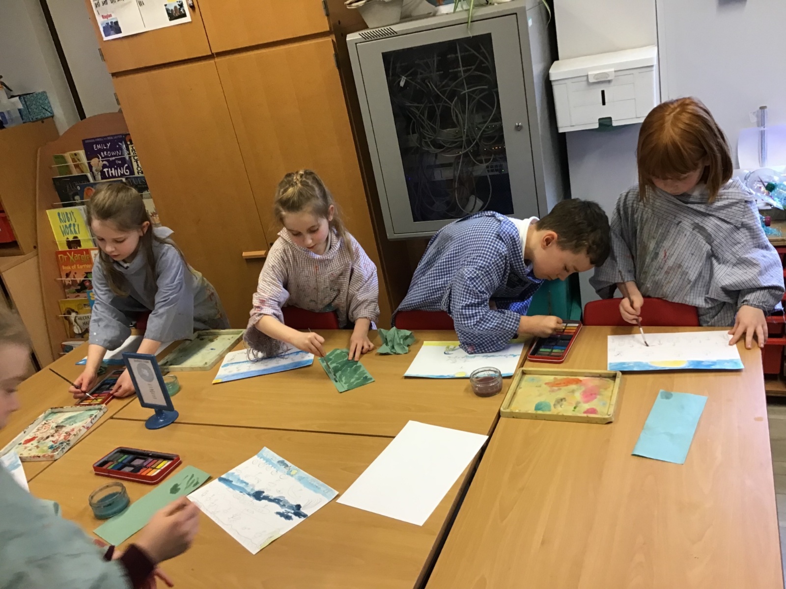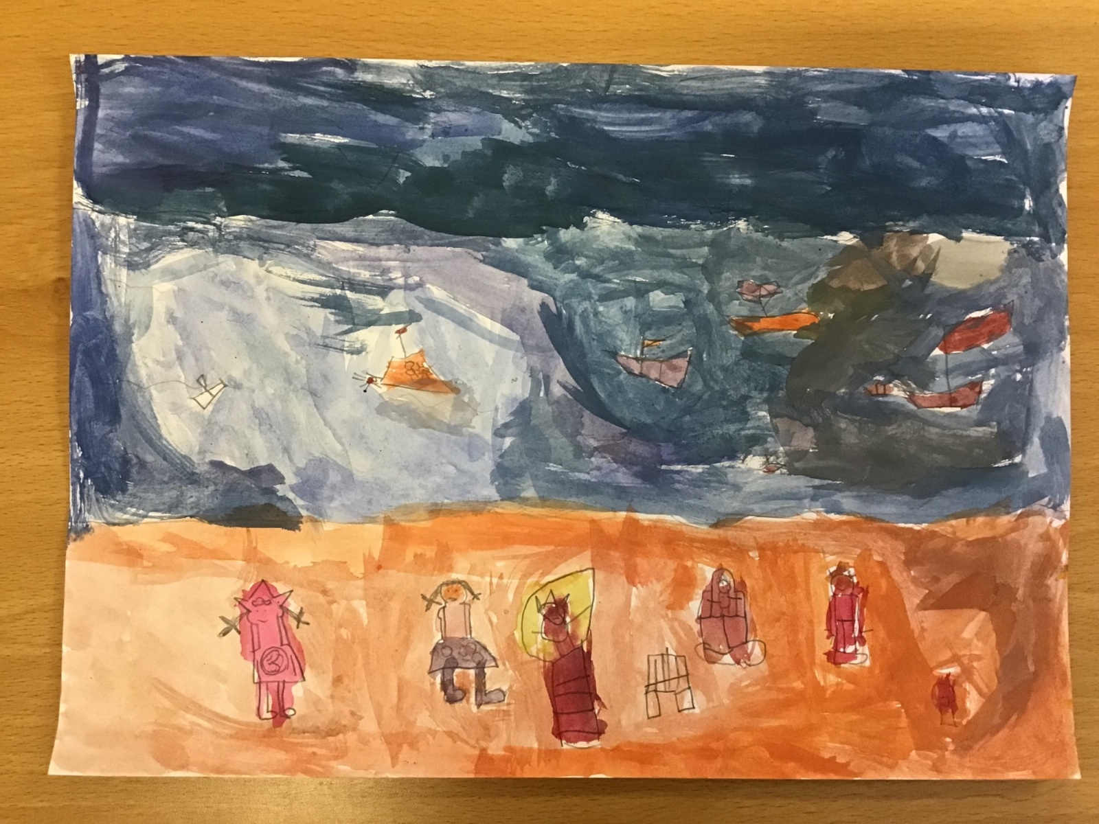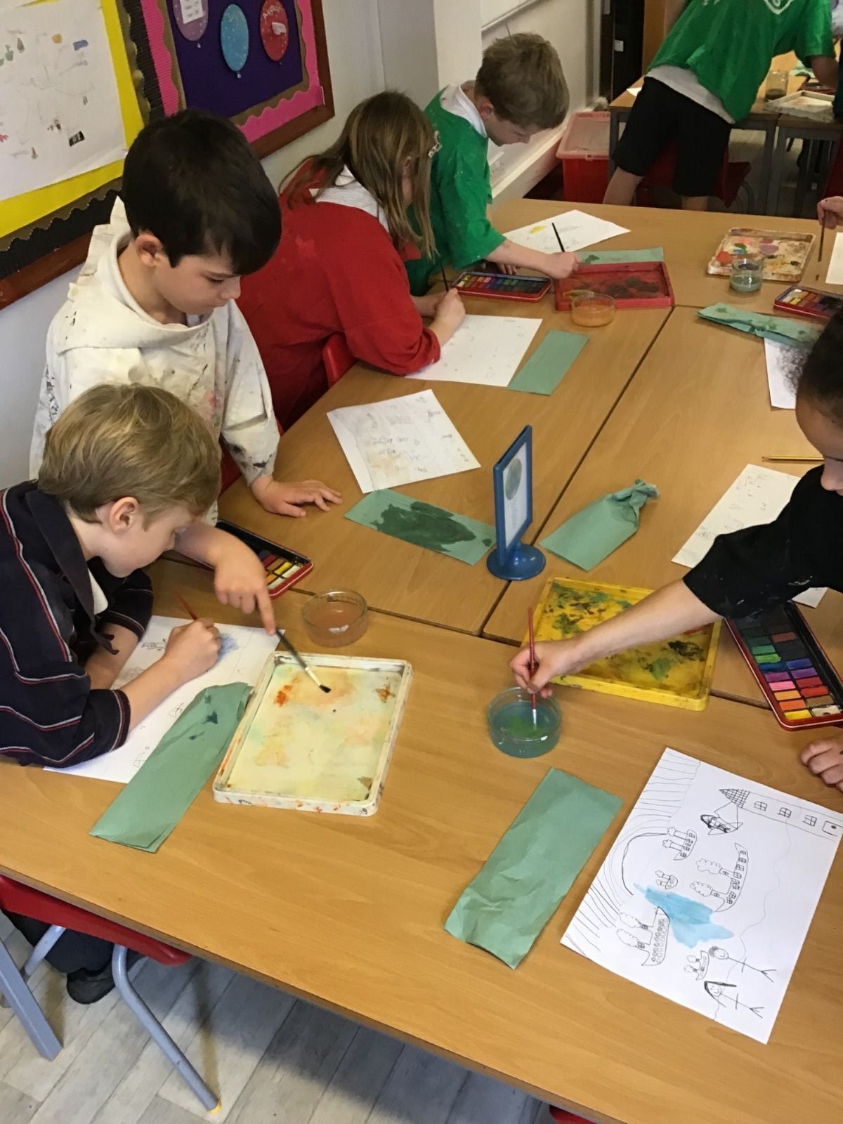 The children worked very hard and created their own beautiful seascapes.