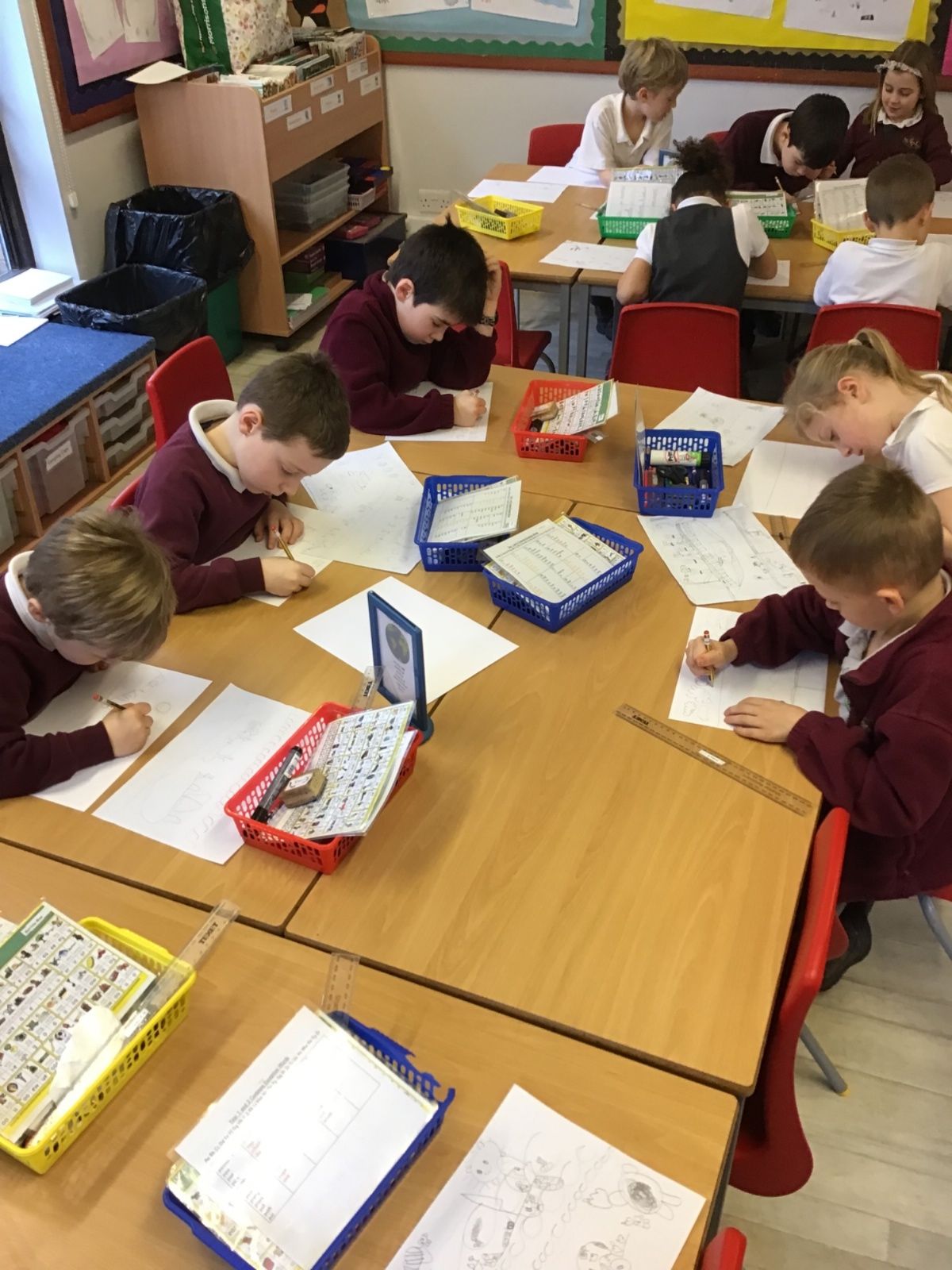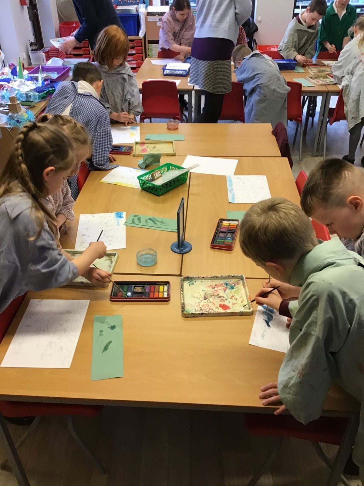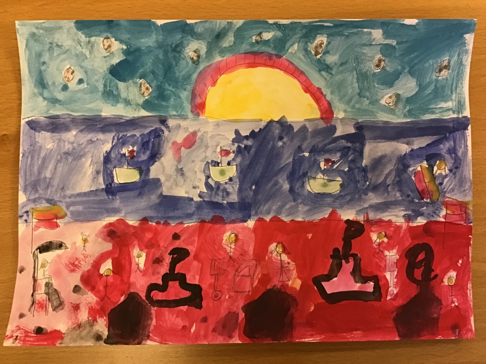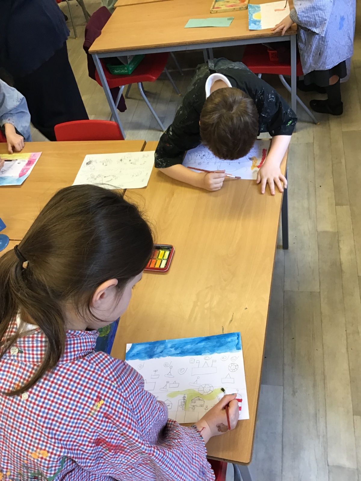 The children worked very hard and created their own beautiful seascapes.