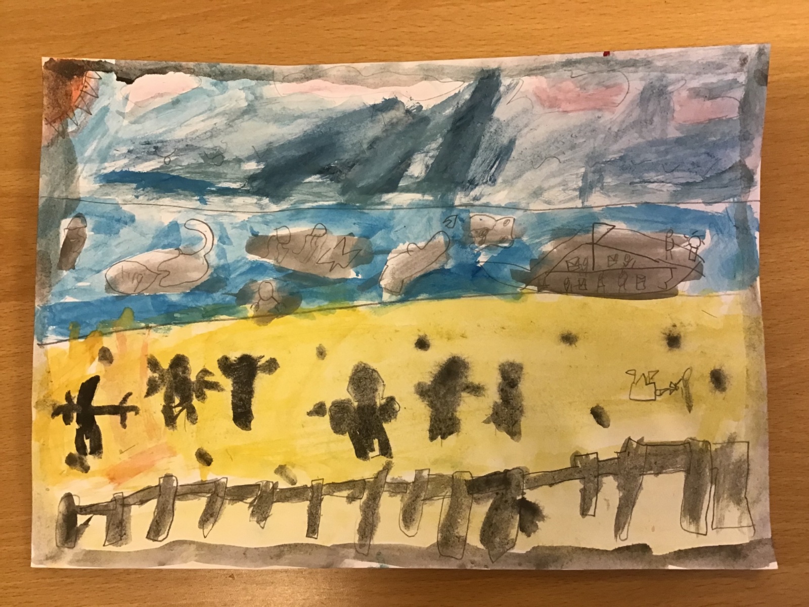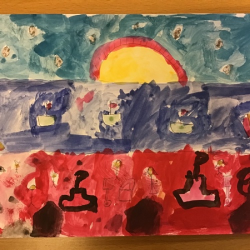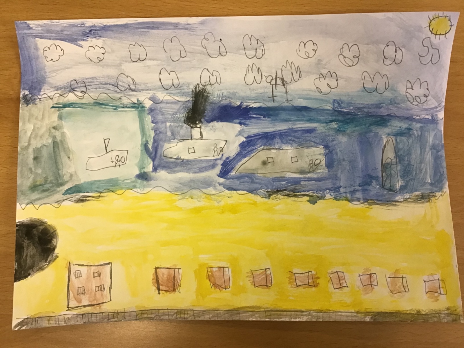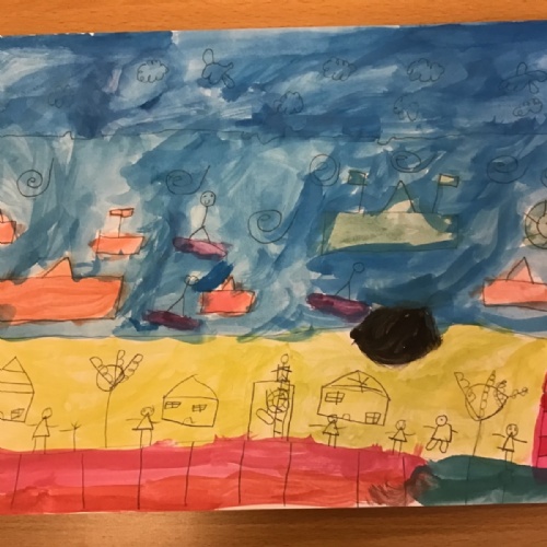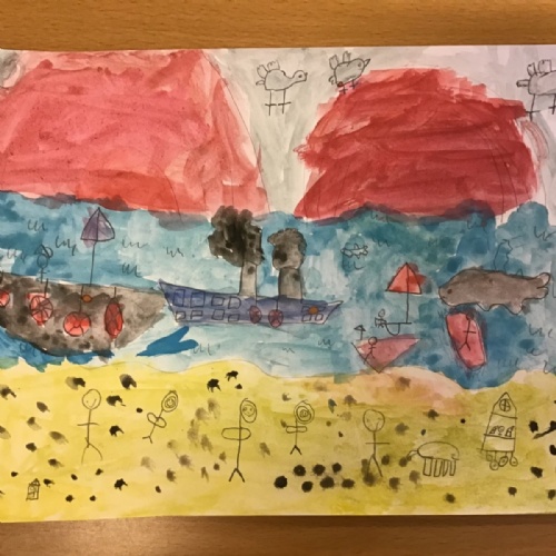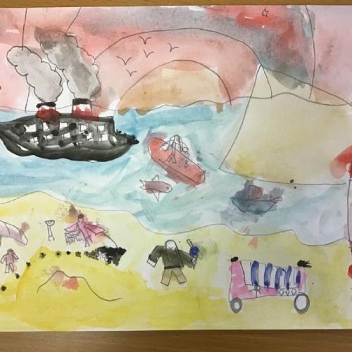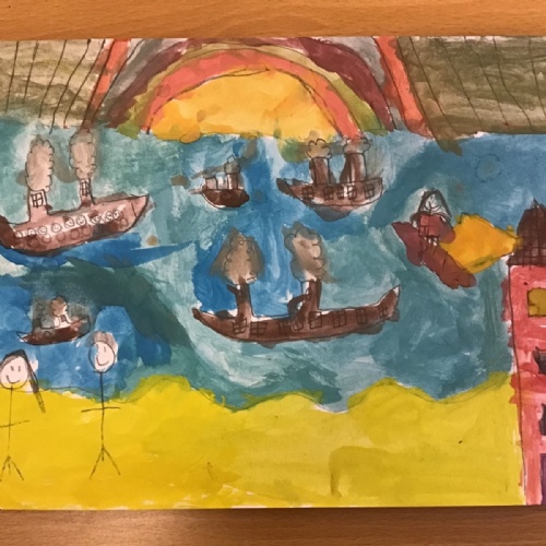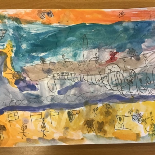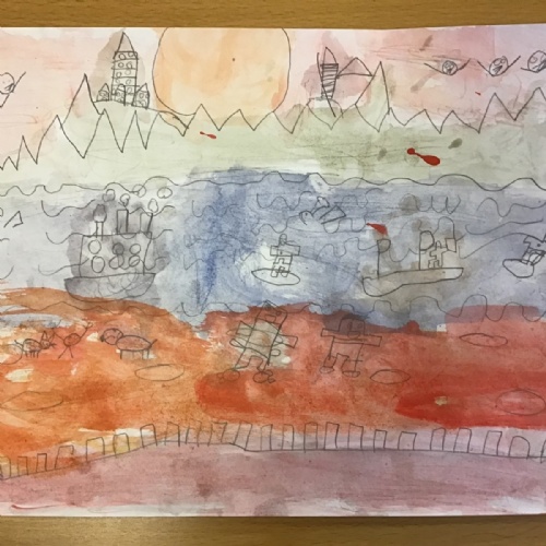 After exploring some of LS Lowry's seascapes, the children had the opportunity to try drawing their own using pencils. This was their chance to experiment with their own ideas.