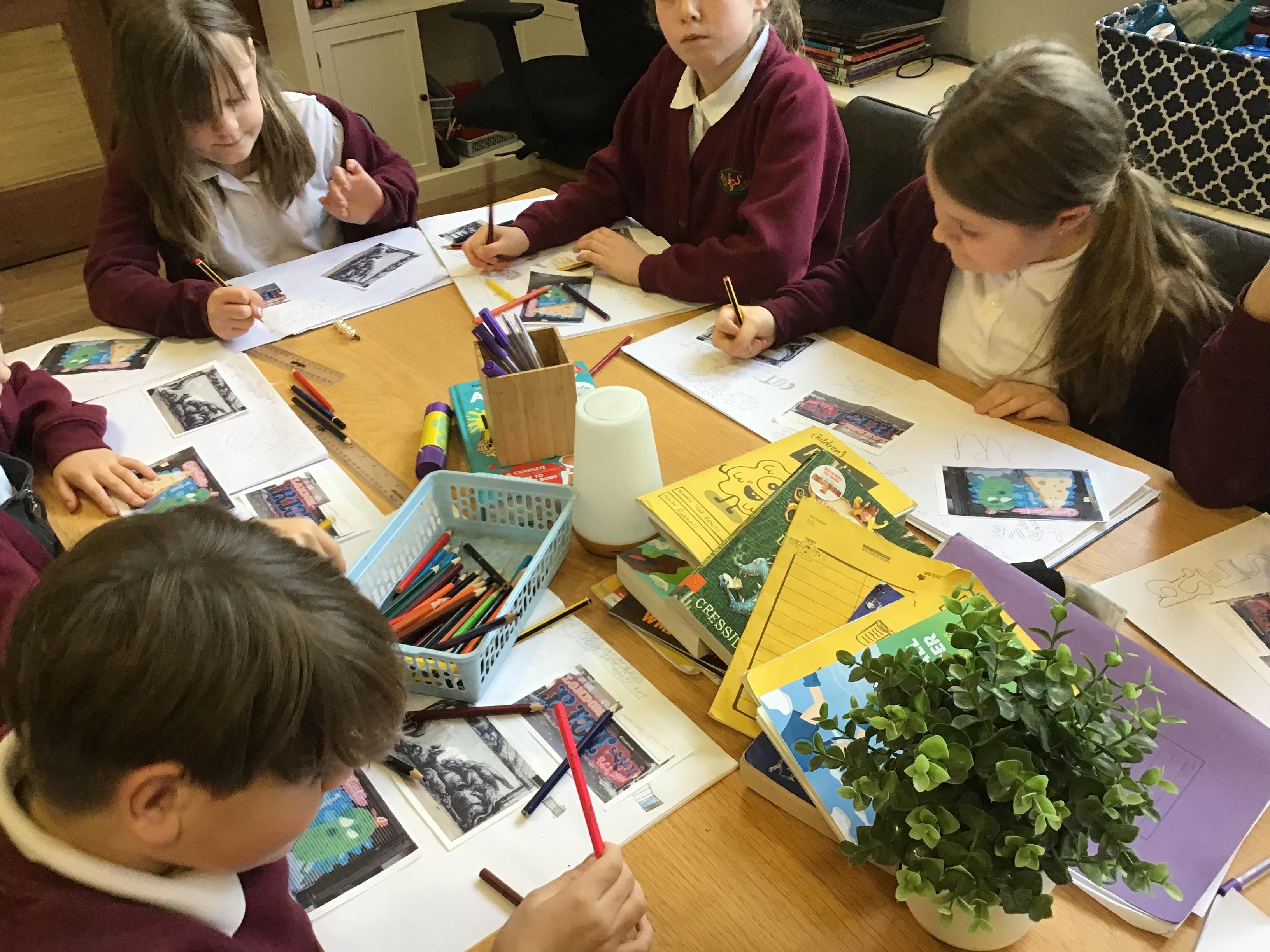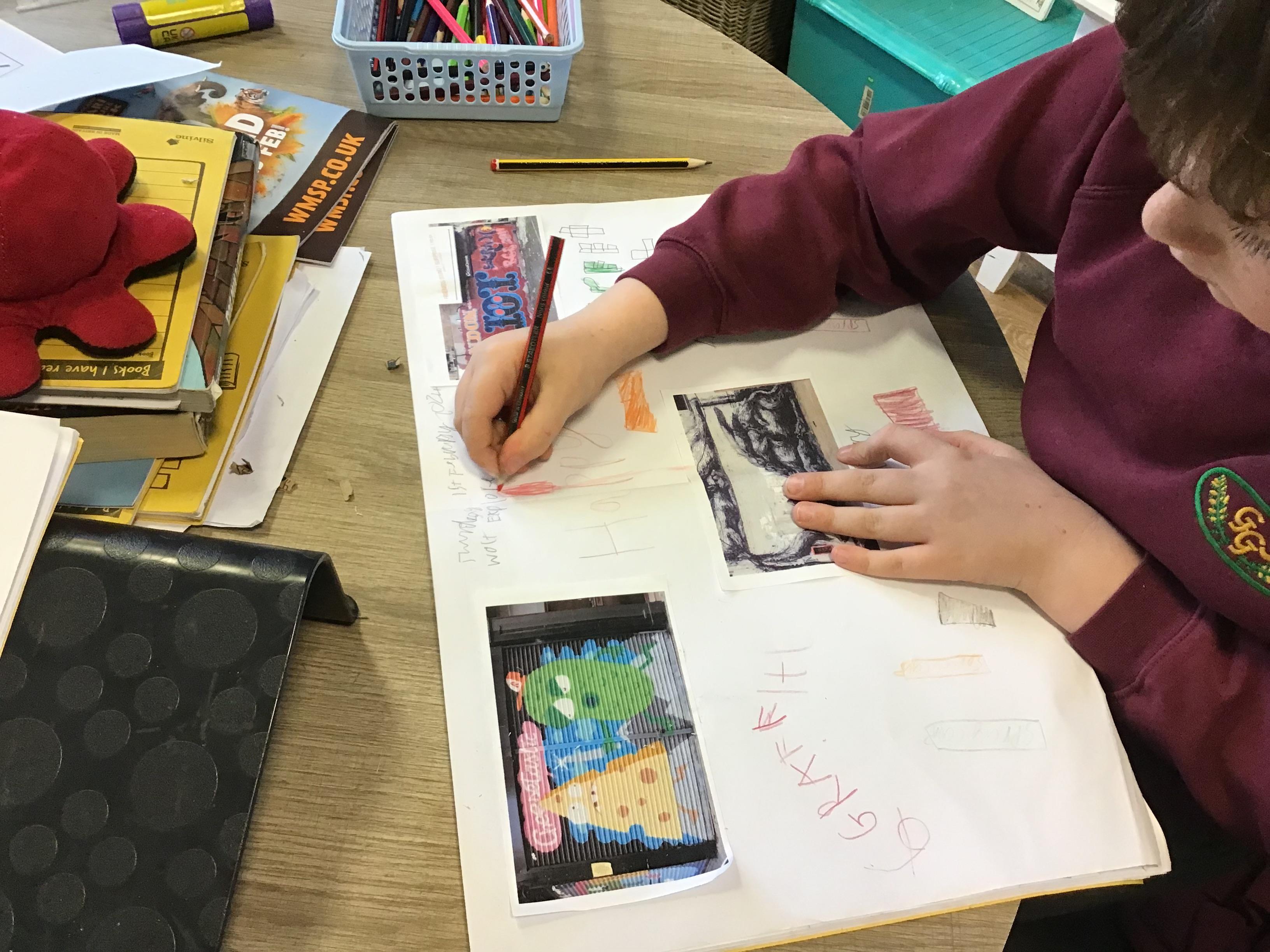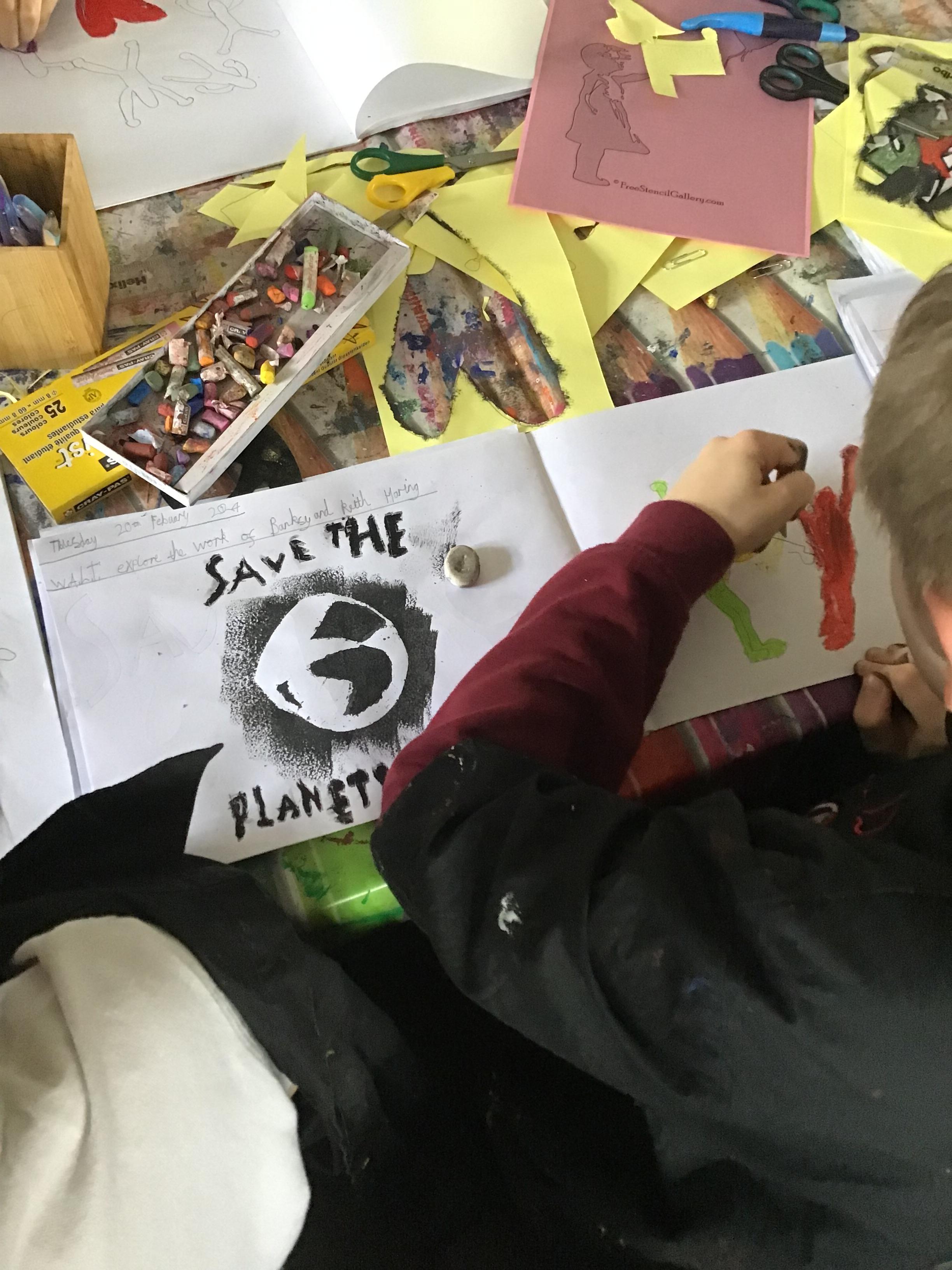 Art - Our Art unit during our Crime and Punishment topic has been exploring Graffiti Art and Street Art. We have looked closely at the works of Banksy and Keith Haring, comparing their artwork and using their techniques in our own pieces.