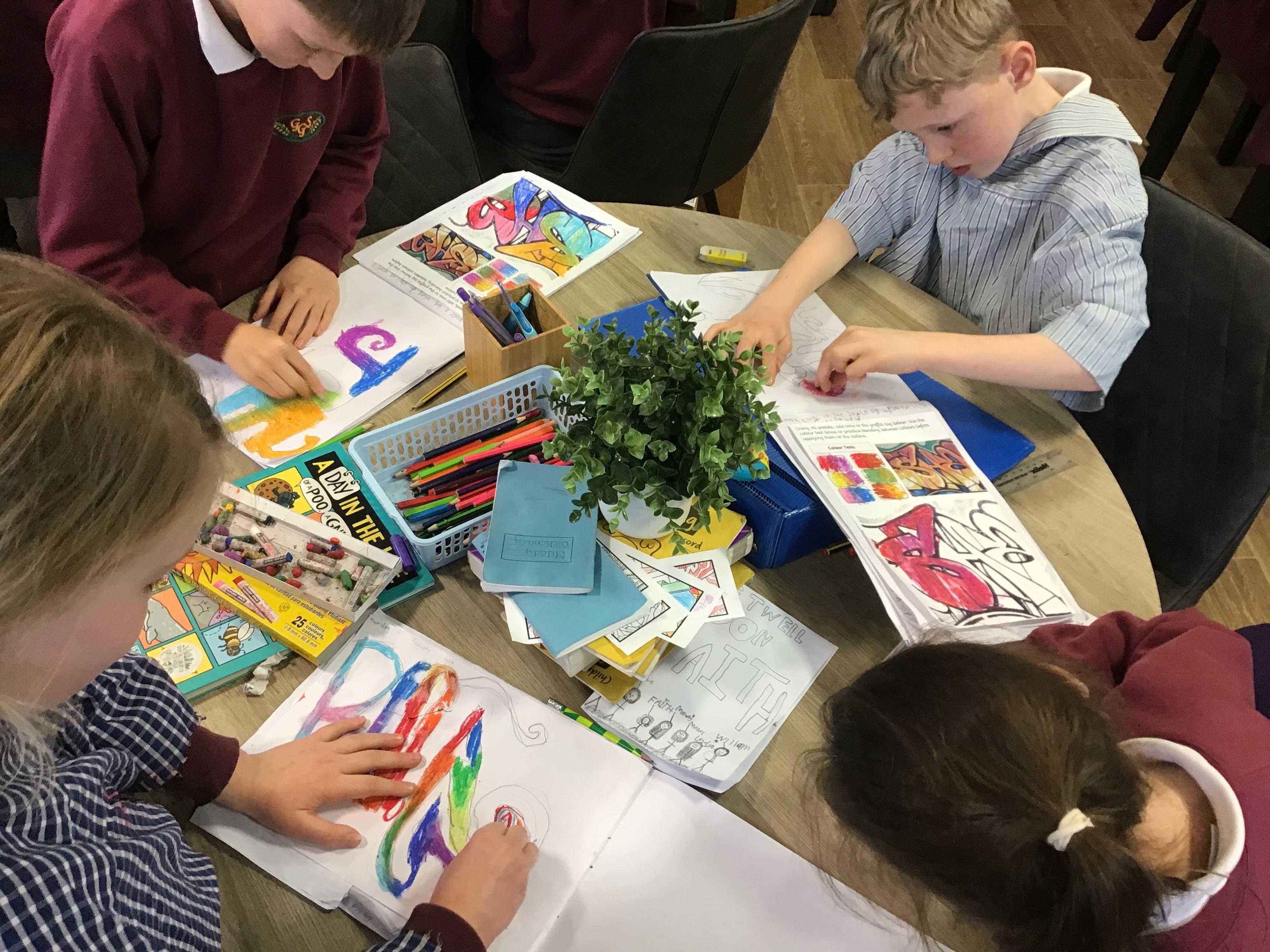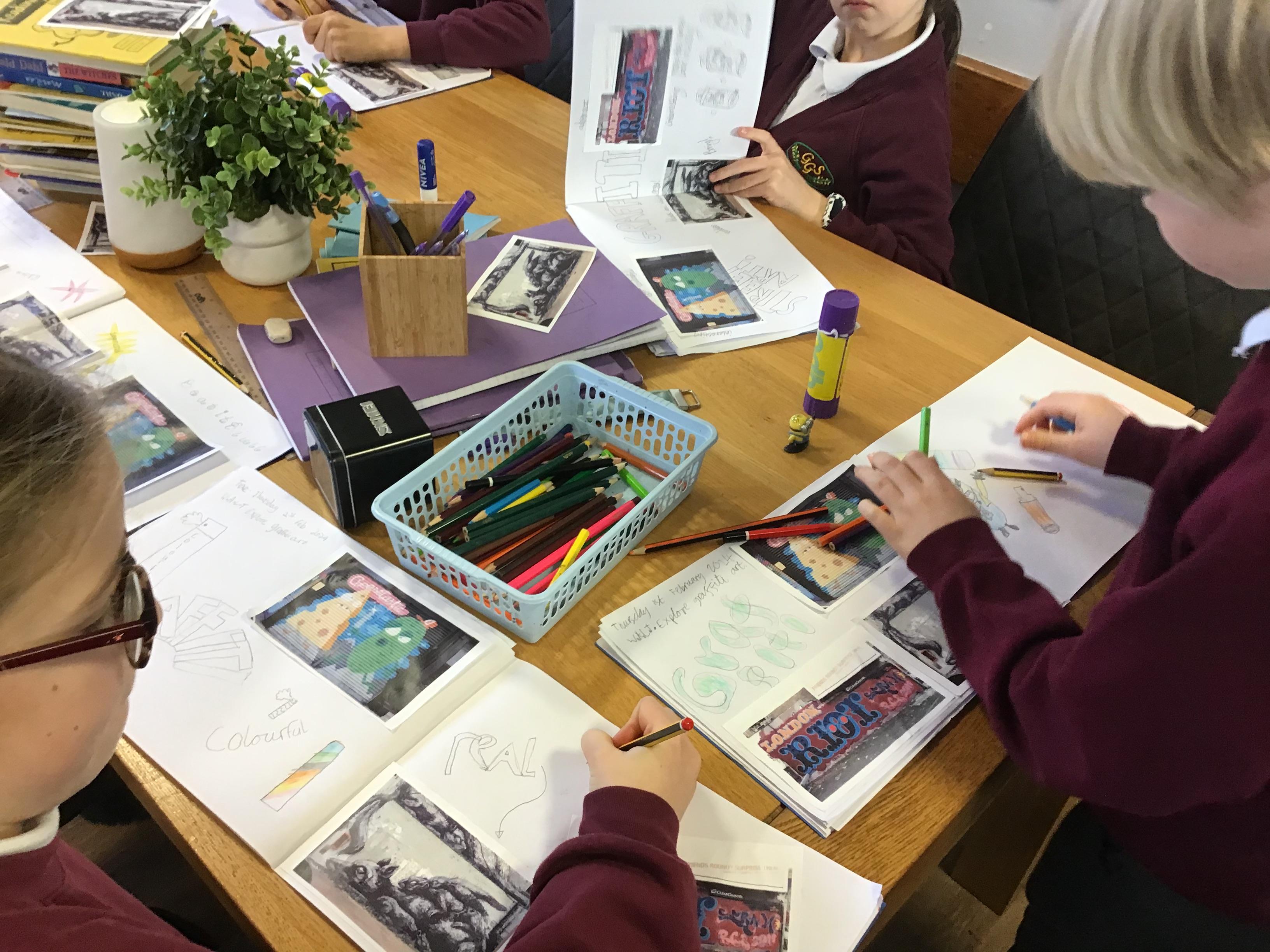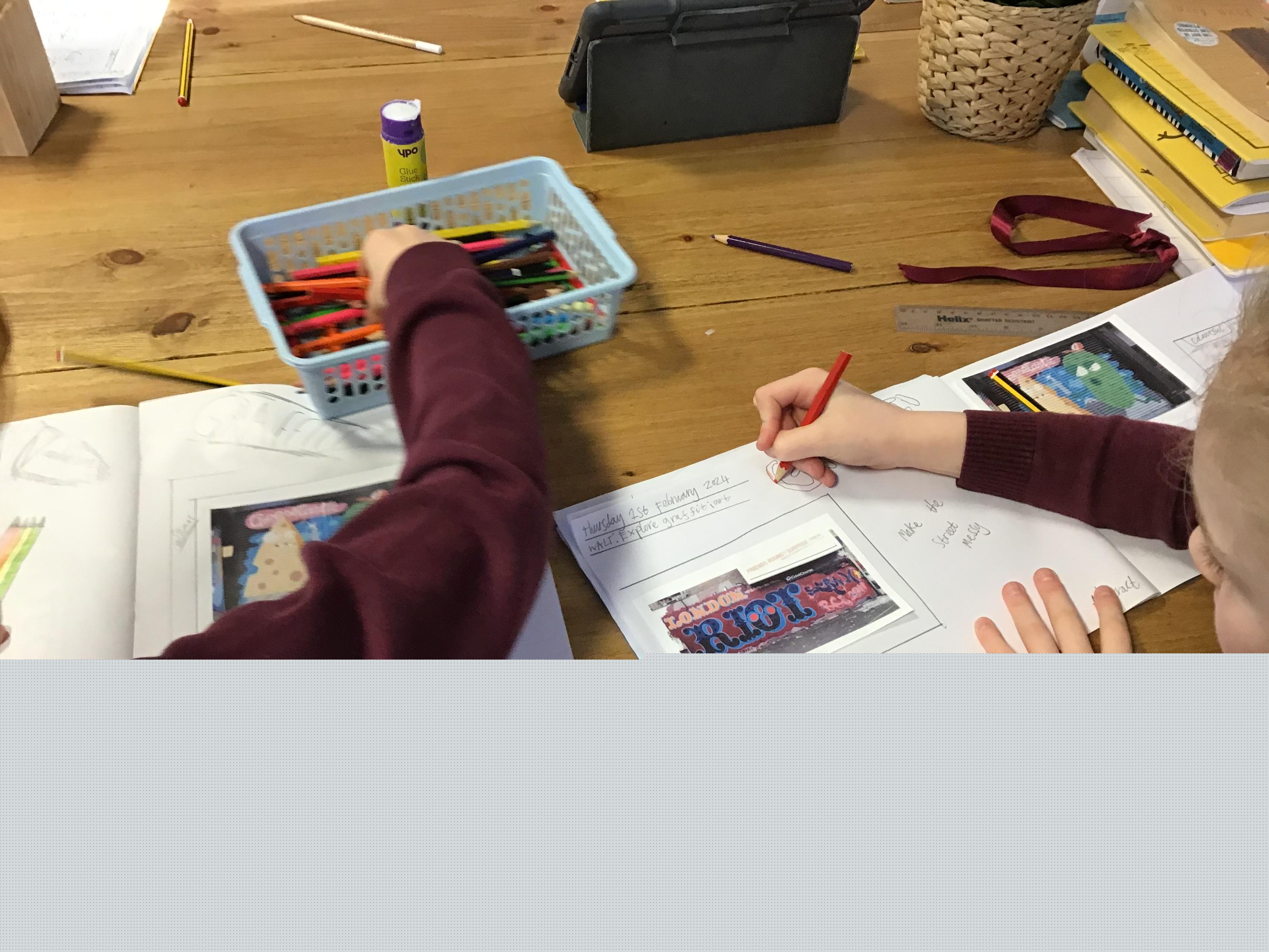 Art - Our Art unit during our Crime and Punishment topic has been exploring Graffiti Art and Street Art. We have looked closely at the works of Banksy and Keith Haring, comparing their artwork and using their techniques in our own pieces.