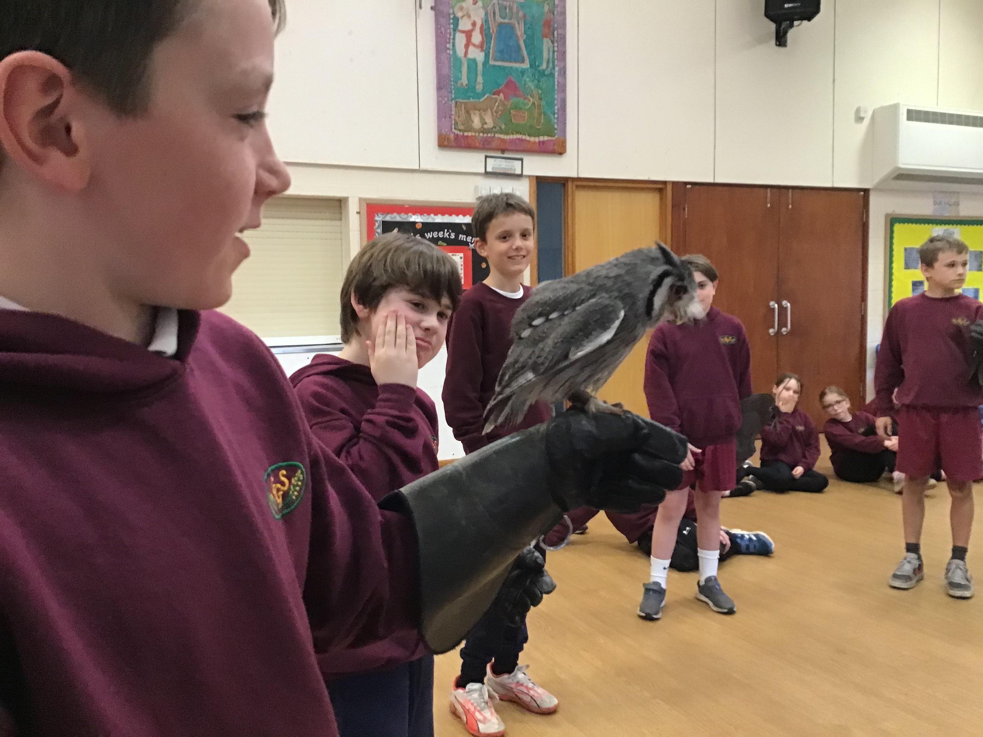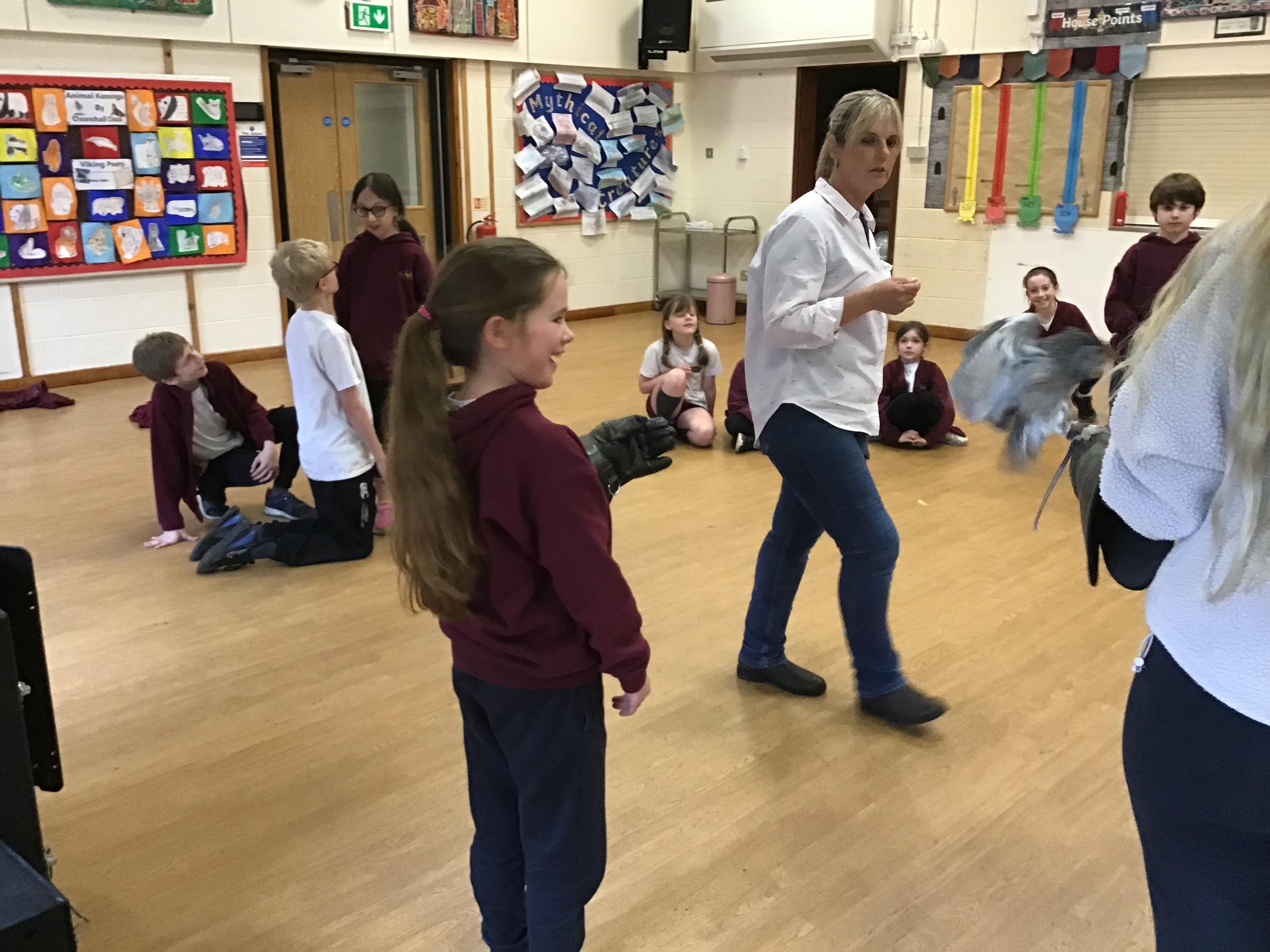 Walks with Hawks - Rudhall had the most fantastic afternoon thanks to the very generous Mr Davy who kindly organised for the whole of Gorsley Goffs to experience some fascinating birds of prey up close. The children were enthralled listening to the two experts talk about the birds, their natural habitats, diet and flying techniques.